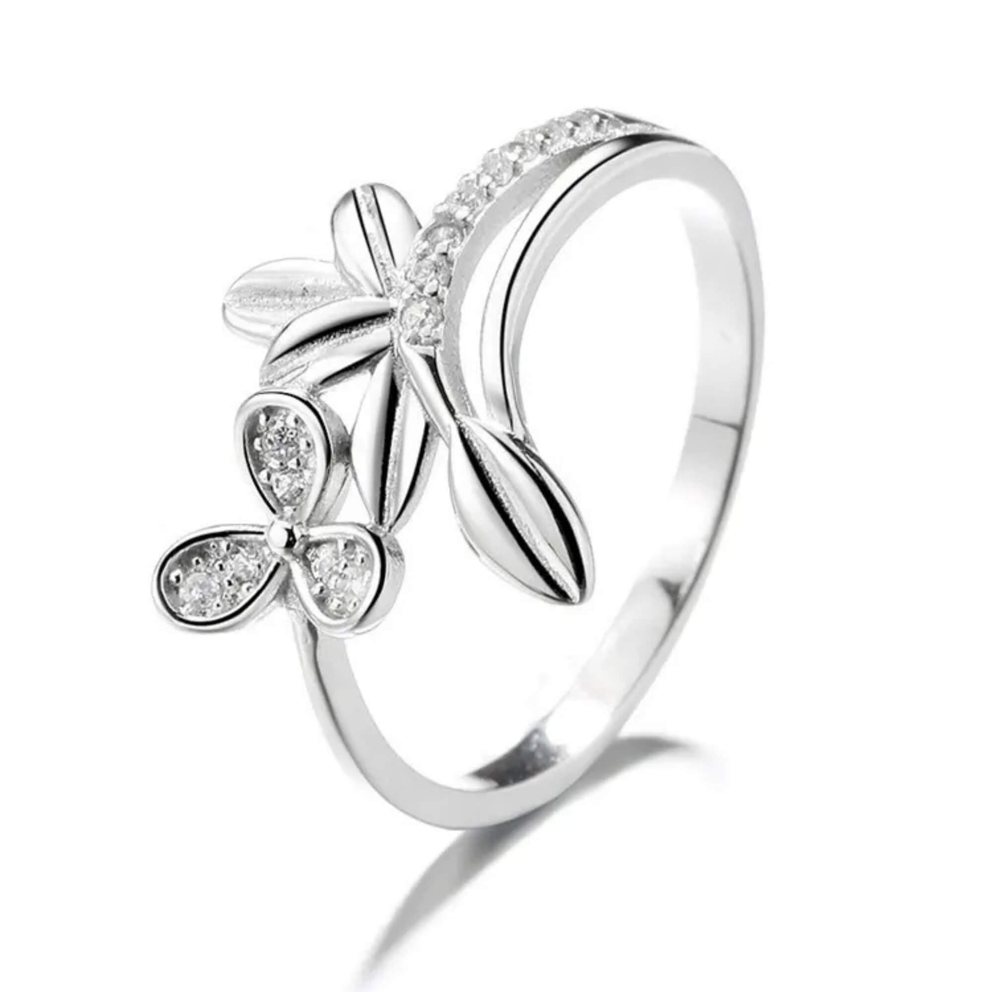 Een delicate zilveren ring, geïnspireerd op de schoonheid van bloeiende bloemen. De bloemenelementen zijn gebeeldhouwd, met subtiele zirkonia-accenten die het ontwerp een zachte glans geven. Licht en luchtig, dit sieraad vangt de essentie van de lente en is een charmante aanvulling op je sieradencollectie.