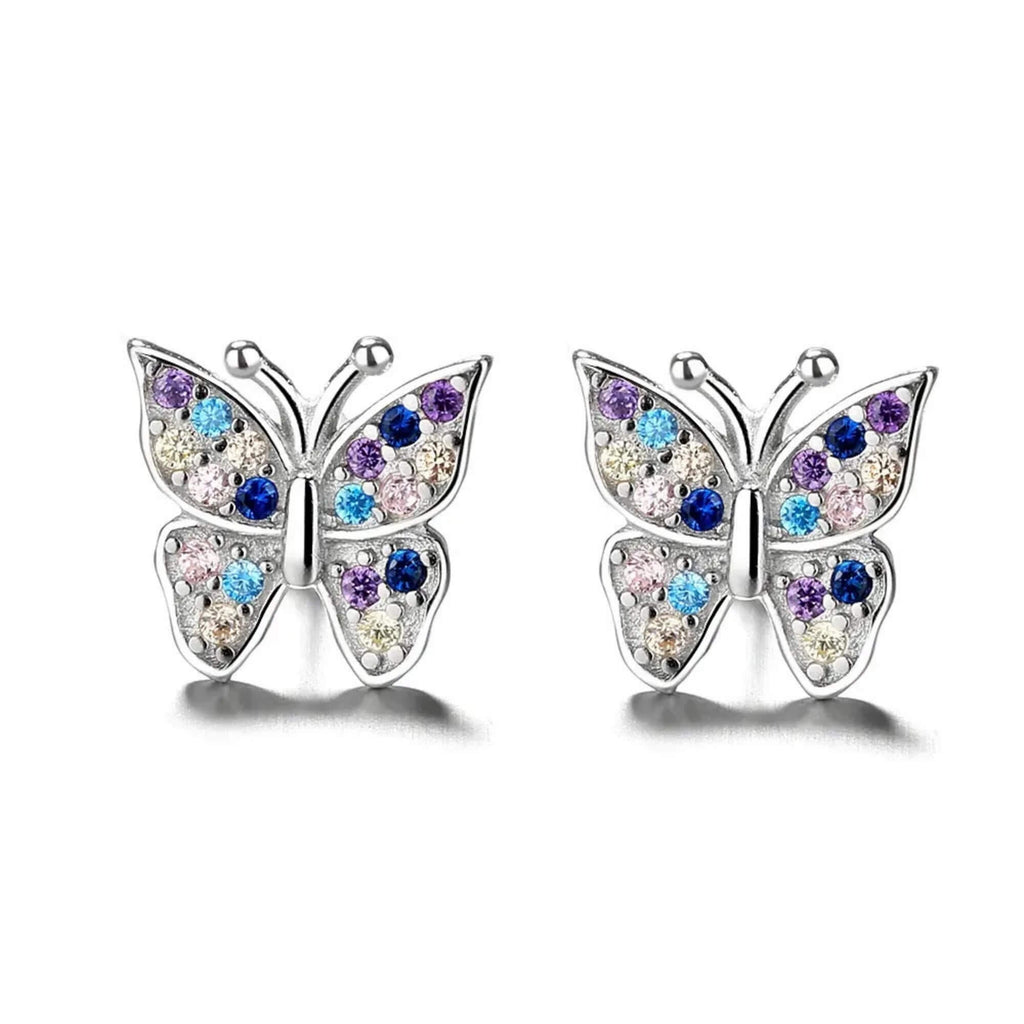 Delicate zilveren vlinderoorbellen, versierd met een palet aan levendige zirkonia's. Ideaal voor iedereen die de dag wil opfleuren met speelse elegantie.
