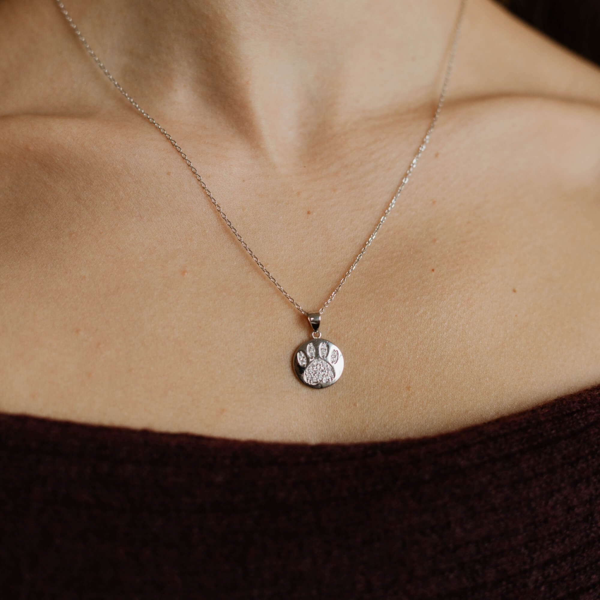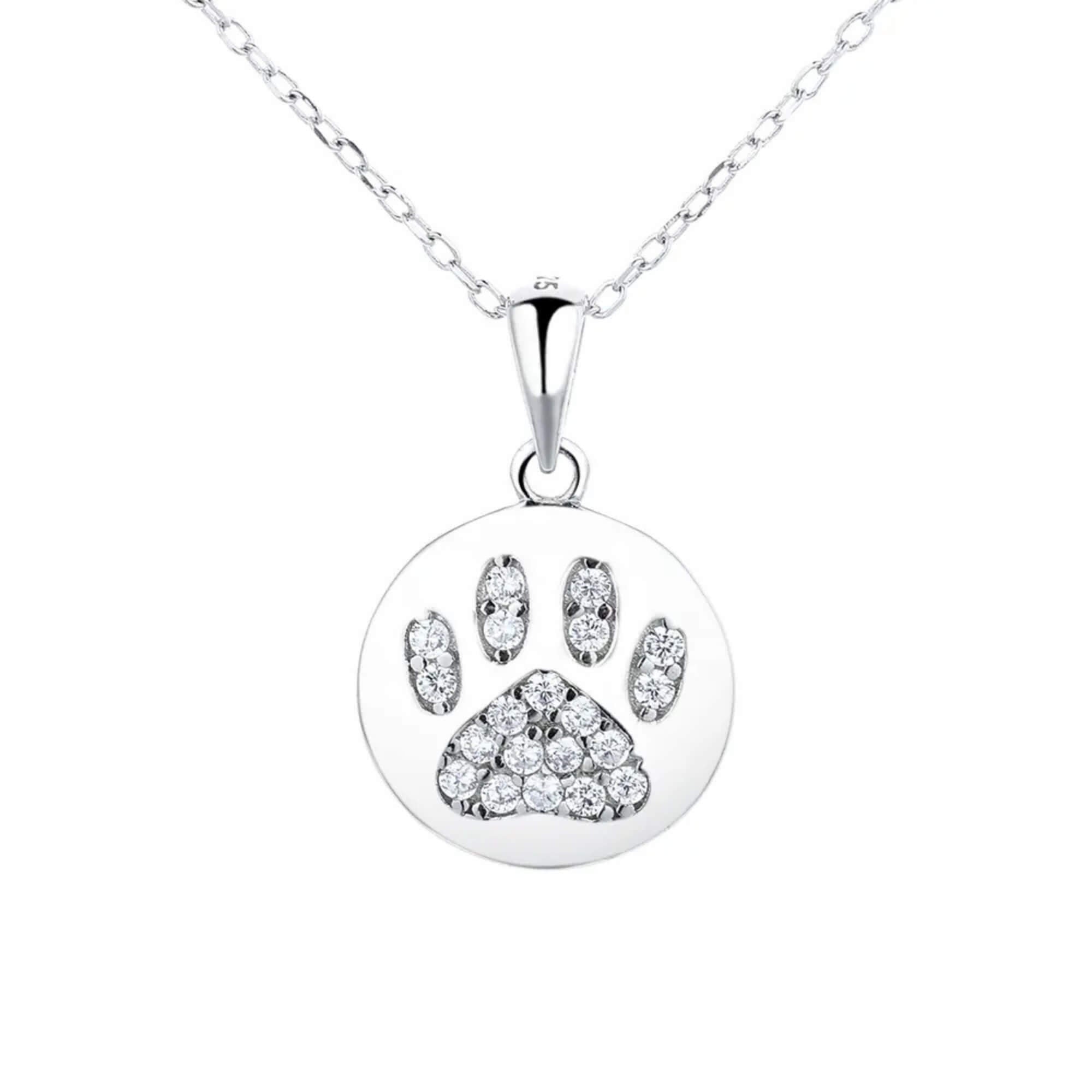 Zilveren ketting met een hanger in de vorm van een pootafdruk - een ontroerend symbool van de speciale band tussen jou en je trouwe viervoeter. Elegant vervaardigd met sprankelende zirkonia's, is dit sieraad perfect voor dierenliefhebbers die hun liefde en verbondenheid met stijl en gevoel willen uiten.