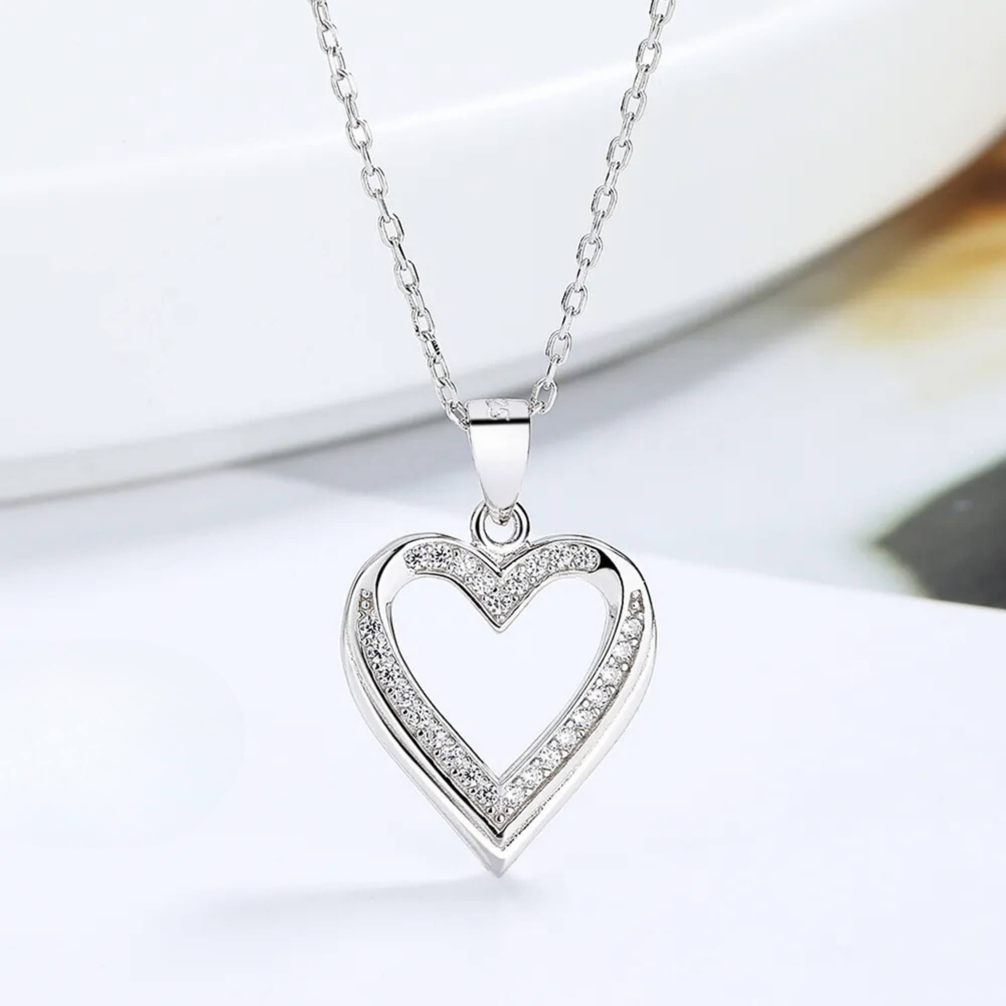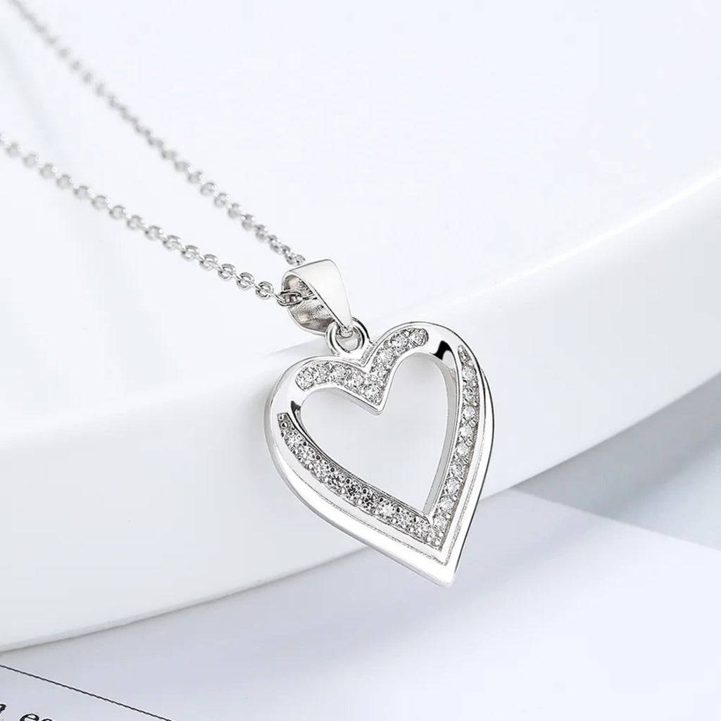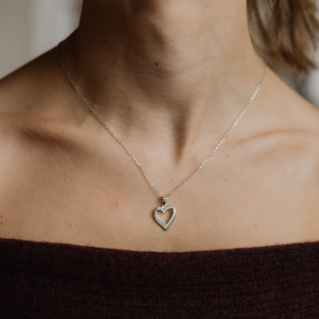 Zilveren ketting met een hartvormige hanger die een moderne interpretatie biedt aan het tijdloze symbool van de liefde. Het strakke maar elegante ontwerp creëert een subtiel 3D-effect, wat diepte toevoegt aan het sieraad. Deze ketting is de perfecte uiting van liefde en genegenheid. Het is een tijdloos gebaar dat boekdelen spreekt zonder dat er een woord over gezegd hoeft te worden.
