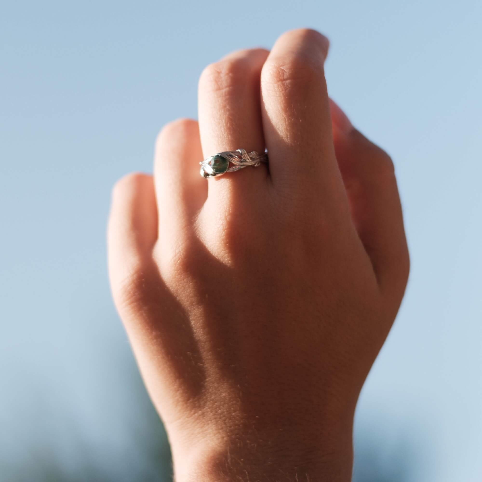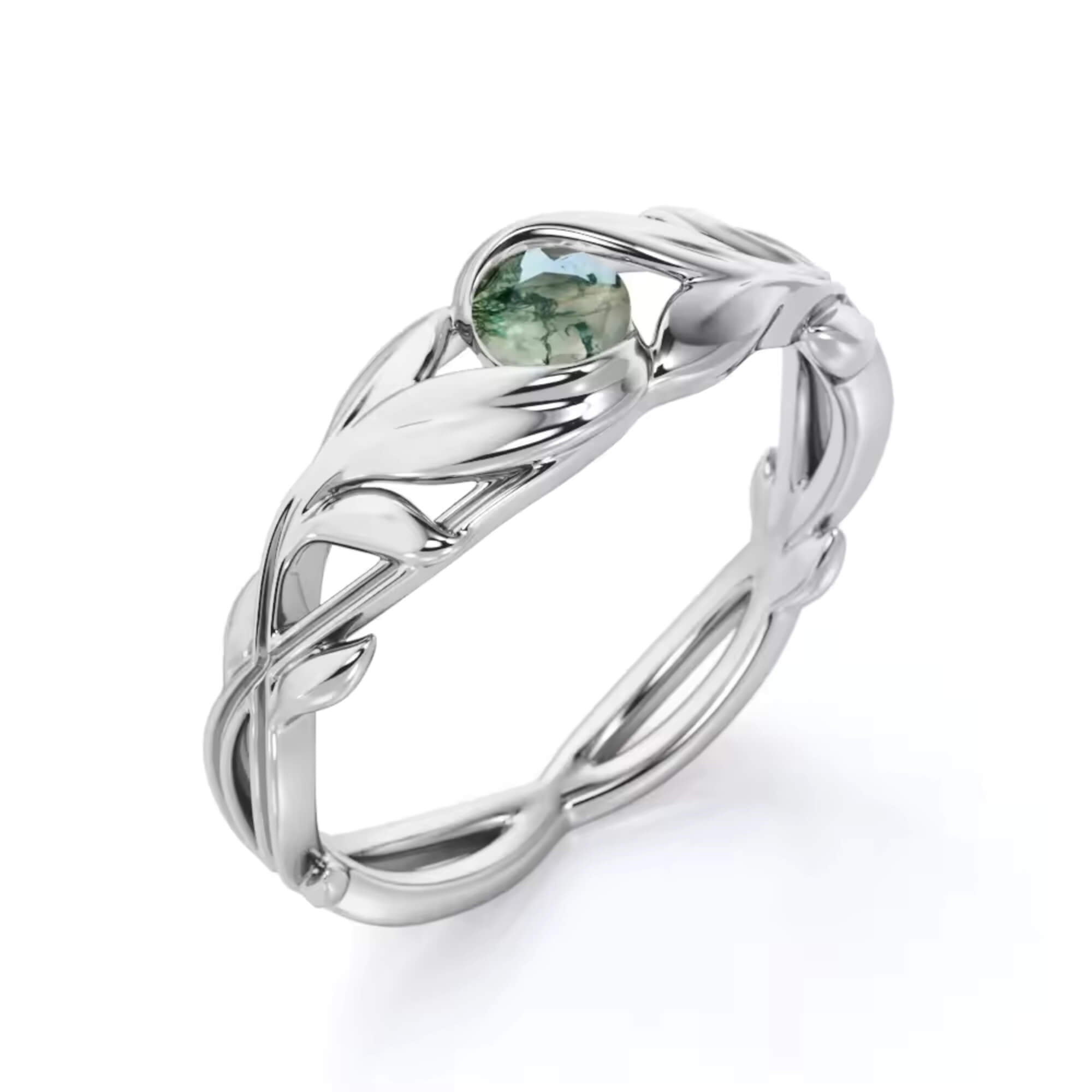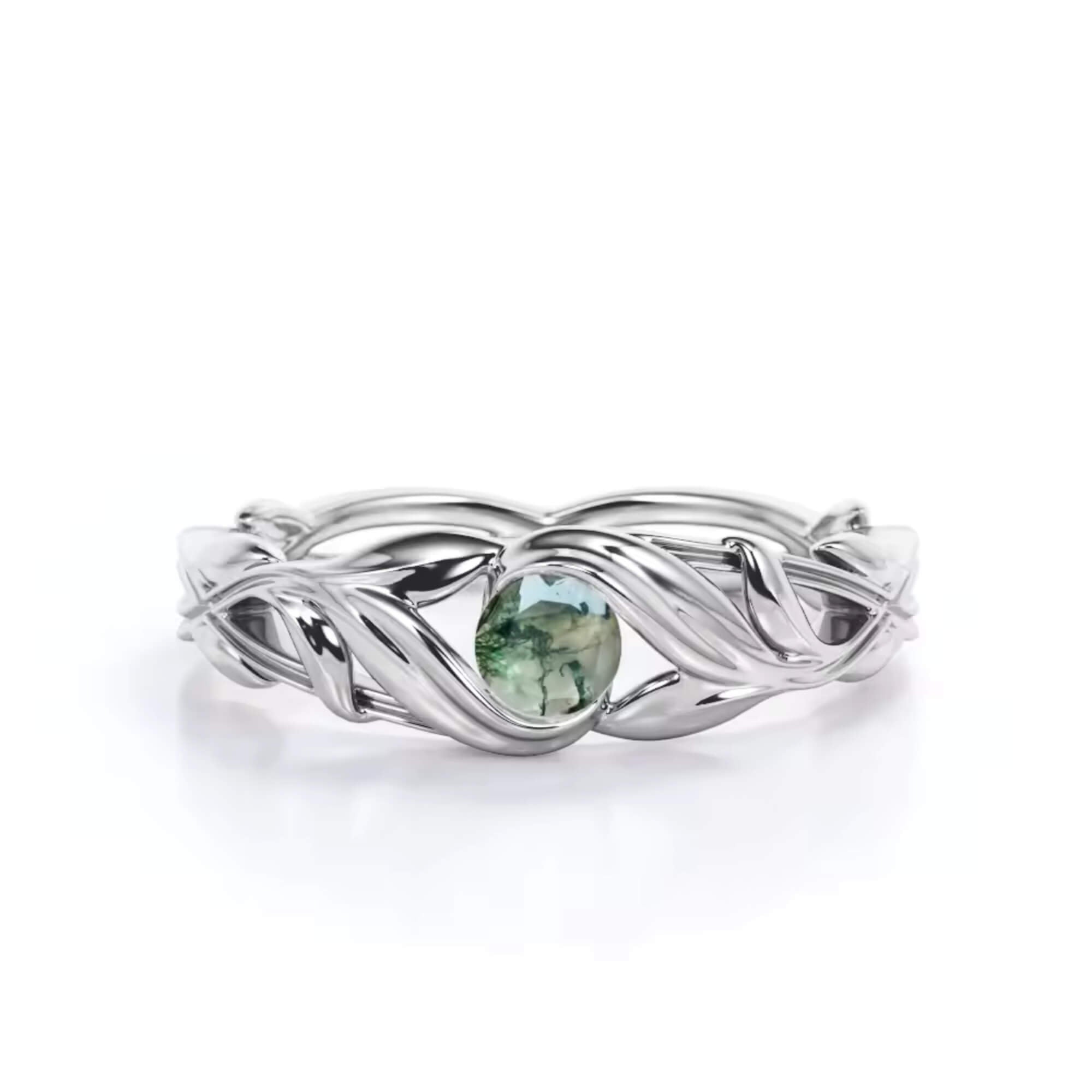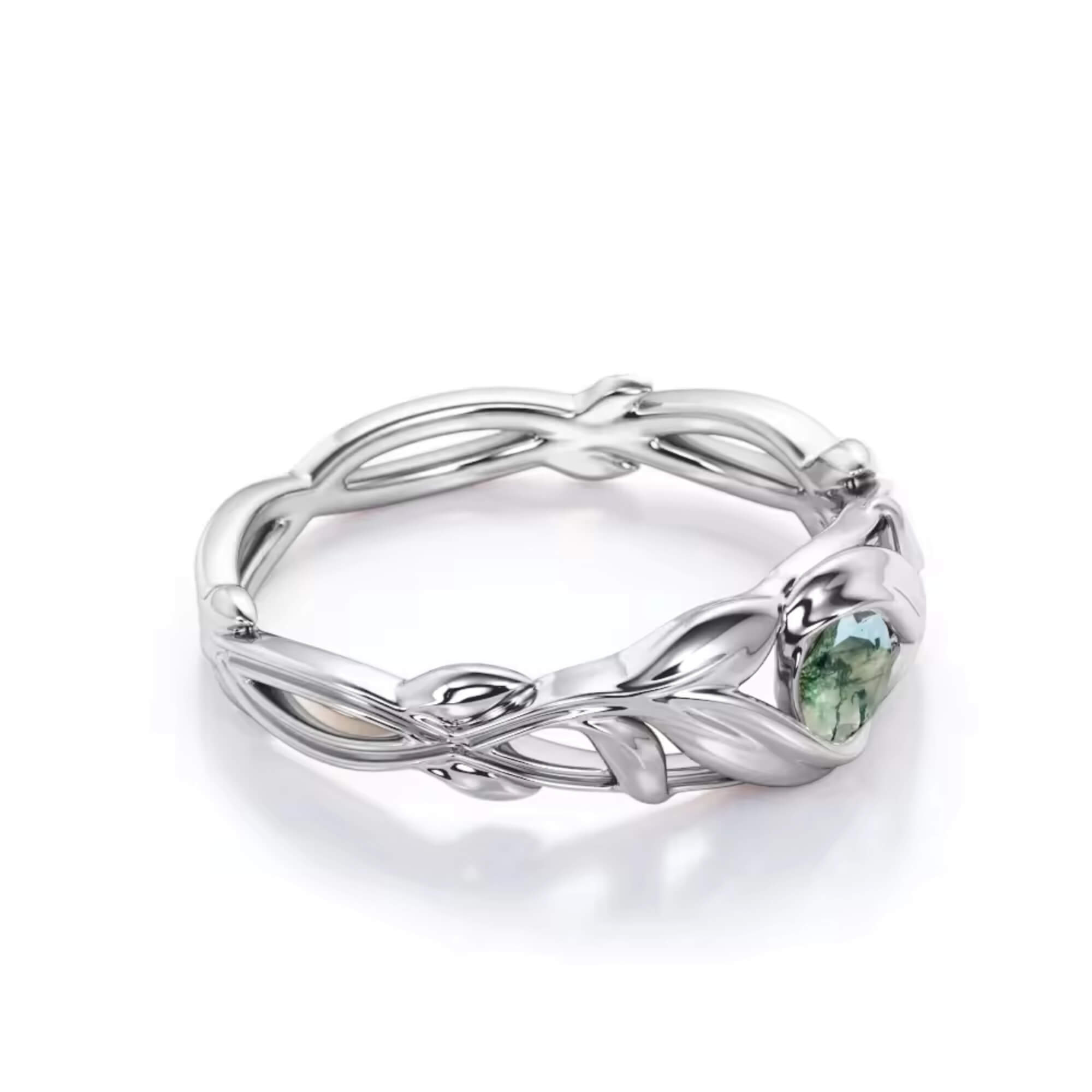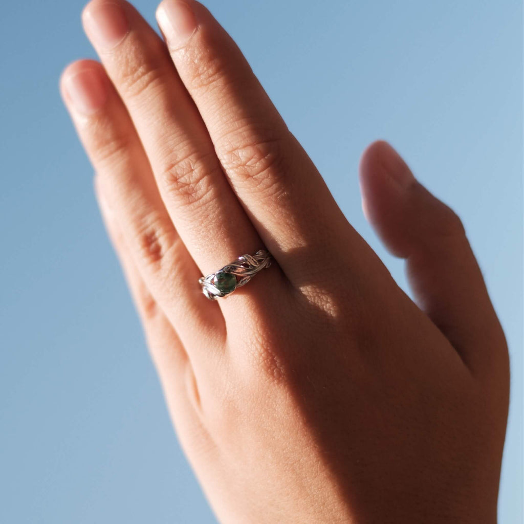 Sterling zilveren ring die de betoverende schoonheid van een mosagaat edelsteen laat zien, bekend om zijn natuurlijke patronen die lijken op een weelderig boslandschap. Tegen een doorschijnende, melkachtige achtergrond roepen de diepgroene tinten van de steen een gevoel van sereniteit en verbondenheid met de natuur op. Bekend als de "steen van overvloed", symboliseert mosagaat evenwicht, harmonie en groei. Een perfecte keuze voor diegenen die de artistieke kant van de natuur waarderen en op zoek zijn naar een betekenisvol, aardend sieraad.