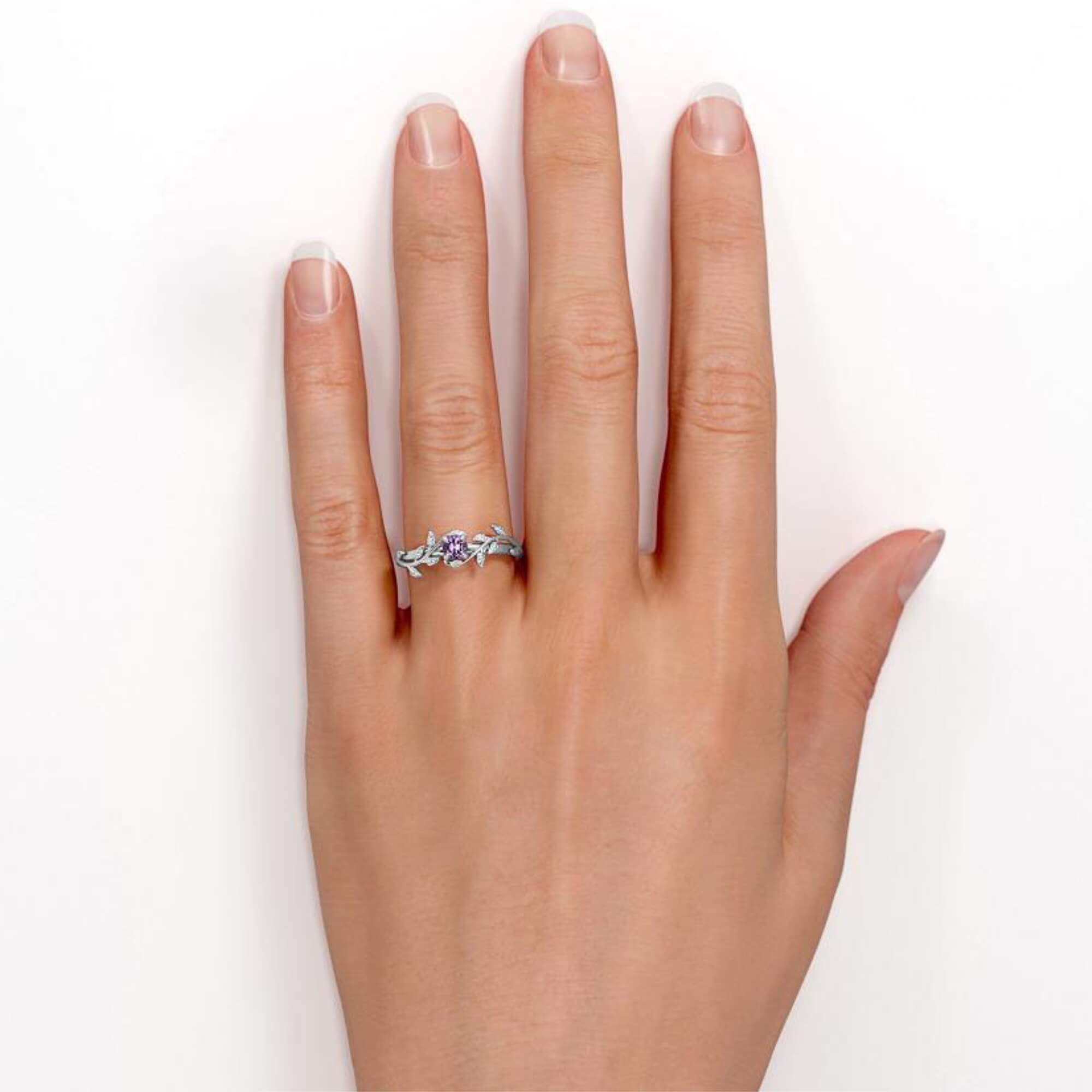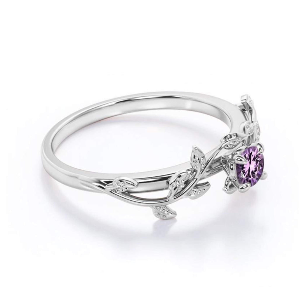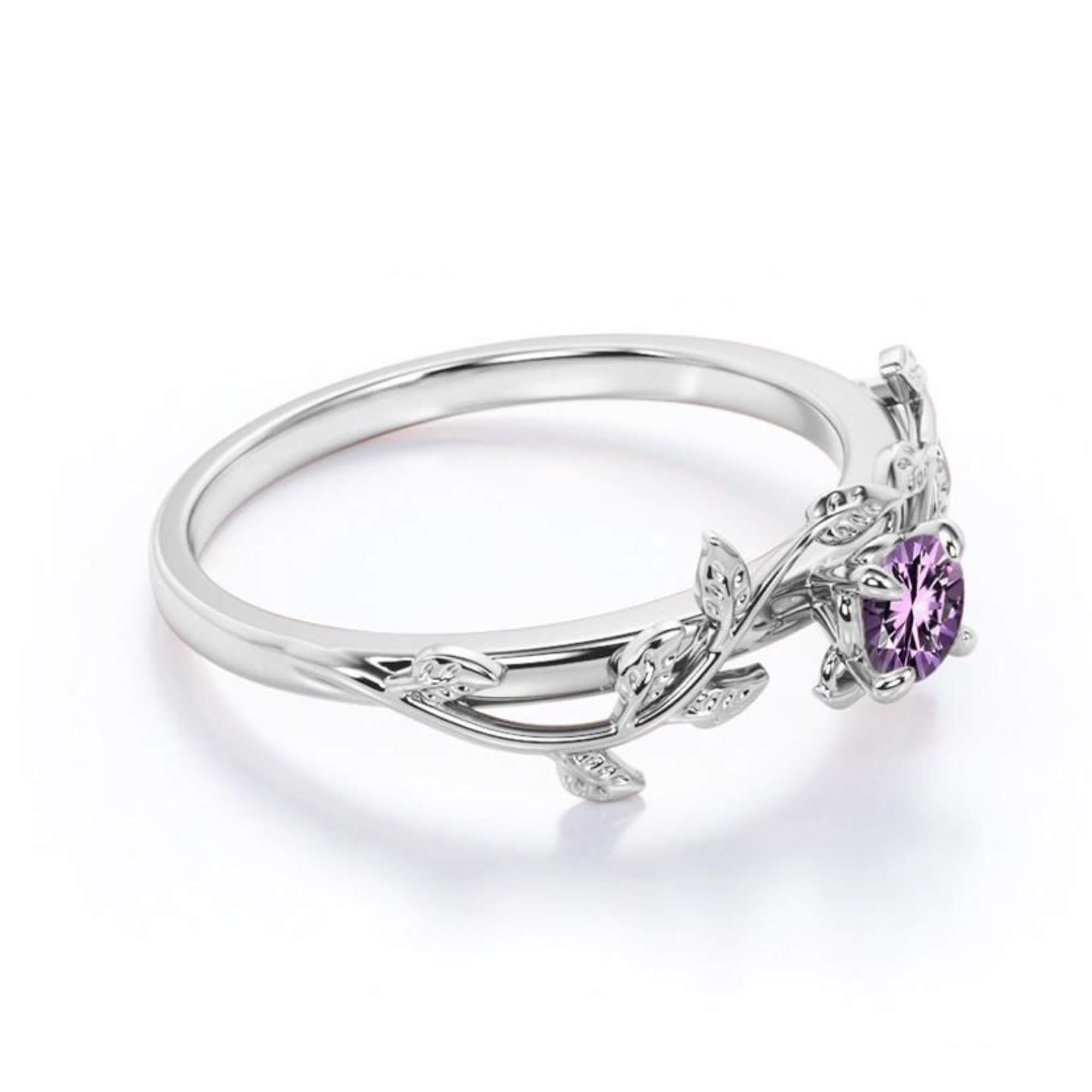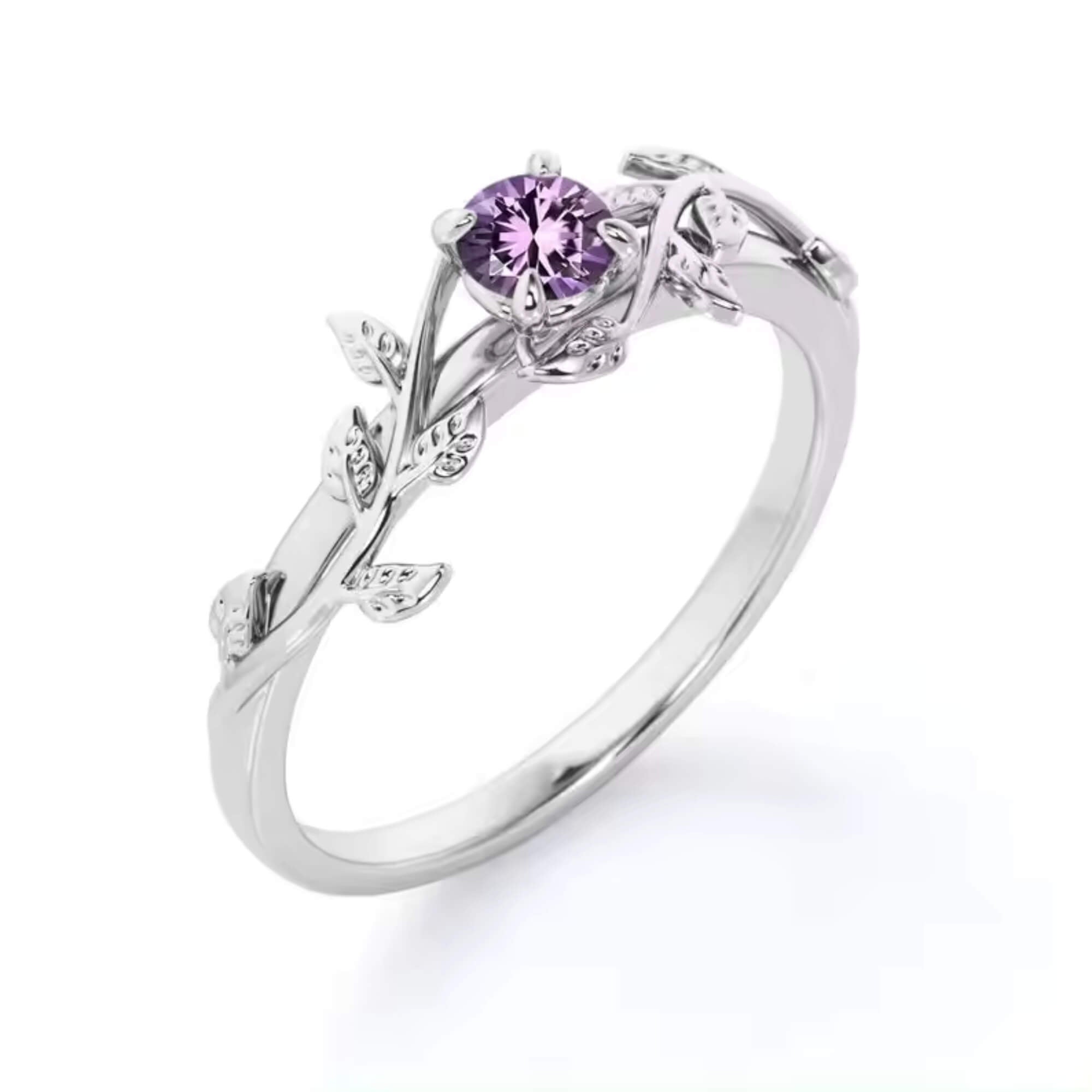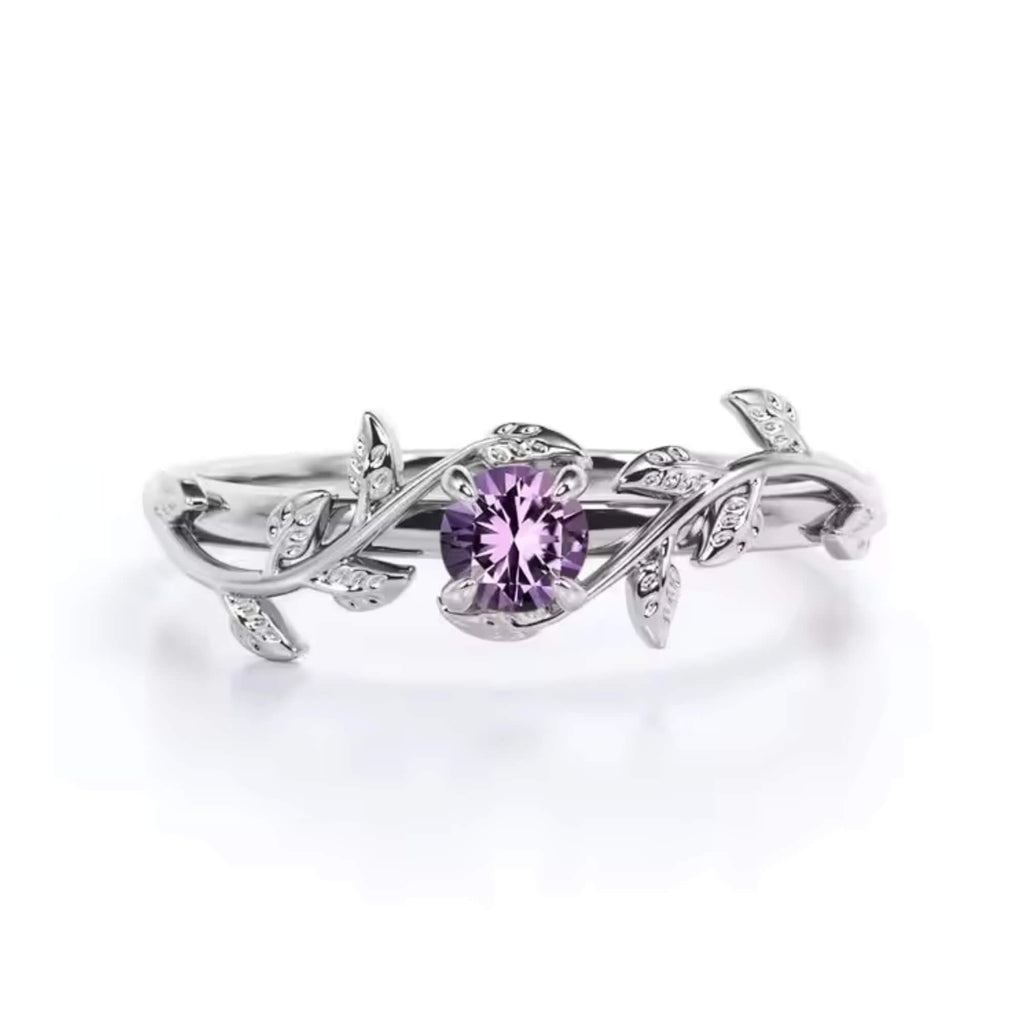 Sterling zilveren ring die op meesterlijke wijze de complexe, bloemige details combineert met de betoverende charme van een natuurlijke amethist. De delicate violette tinten van de edelsteen stralen elegantie uit en symboliseren harmonie en bescherming. Amethist, bekend als de geboortesteen van februari, wordt al eeuwenlang vereerd vanwege zijn vermogen om ruimtes te zuiveren en te beschermen tegen negatieve energie. Deze ring is zowel een stijlvol accessoire als een betekenisvolle talisman.