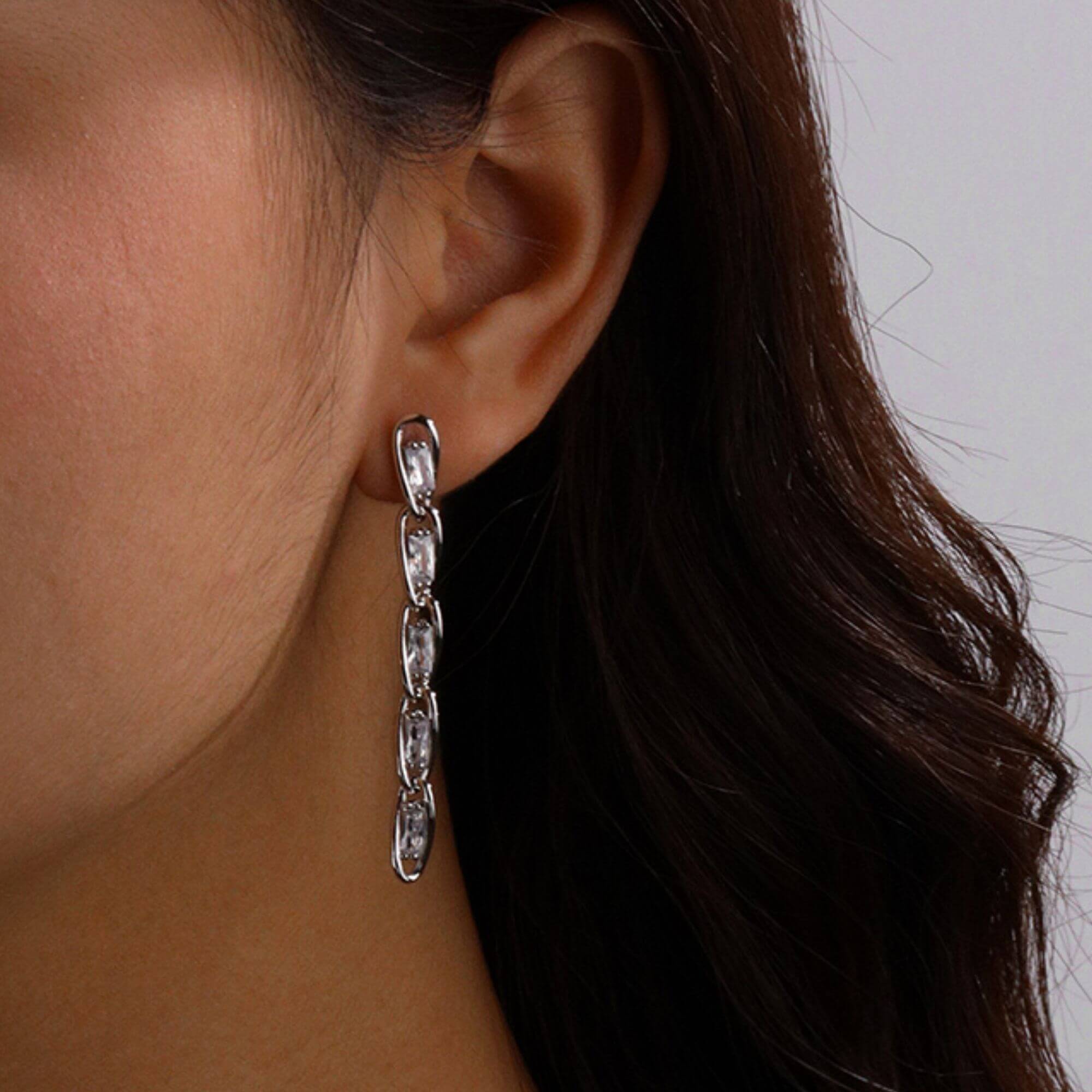Maak kennis met onze zilveren oorbellen, de perfecte aanvulling op je elegante garderobe. Deze oorbellen zijn ontworpen om je stijl te accentueren met verfijning en klasse en zijn voorzien van fonkelende zirkoniastenen die een extra laag van boeiende schittering toevoegen.