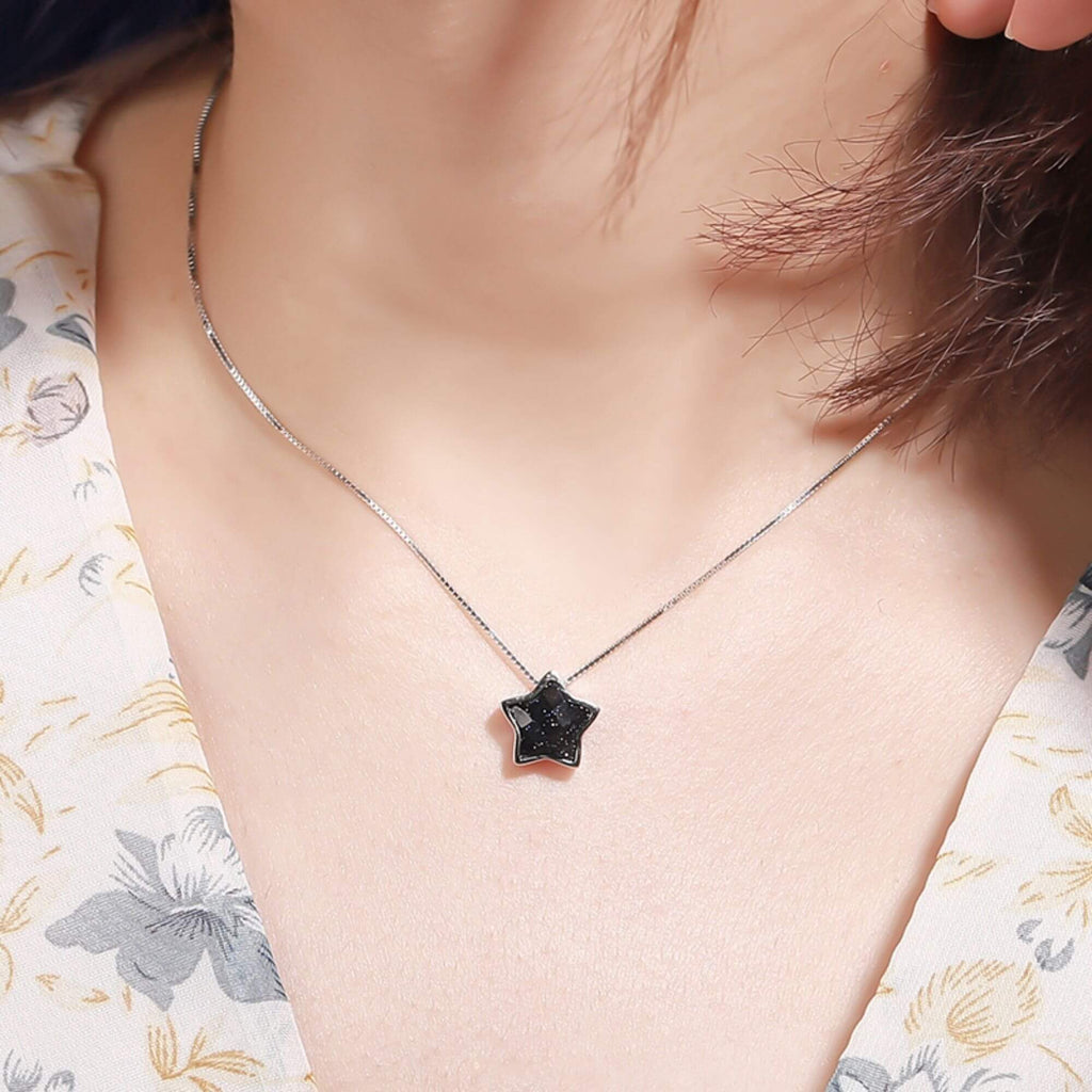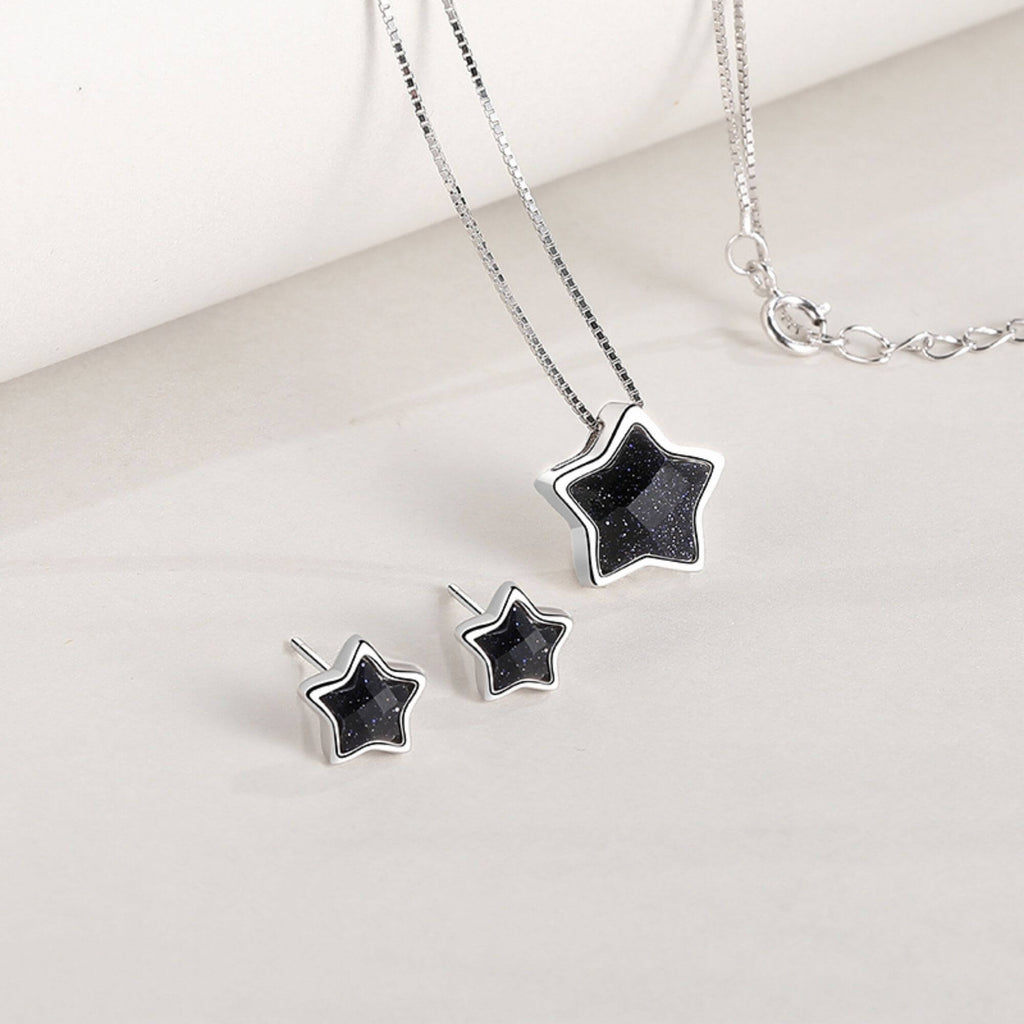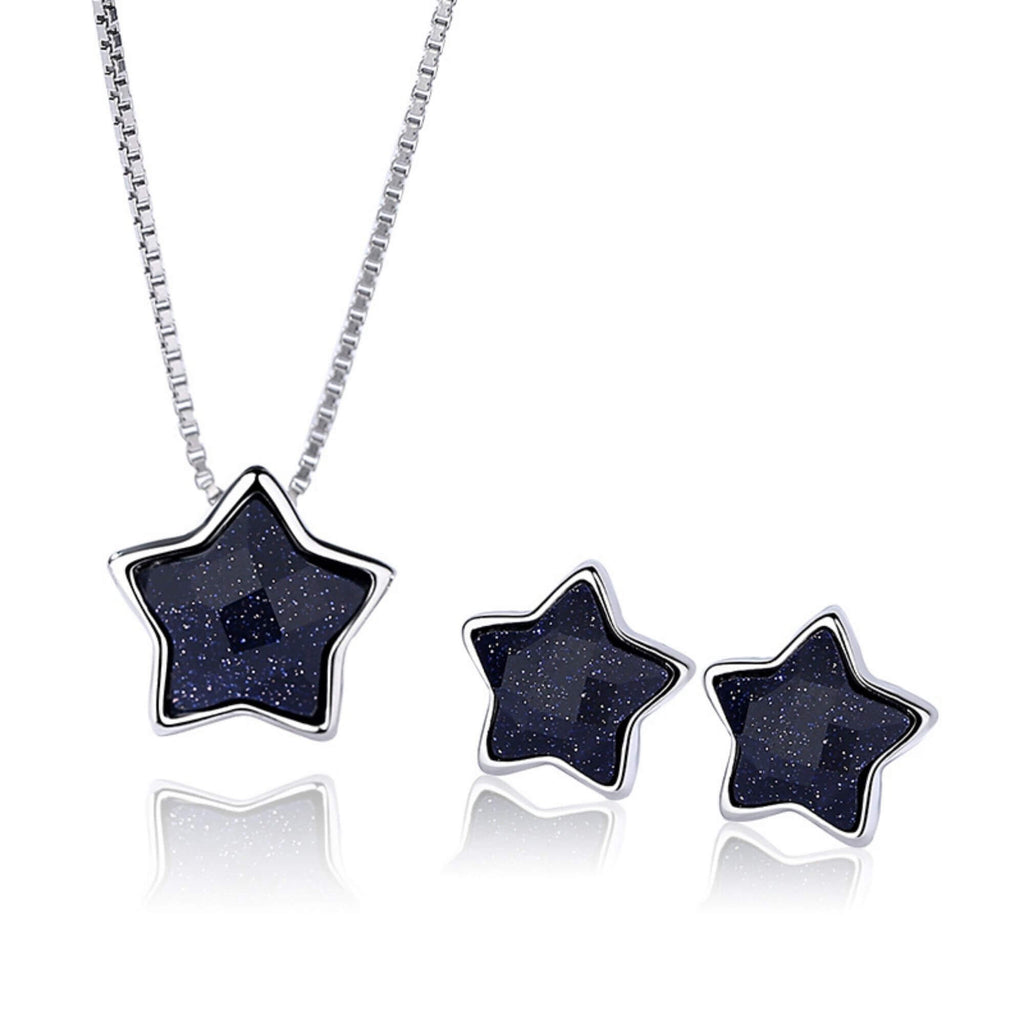 Laat jouw stijl tussen de sterren zweven met onze zilveren set "Dimensions". De set heeft delicate stervormige ontwerpen op zowel de ketting als de oorbellen, wat tot verbeelding en verwondering leidt. Elegantie ontmoet hemelse charme waarbij elke ster is verfraaid met boeiende zandsteen, waardoor een unieke look ontstaat die zowel verfijnd als fantasierijk is. Deze stukken zijn een bewijs van groot vakmanschap, perfect om een opvallend statement te maken.