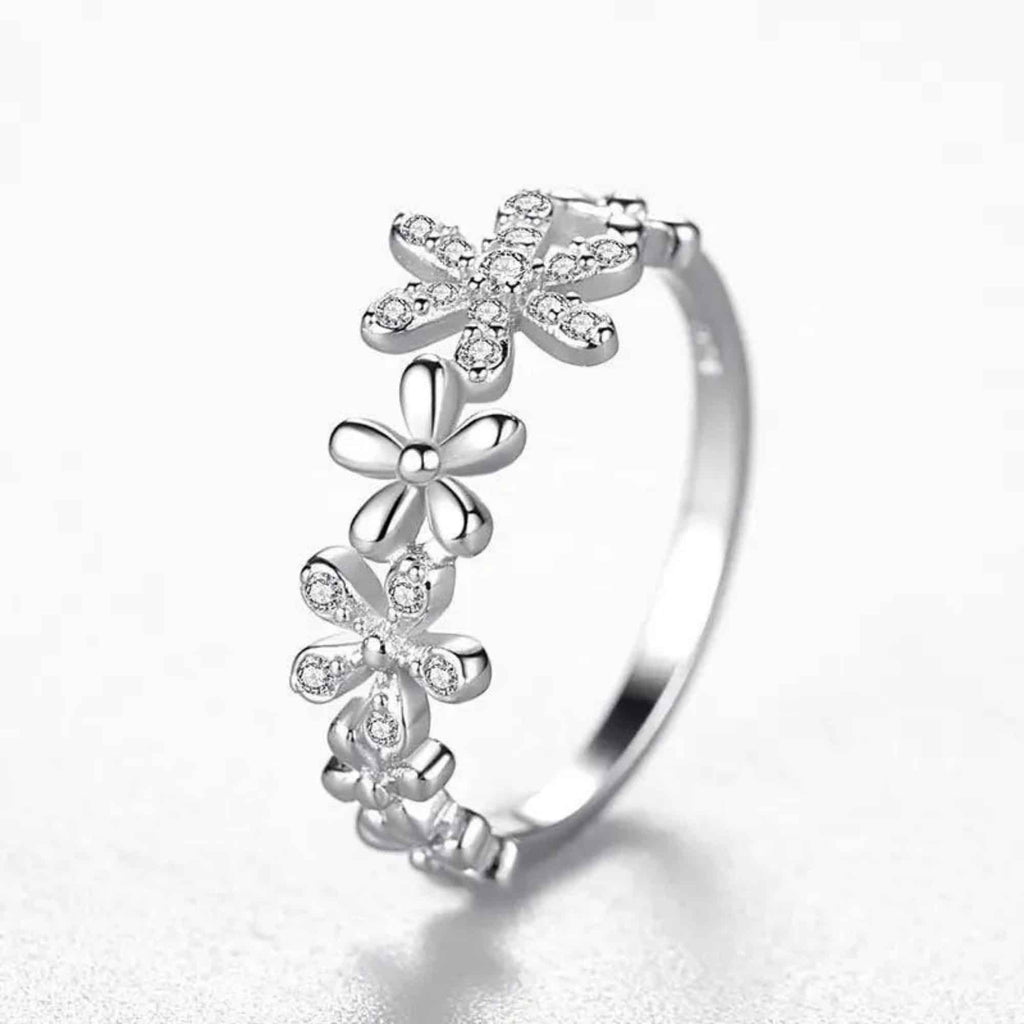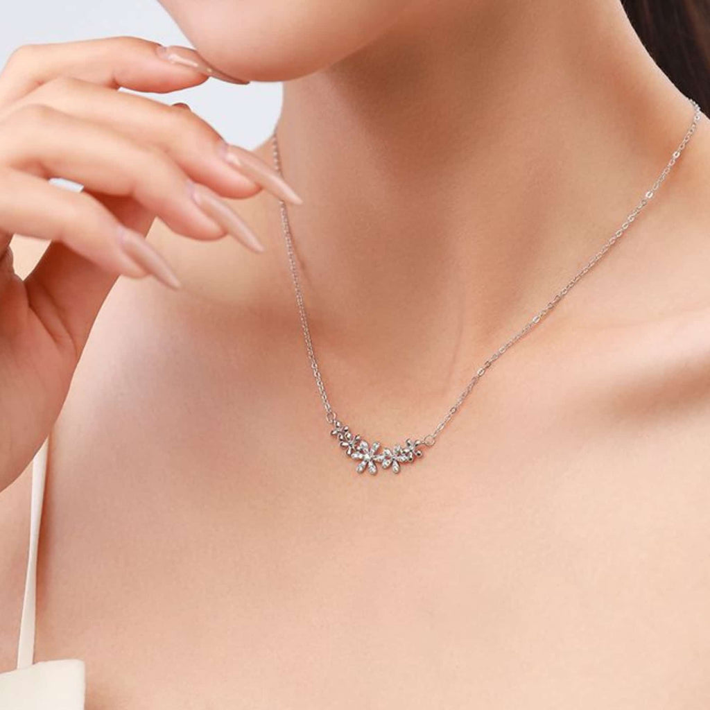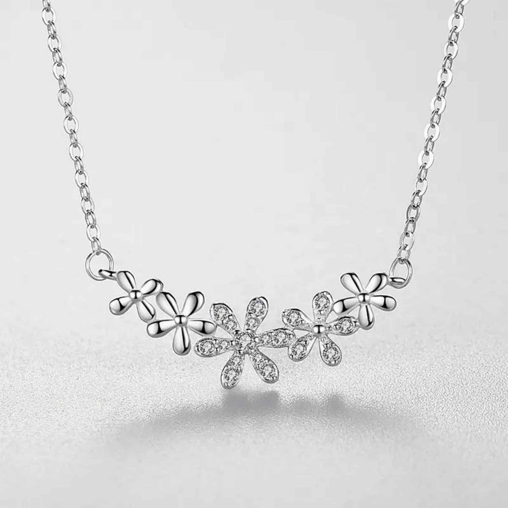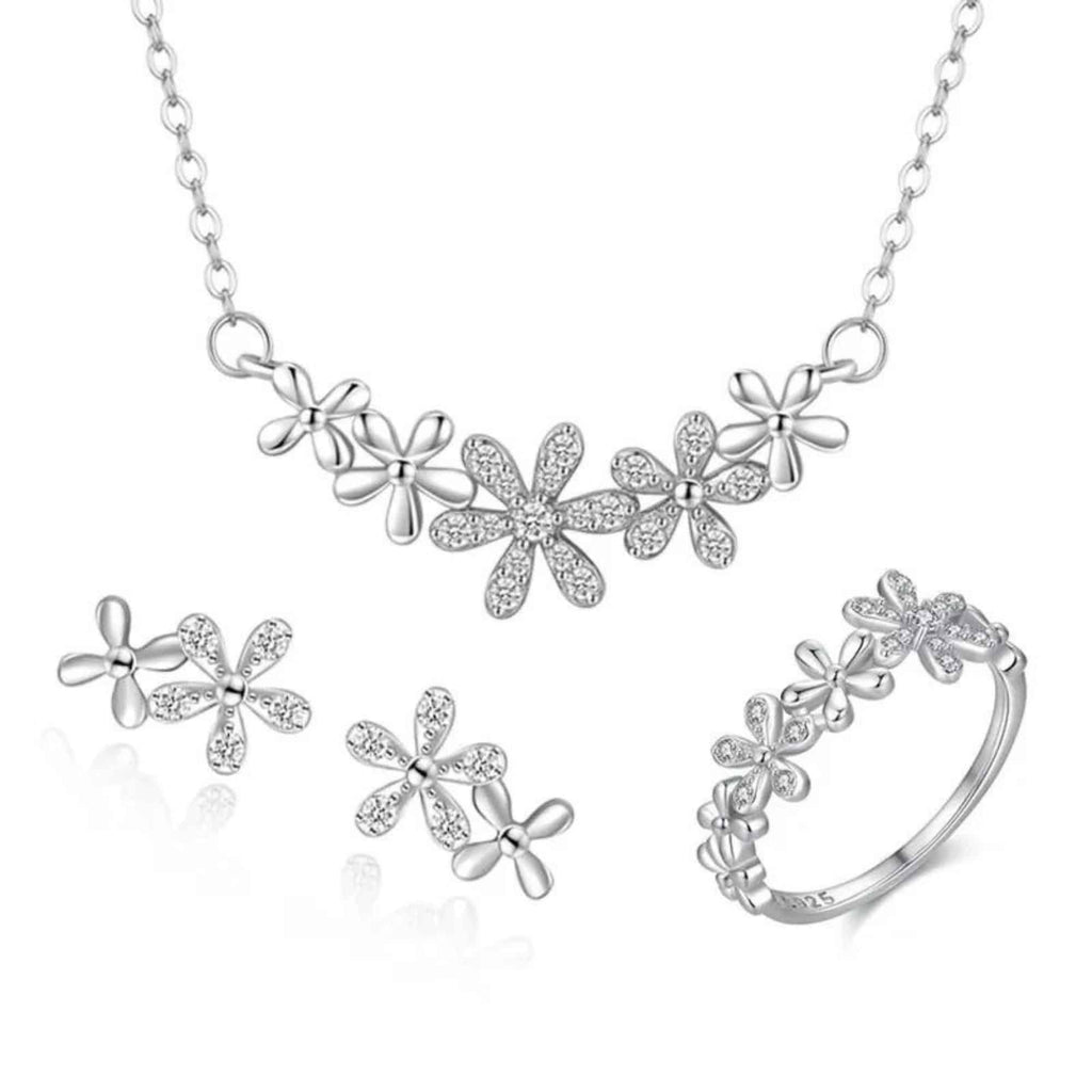 Geef je garderobe de charme van de natuur met deze zilveren set, versierd met delicate bloemmotieven en sprankelende zirkonia's. Het bestaat uit oorbellen, een ketting en een ring en biedt een complete, harmonieuze uitstraling. De botanische details geven elke outfit een frisse, duurzame touch, zodat je gemakkelijk trendy blijft.