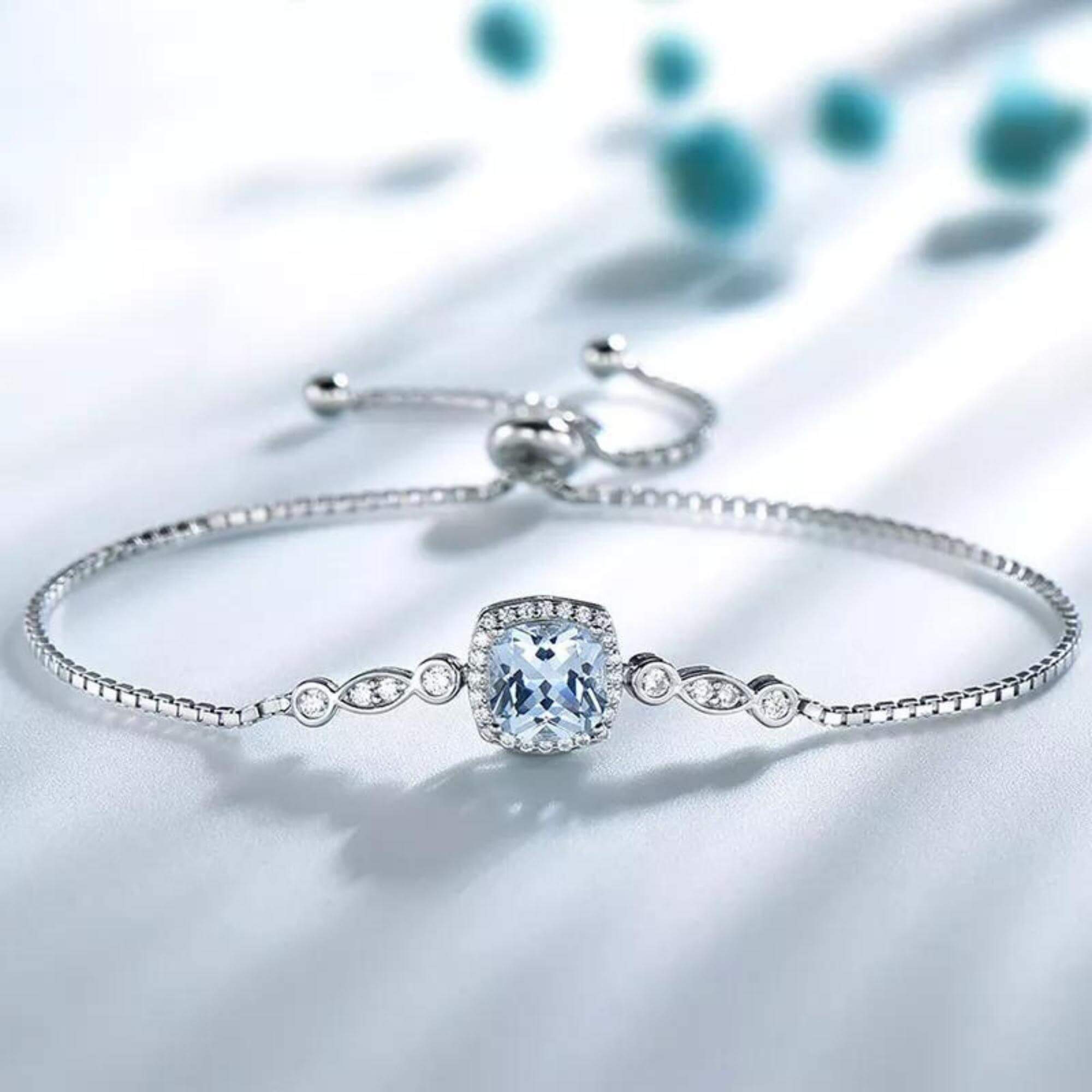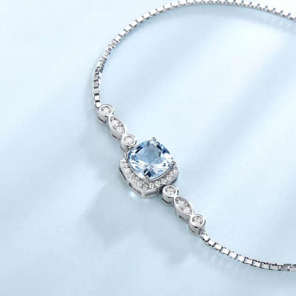 Trek ieders aandacht met onze zelfaanpassende zilveren armband, subtiel versierd met een ingewikkelde Venetiaanse ketting die liefdevol een synthetische blauwe topaas in het hart laat zien. Dit betoverende stuk, toepasselijk genaamd 'Attention', zorgt ervoor dat alle ogen naar het unieke ontwerp worden getrokken. De omringende zirkoniastenen complementeren het hoofdjuweel en creëren een harmonieus meesterwerk dat bewonderaars zeker zal boeien.