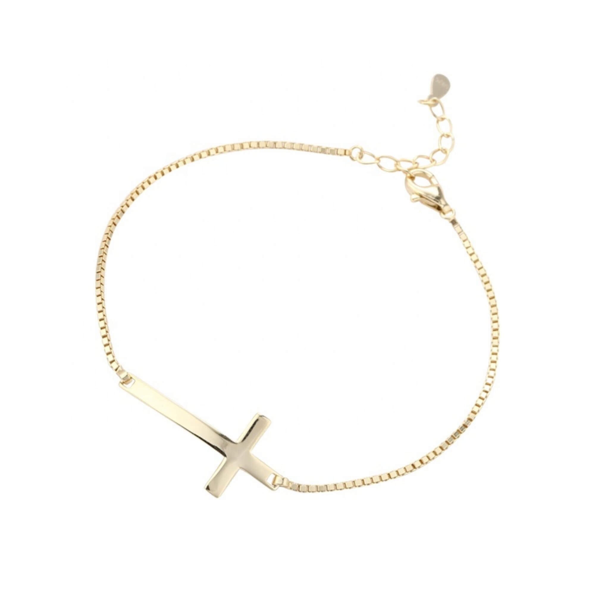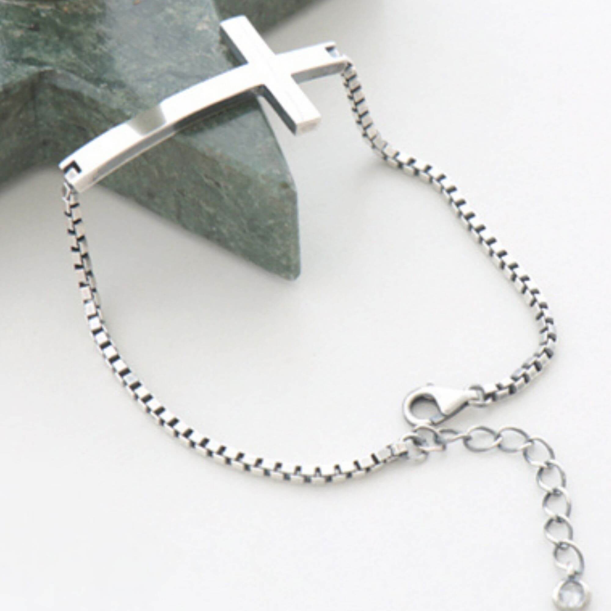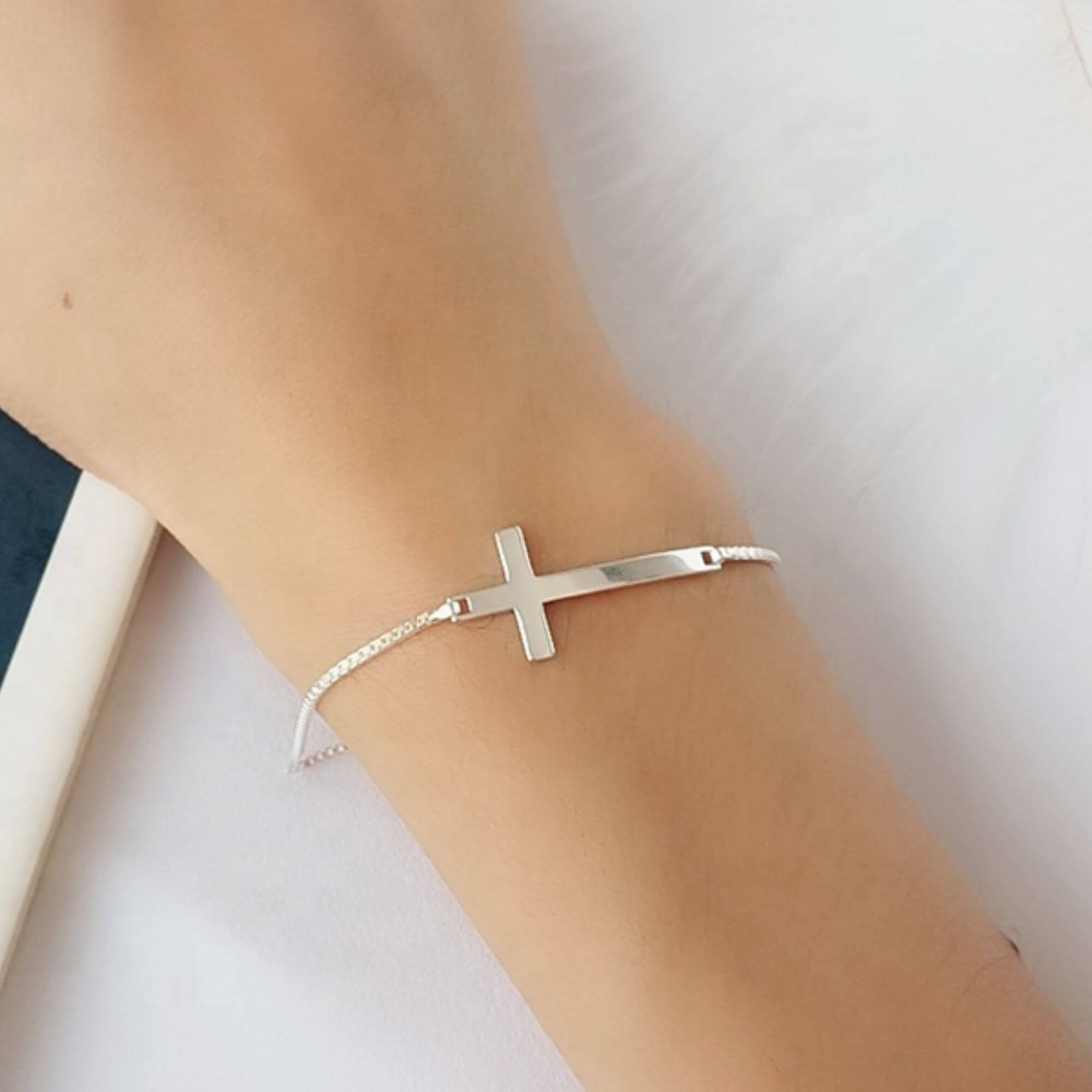 Ontdek elegantie in eenvoud met deze zilveren armband met een gevlochten ketting en een kruishanger, verkrijgbaar in twee boeiende varianten: sterling zilver en 18k verguld sterling zilver. Dit accessoire zal ongetwijfeld een vleugje schoonheid toevoegen aan de pols van een verfijnde en stijlvolle dame.
