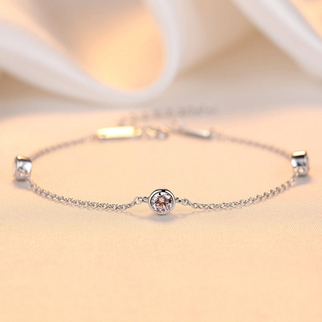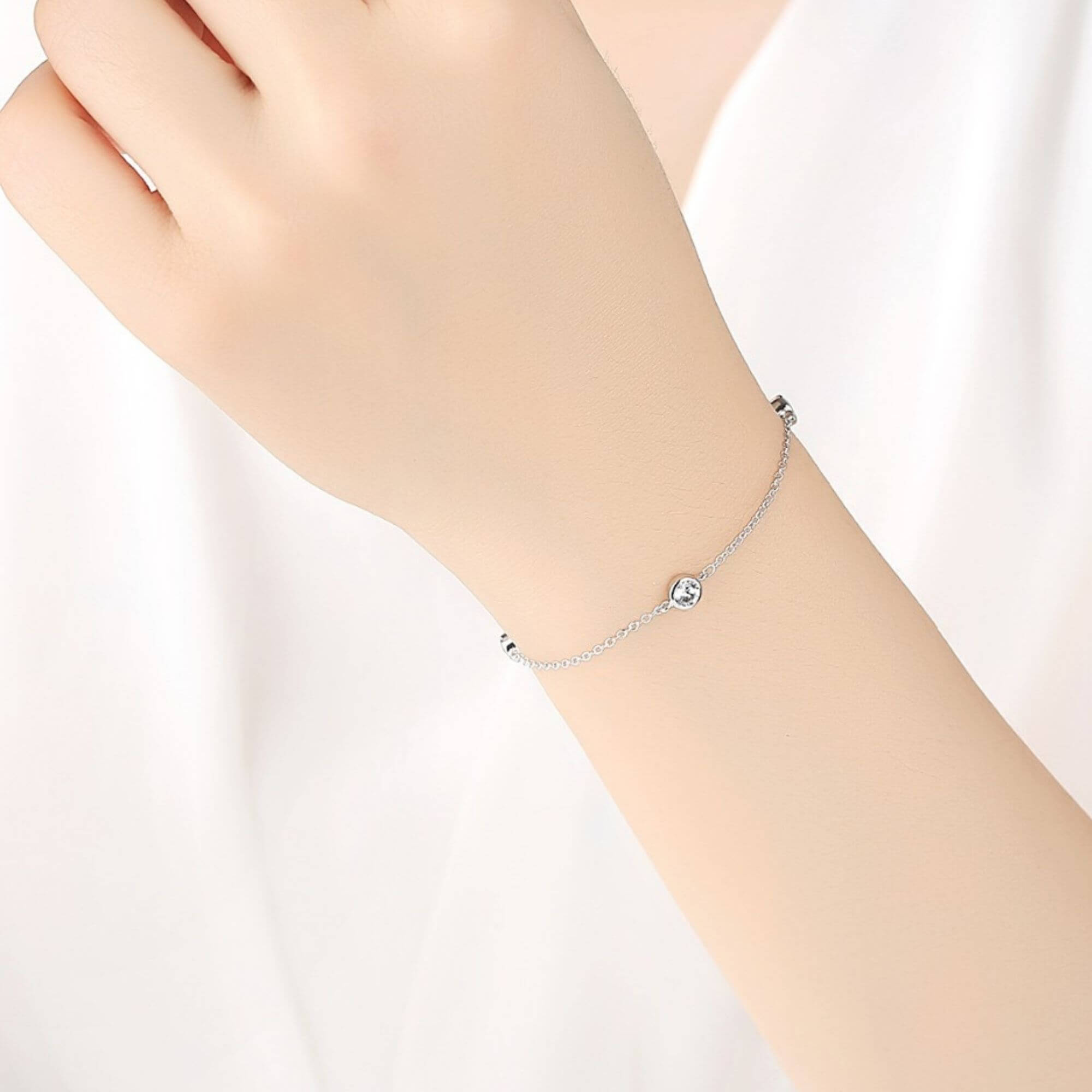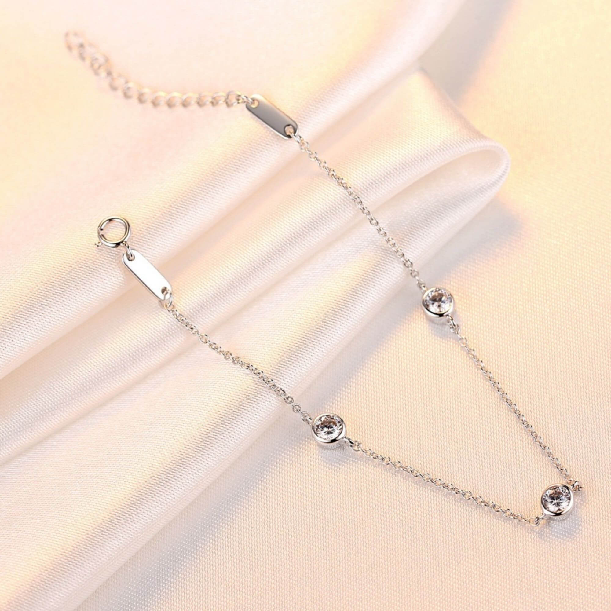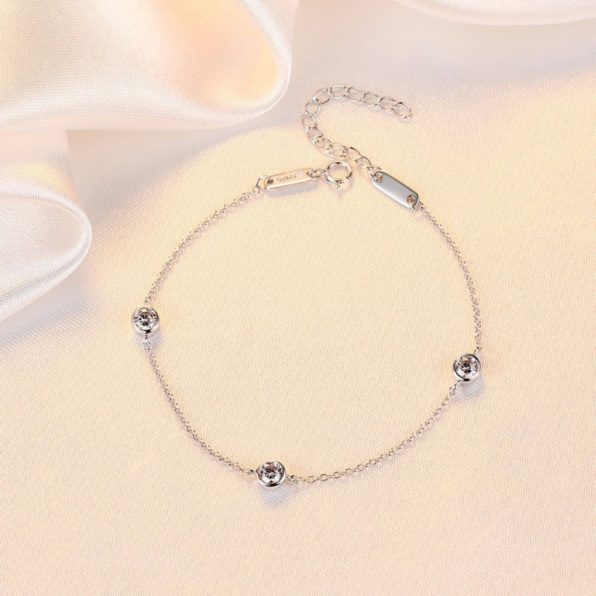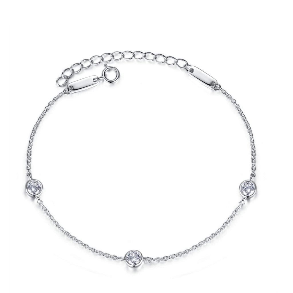 Verfijn je look met de minimalistische charme van deze zilveren armband, met drie nauwkeurig geplaatste zirkonia-edelstenen. De ingetogen elegantie en het eenvoudige ontwerp geven elke outfit verfijning, waardoor het een ideaal accessoire is voor een sierlijke uitstraling.