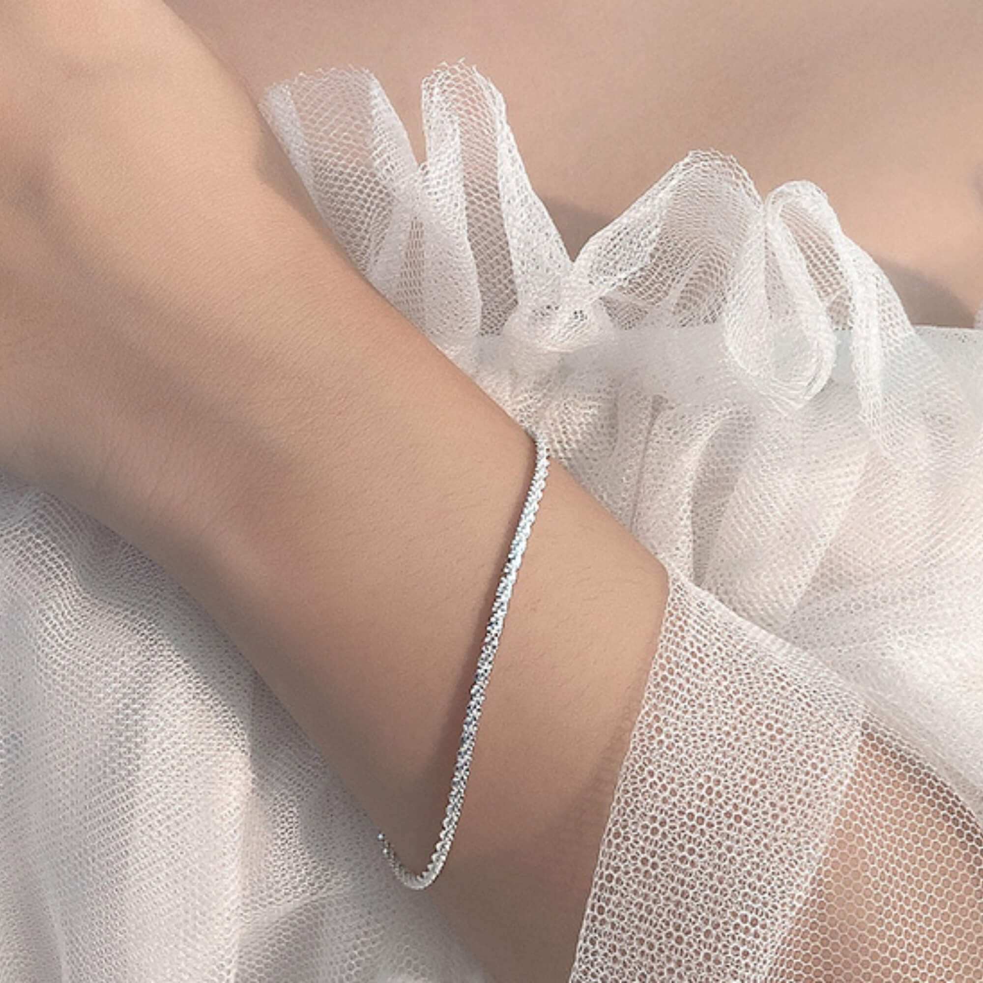 Dompel jezelf onder in de wereld van ingetogen elegantie met onze zilveren armband. Het verfijnde ontwerp maakt hem tot een passende metgezel voor zowel dagelijks gebruik als speciale gelegenheden. De eenvoud van deze armband zorgt ervoor dat je hem gemakkelijk kunt combineren met andere stukken, waardoor je de vrijheid hebt om een persoonlijke, gelaagde look te creëren die straalt van tijdloze glamour.