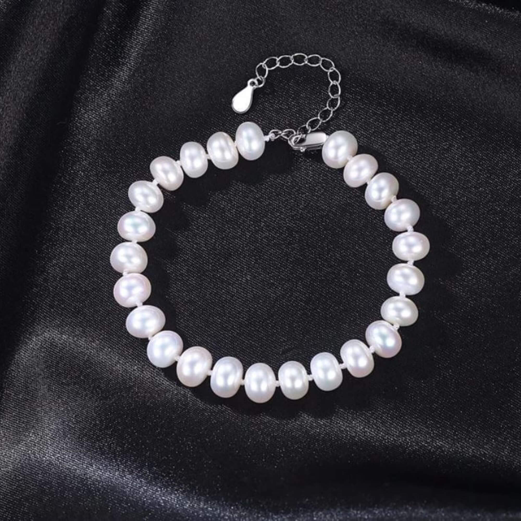 Betreed een rijk van klassieke schoonheid met onze sterlingzilveren armband, versierd met 28 stralende parels. Elke parel vangt en reflecteert licht, waardoor bij elke beweging een boeiende weergave van helderheid ontstaat, wat tijdloze elegantie en verfijning belichaamt.