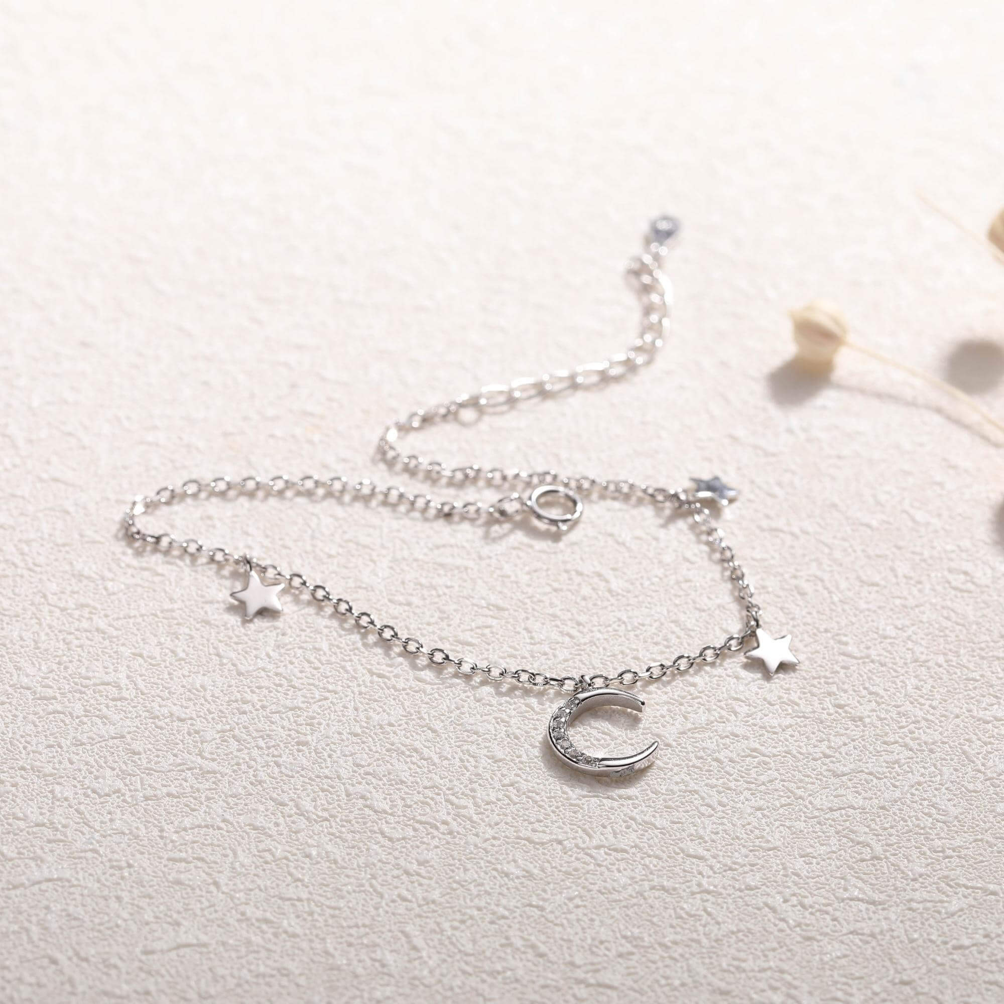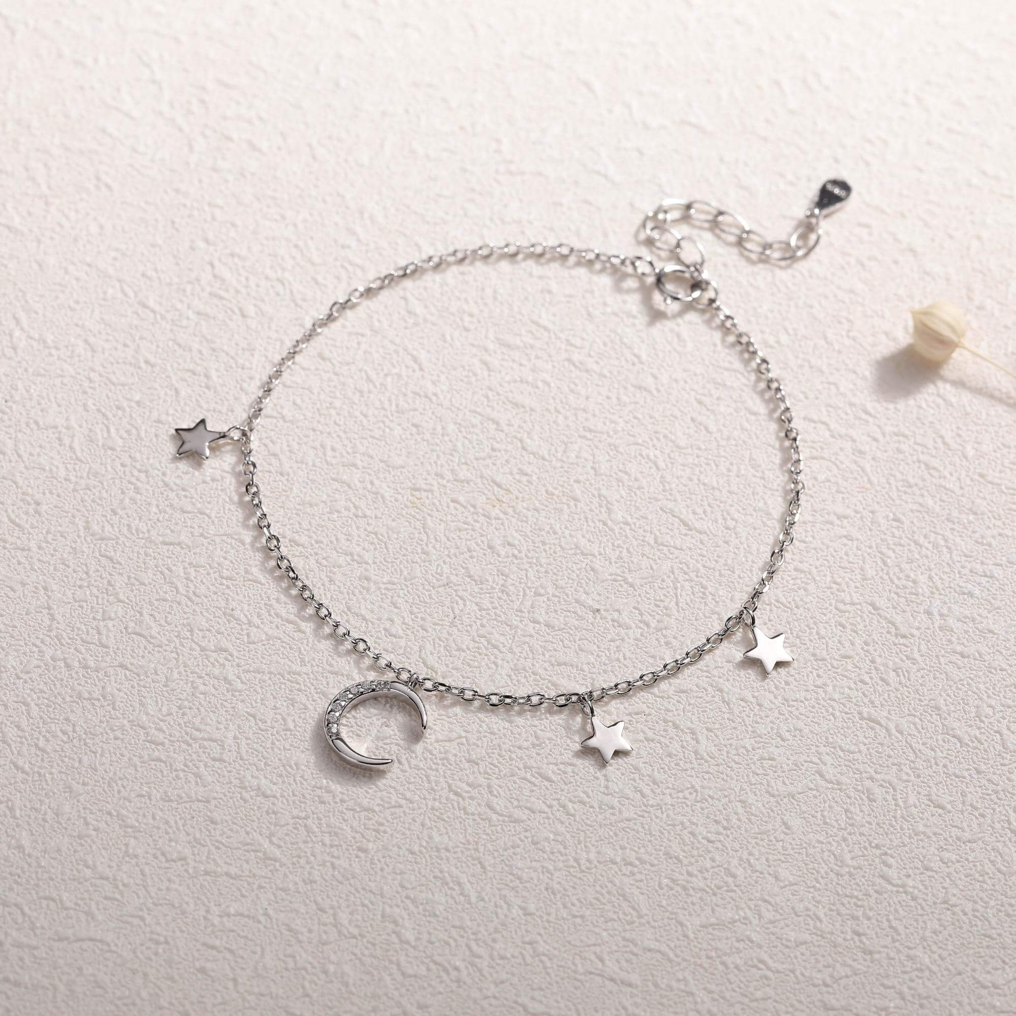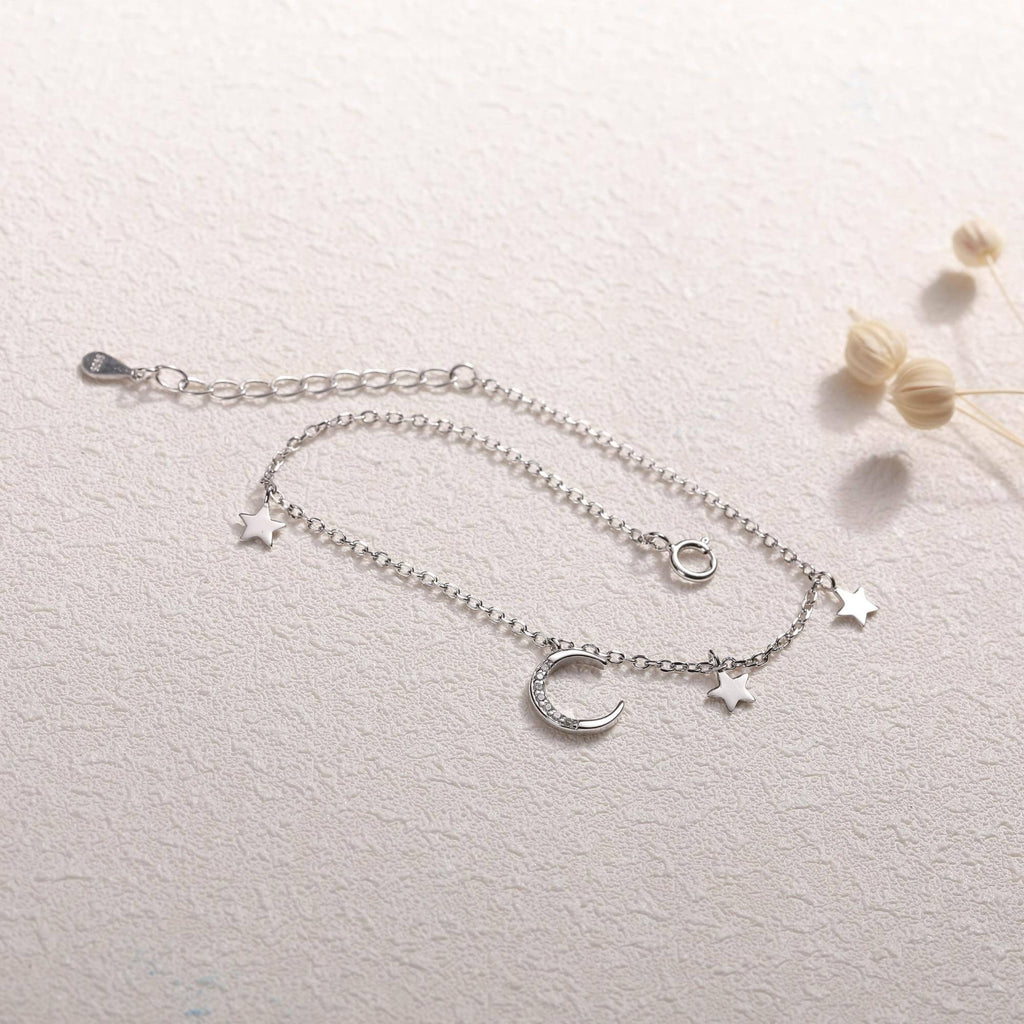 Daal het hemelse rijk binnen met onze zilveren armband, een hemels meesterwerk voor liefhebbers van astrologie. De sierlijke maansikkel en drie stralende sterren weven een kosmische dans om je pols en vangen de magie van het universum op. Perfect voor sterrenkijkers en degenen die schoonheid vinden in de kosmos. Deze armband is een symbool van jouw hemelse verbinding.