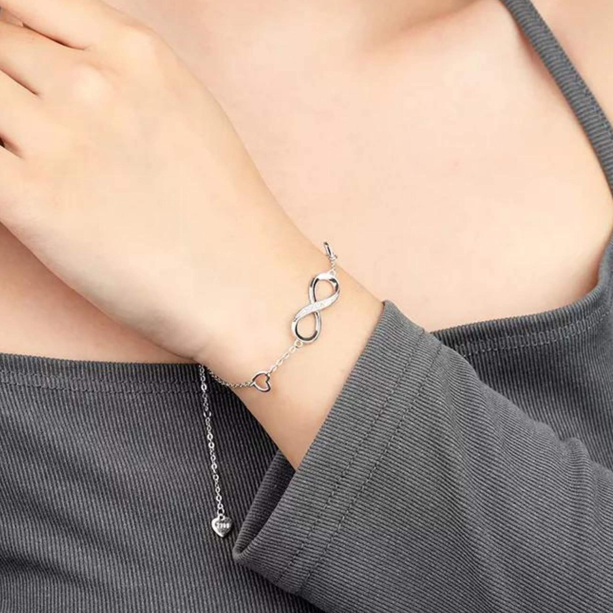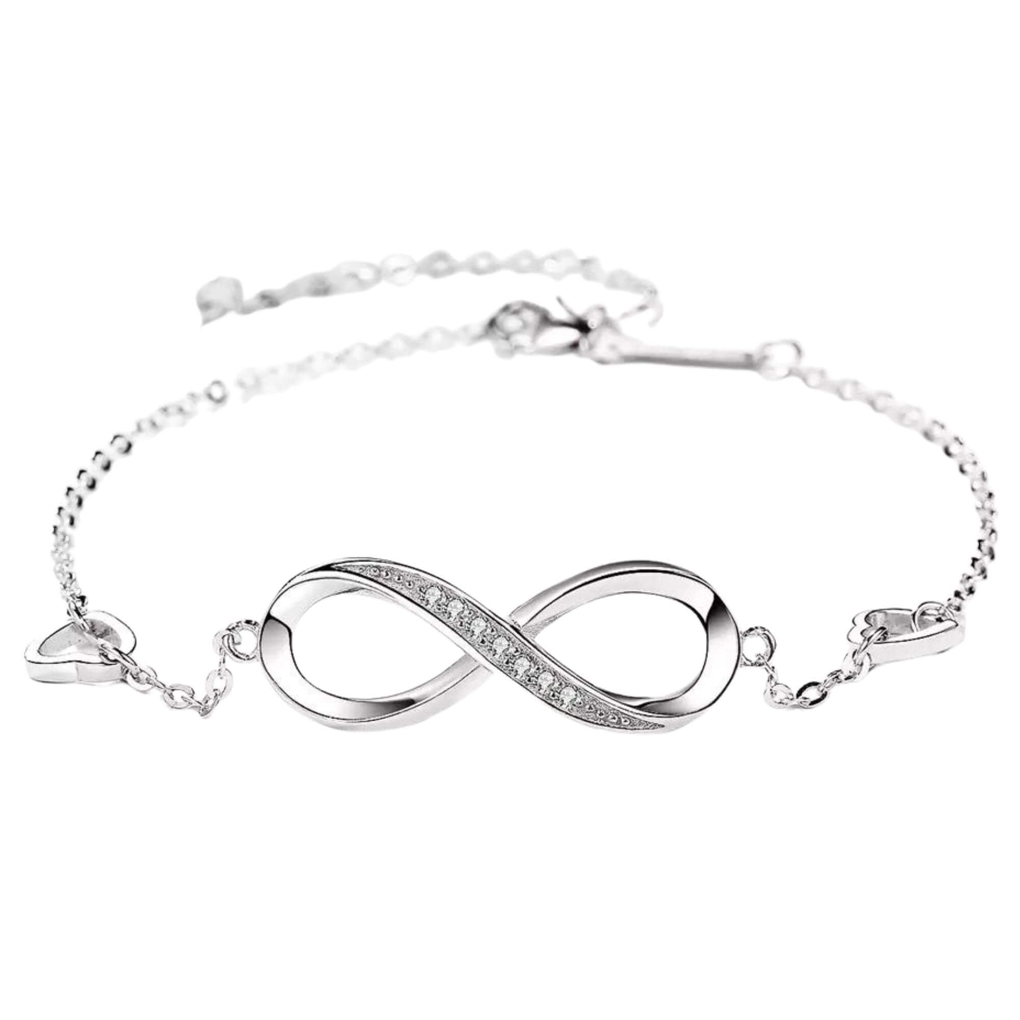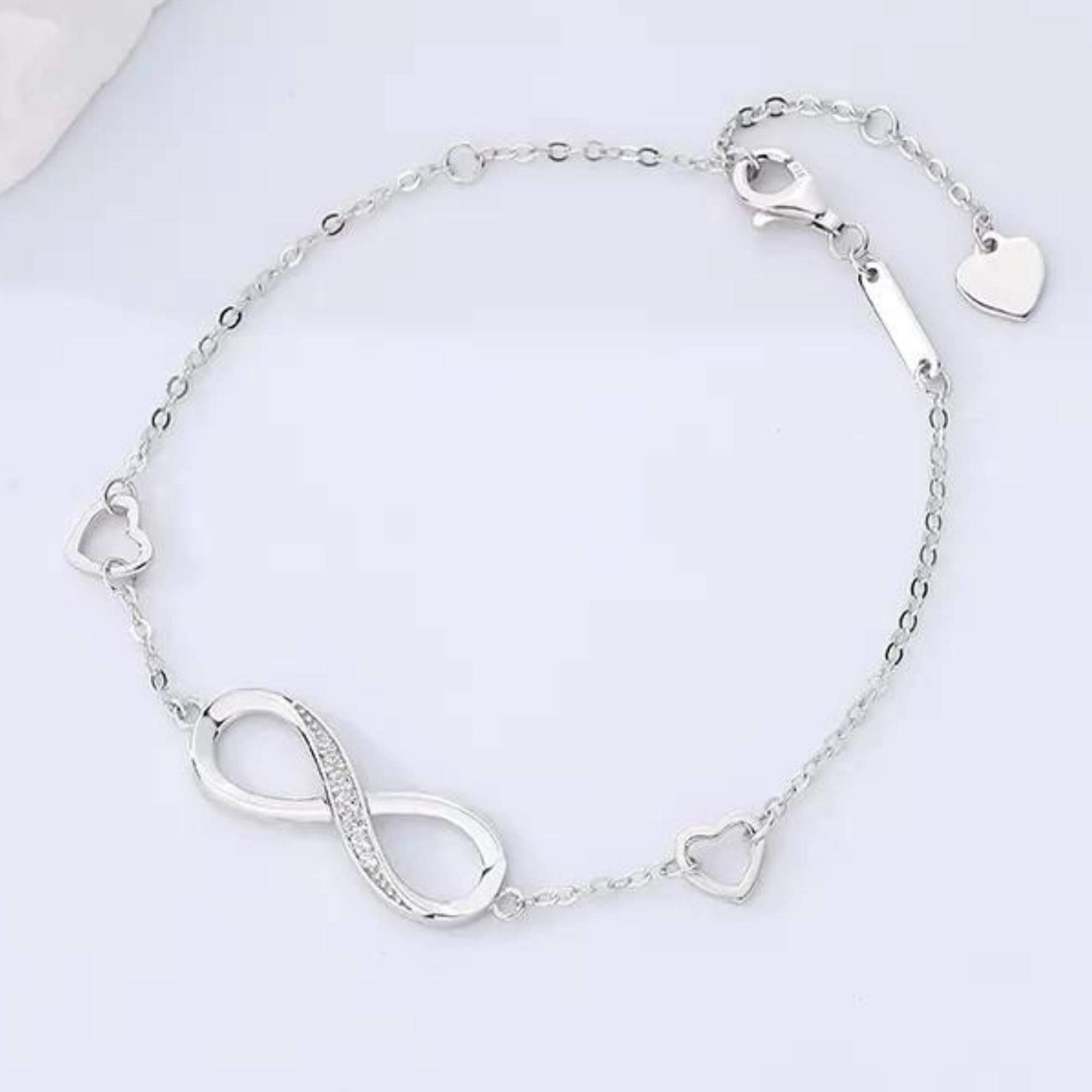 Omarm het tijdloze symbool van eeuwige liefde met deze unieke zilveren armband met een oneindigheidsontwerp. De in elkaar grijpende lussen vertegenwoordigen prachtig de onbreekbare band tussen twee personen. Vervaardigd met oog voor detail, is deze armband de perfecte keuze om je diepe genegenheid en toewijding aan een geliefde te uiten. Het elegante en sentimentele ontwerp maakt het een romantisch geschenk dat jarenlang gekoesterd zal worden.