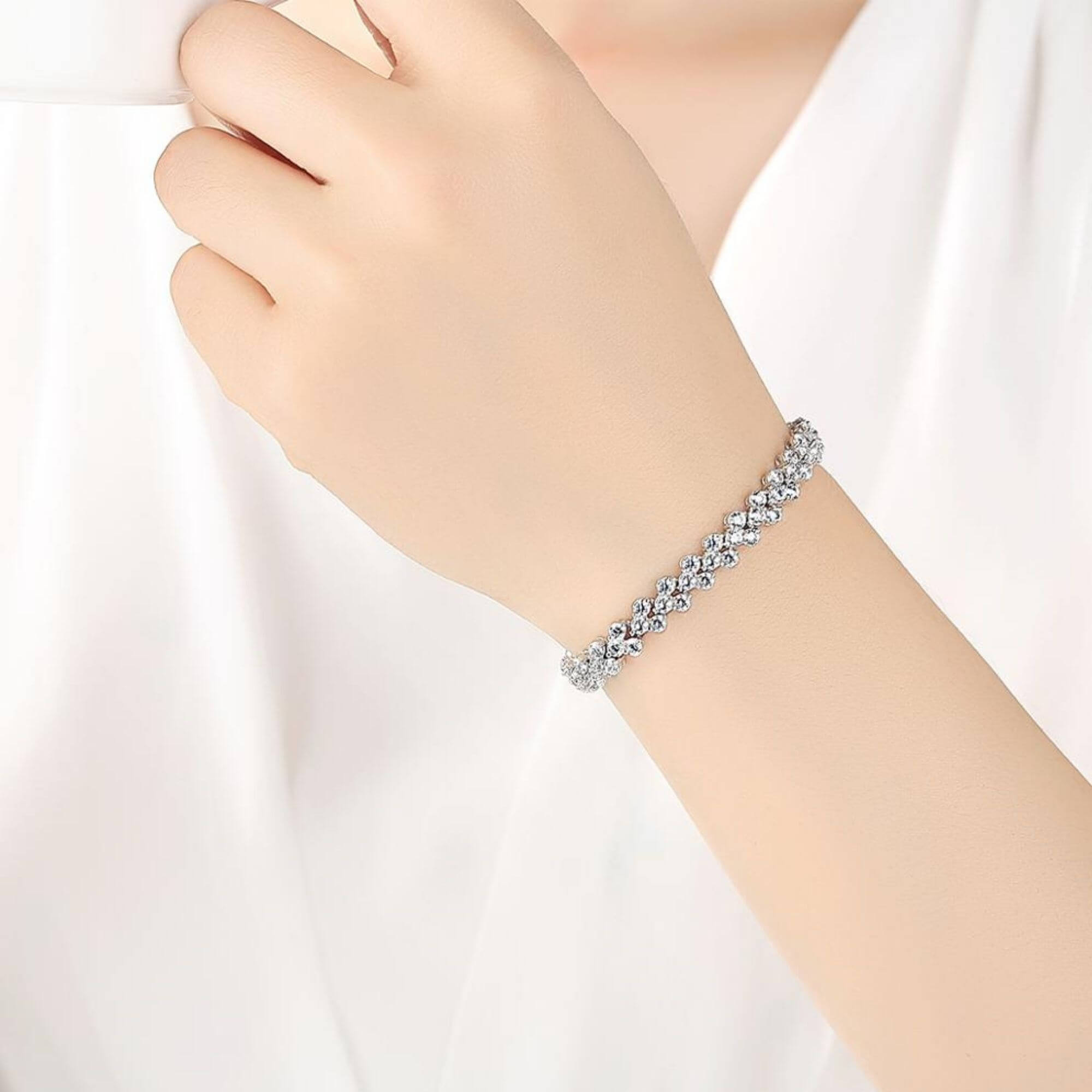 Stap in elegantie met onze zilveren armband, een echt statement-stuk dat een unieke glans aan je pols geeft. Met een gewicht van bijna 16 gram is hij ontworpen voor impact en comfort, met nauwkeurig vakmanschap en een elegante sluiting. Ideaal voor speciale gelegenheden of gewoon om je dag een sprankeling te geven: deze armband is een onvergetelijke toevoeging aan elk ensemble.