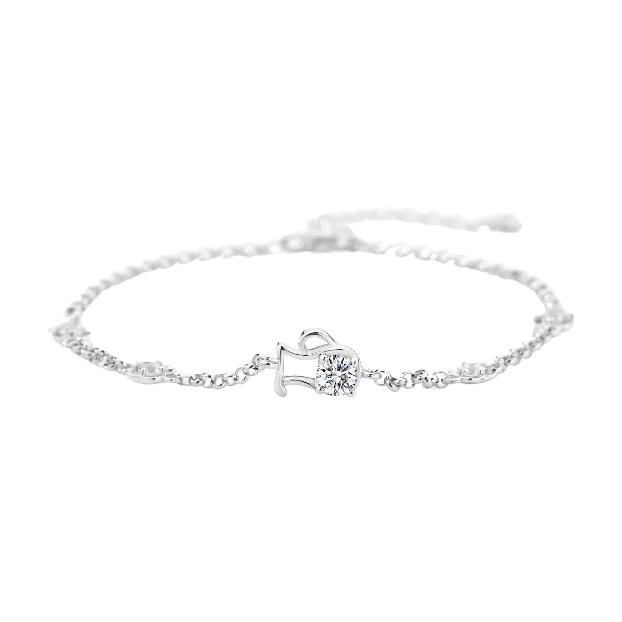Verbluffende zilveren armband die de unieke kenmerken en symboliek belichaamt van degenen die geboren zijn onder het sterrenbeeld Waterman (20 januari - 18 februari). Waterman-individuen staan bekend om hun loyaliteit en toewijding aan hun dierbaren, waardoor deze armband een perfecte weergave is van hun niet-aflatende toewijding. De armband is vervaardigd met aandacht voor detail en voorzien van strakke zilveren elementen die de golven van water symboliseren en de verbinding van Waterman met het element water weerspiegelen. Elk element is ingewikkeld ontworpen en vertegenwoordigt de diepte en complexiteit van de Waterman-persoonlijkheid. De armband dient als herinnering aan de kracht en loyaliteit die Waterman-individuen inbrengen in hun relaties, waarbij ze altijd door dik en dun aan hun dierbaren staan.