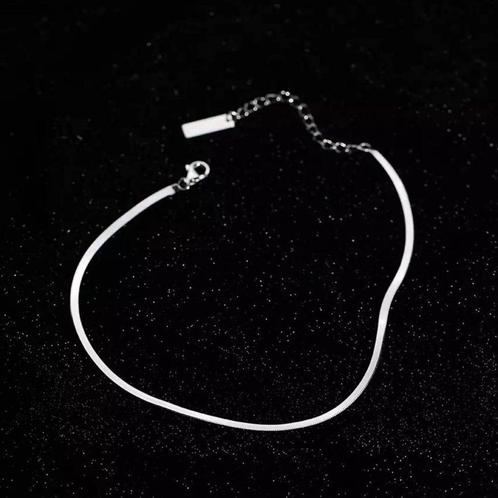 Maak kennis met een delicaat zilveren enkelbandje met platte brading, dat doet denken aan visgraat. Het bescheiden, minimalistische ontwerp leent zich moeiteloos om met elk ensemble te combineren. Omarm de veelzijdigheid van dit kledingstuk, waardoor het elke outfit naadloos kan verfraaien met zijn ingetogen charme. Ontdek eindeloze mogelijkheden op het gebied van accessoires, want dit enkelbandje wordt de perfecte metgezel voor elke gelegenheid en accentueert je look moeiteloos met een vleugje tijdloze elegantie.