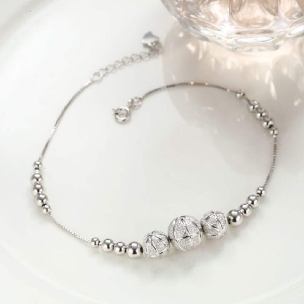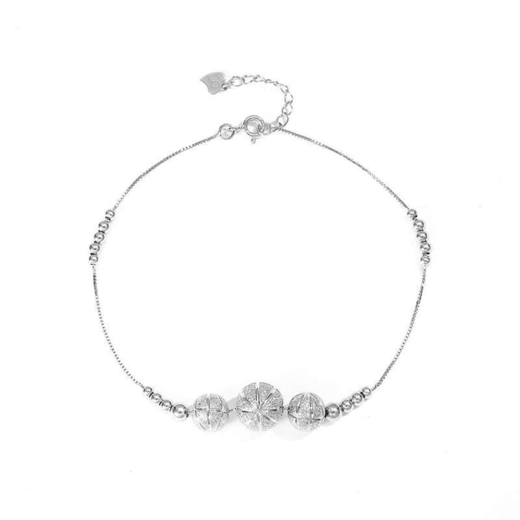 Omarm je vrouwelijkheid met dit charmante zilveren enkelbandje. Het eenvoudige maar elegante ontwerp heeft drie delicate elementen in het midden, aangevuld met een reeks kleine, kraalachtige elementen langs de ketting. De subtiele schoonheid van dit enkelbandje maakt het een veelzijdige toevoeging aan je collectie, perfect voor zowel casual als speciale gelegenheden.