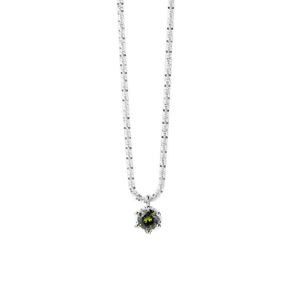 Dompel jezelf onder in de wereld van verfijnde elegantie met onze zilveren ketting, met een betoverende ronde hanger ingelegd met amberkleurige zirkonia. De uitstraling van de hanger wordt aangevuld door het ingewikkelde ontwerp van de ketting, waardoor dit prachtige stuk een boeiende glans krijgt. Deze ketting is een veelzijdig accessoire, perfect voor diverse sociale evenementen. Bereid je voor om een blijvend statement te maken en elke blik te vangen met deze opmerkelijk prachtige ketting die ervoor zorgt dat je opvalt in elke omgeving.