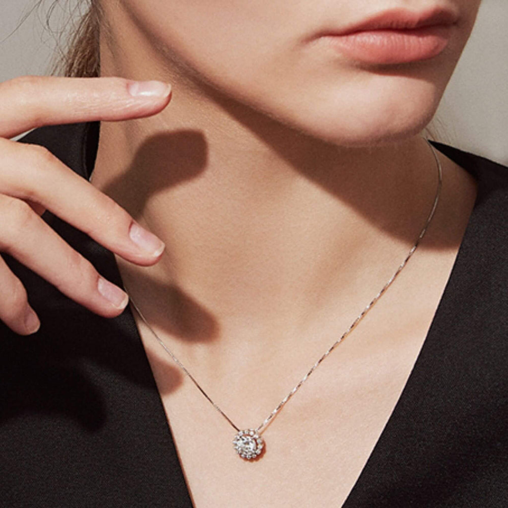 Ontdek de pracht van deze zilveren ketting, met een prachtige Moissanite-edelsteen in het hart. Het ontwerp, geïnspireerd op de zachte contouren van een bloeiende bloem, brengt een gevoel van geluk en warmte. Met zijn sierlijke charme is de ketting een visueel feest. De betoverende Moissanite, bekend om zijn schitterende schittering, past naadloos bij de verfijnde box-chain. Deze ketting is een waar meesterwerk en weerspiegelt een harmonieuze mix van de schoonheid van de natuur en verfijnd vakmanschap.