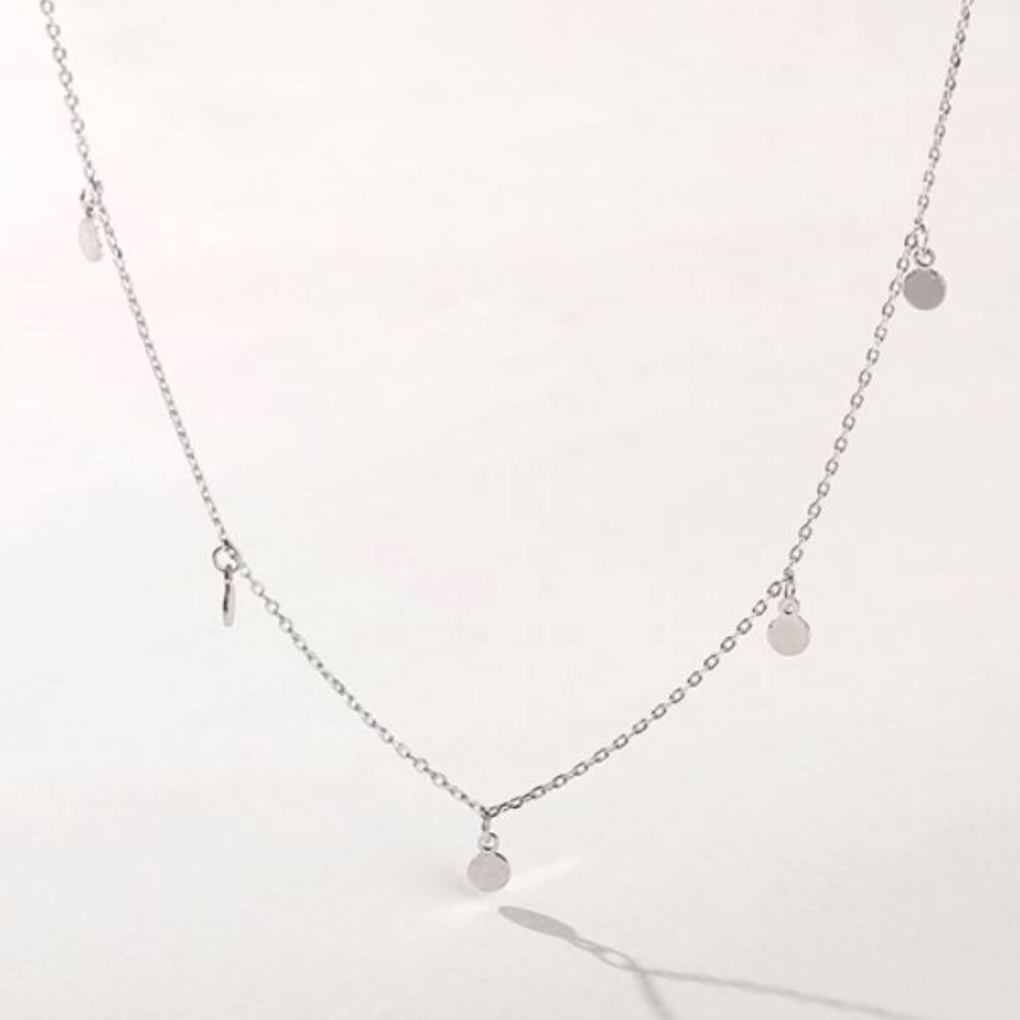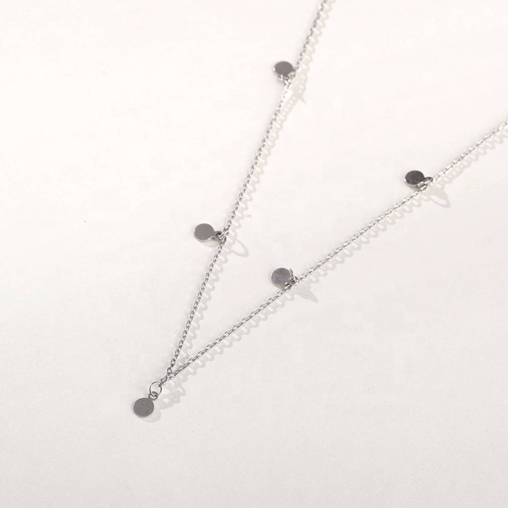 Deze delicate zilveren ketting, versierd met vijf ronde bedels, belichaamt op perfecte wijze speelse elegantie. Het combineert op kunstzinnige wijze klassiek design met een moderne twist, waardoor het een ideaal accessoire is om elke stijl op een elegante manier met verfijning naar een hoger niveau te tillen. Dit sieraad is perfect om een vleugje verfijnde charme aan je outfit toe te voegen en is een must-have voor degenen die hedendaagse elegantie in hun sieraden waarderen.