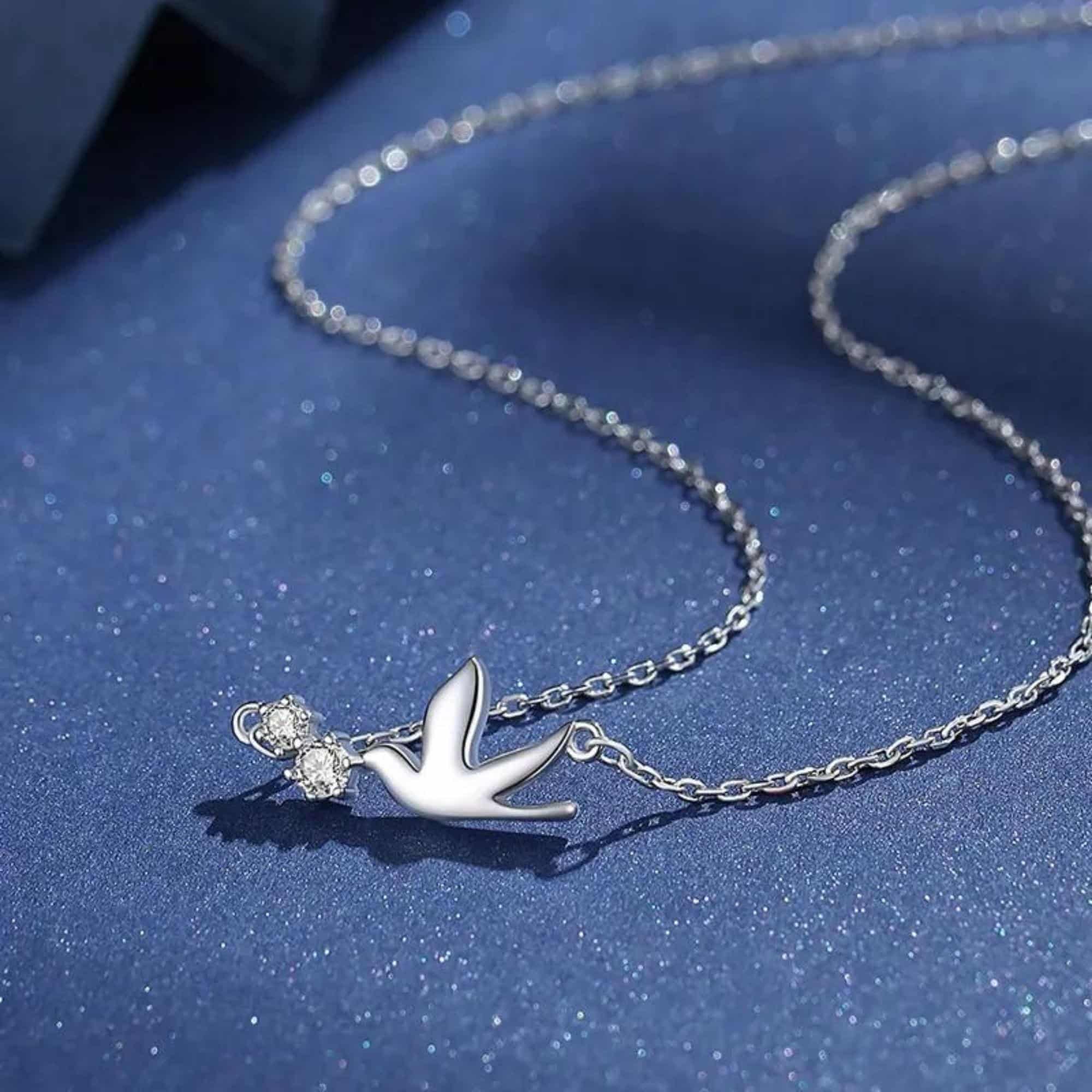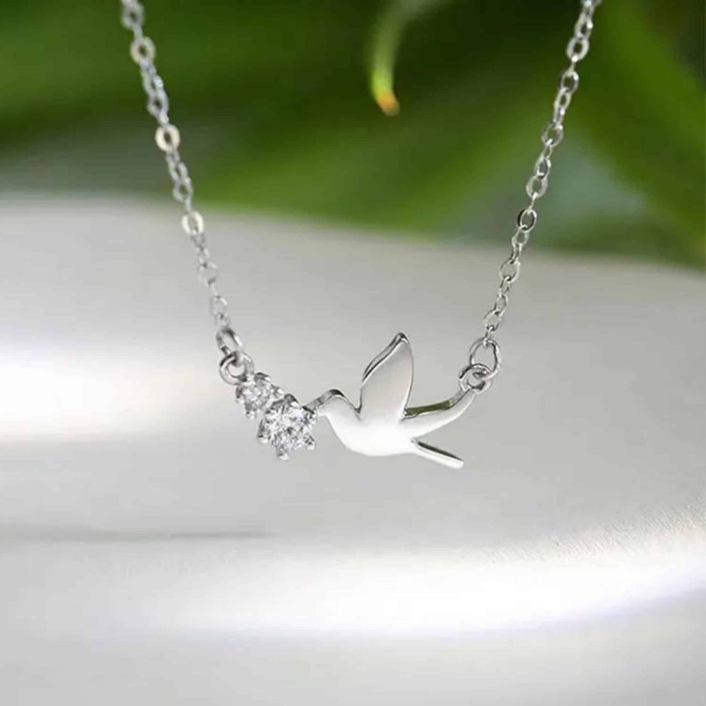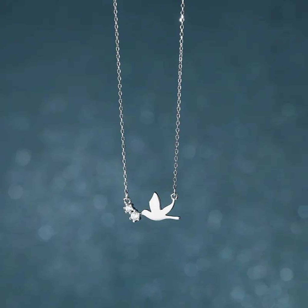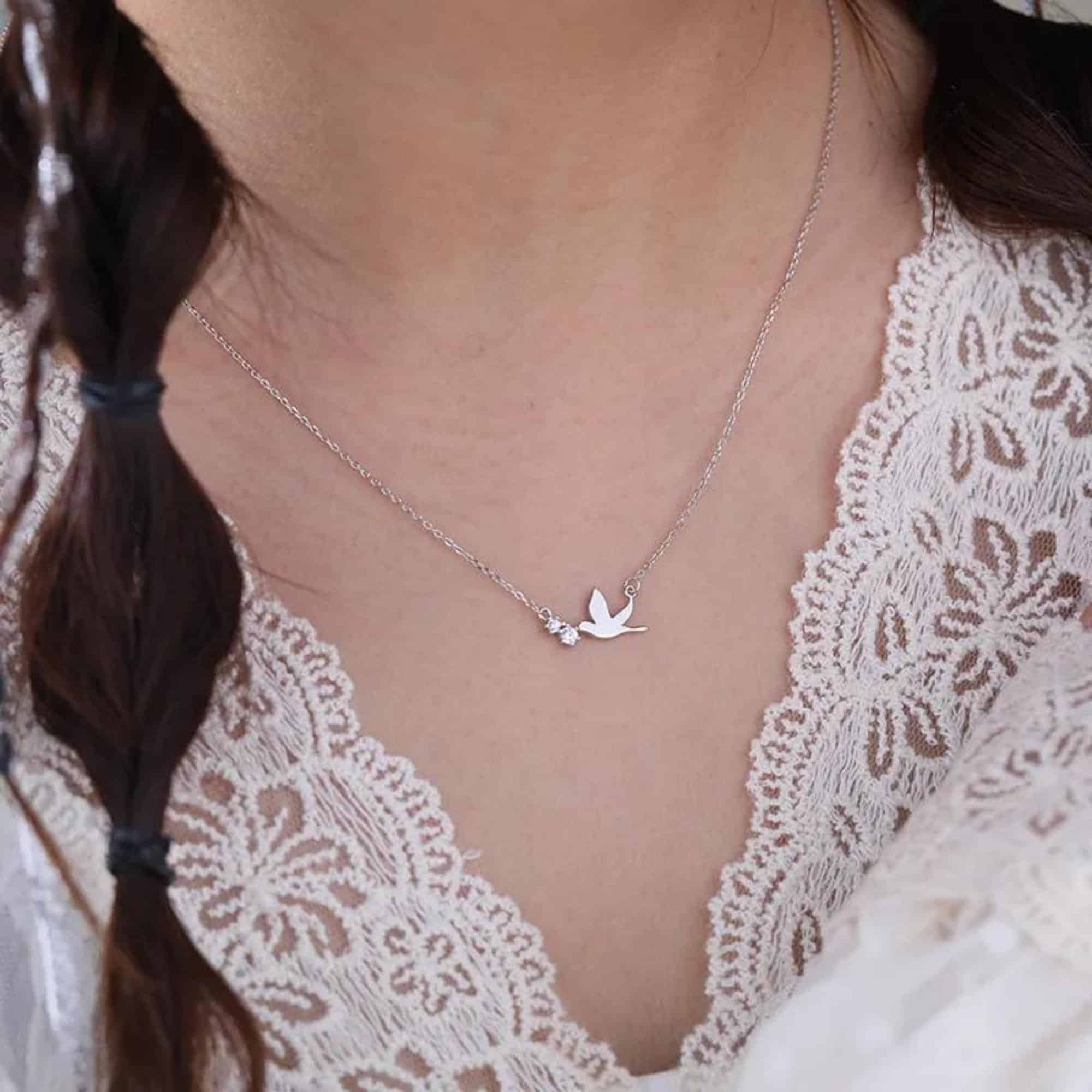 Omarm tederheid met deze prachtige zilveren ketting versierd met een duifhanger, versterkt door de subtiele glans van zirkoniastenen en een aloude klassieke ketting. De duif, een belichaming van vrijheid, sereniteit en genegenheid, verleent zijn aangrijpende symboliek. Naast zijn esthetische allure heeft deze ketting ook een diepgaande boodschap, waardoor het een prachtig accessoire is met een oprechte betekenis.