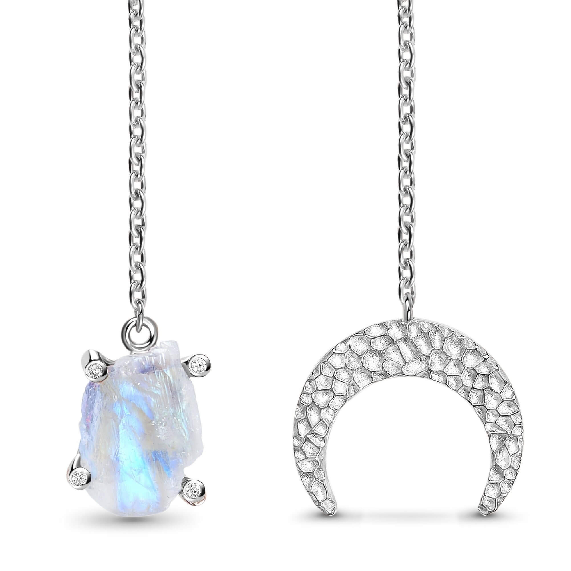 Laat je creativiteit de vrije loop met de betoverende uitstraling van deze buitengewone sterlingzilveren ketting versierd met een natuurlijke maansteen van AA+ kwaliteit. De ketting is voorzien van een klassieke vlecht die zich uitstrekt tot een royale lengte van 76 cm, waardoor je verschillende stylingopties kunt verkennen. De hangers, die aan elk uiteinde zijn geplaatst, nodigen uit om te experimenteren met verschillende manieren om hem te dragen. Of je er nu voor kiest om het subtiel om je nek te wikkelen, het sierlijk naar beneden te laten vallen of zelfs achter je rug te draperen voor een onconventionele twist, dit kledingstuk biedt talloze mogelijkheden. Dankzij de ruwe vorm van de maansteen kun je een krachtig statement van individualiteit maken. Omarm de schoonheid van deze glamoureuze ketting en laat je fantasie de vrije loop.