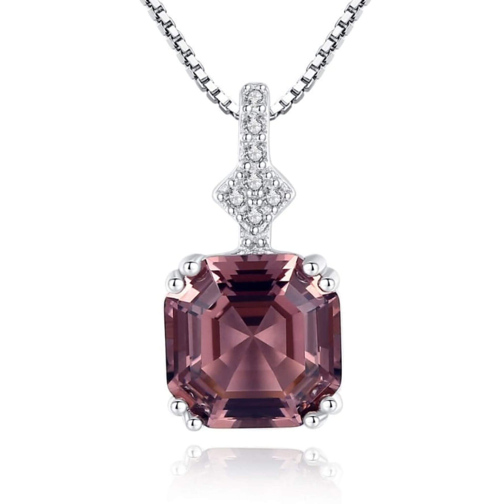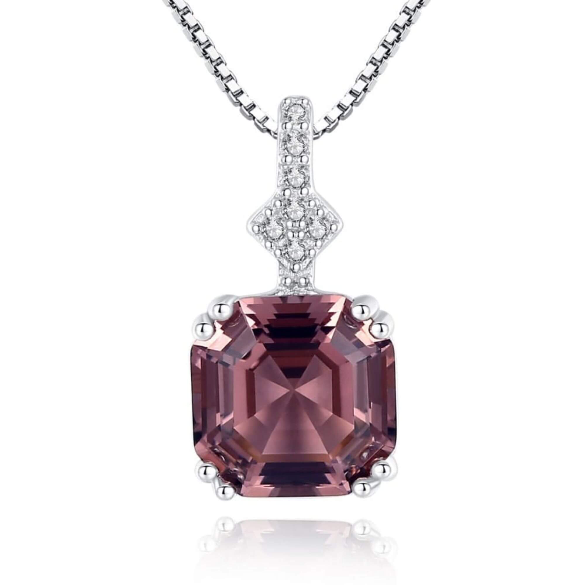 Deze zilveren ketting, met een prachtige doosketting en een centrale edelsteen, verkrijgbaar in twee kleurkeuzes, biedt een voortreffelijke veelzijdigheid. Kies voor de klassieke schittering van zirkonia of de betoverende rozebruine tint van synthetische topaas. Deze ketting is ideaal als aanvulling op elke outfit of accessoire en past zich naadloos aan zowel casual als formele gelegenheden aan.