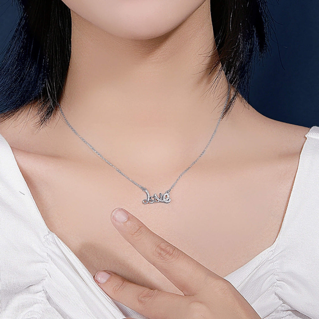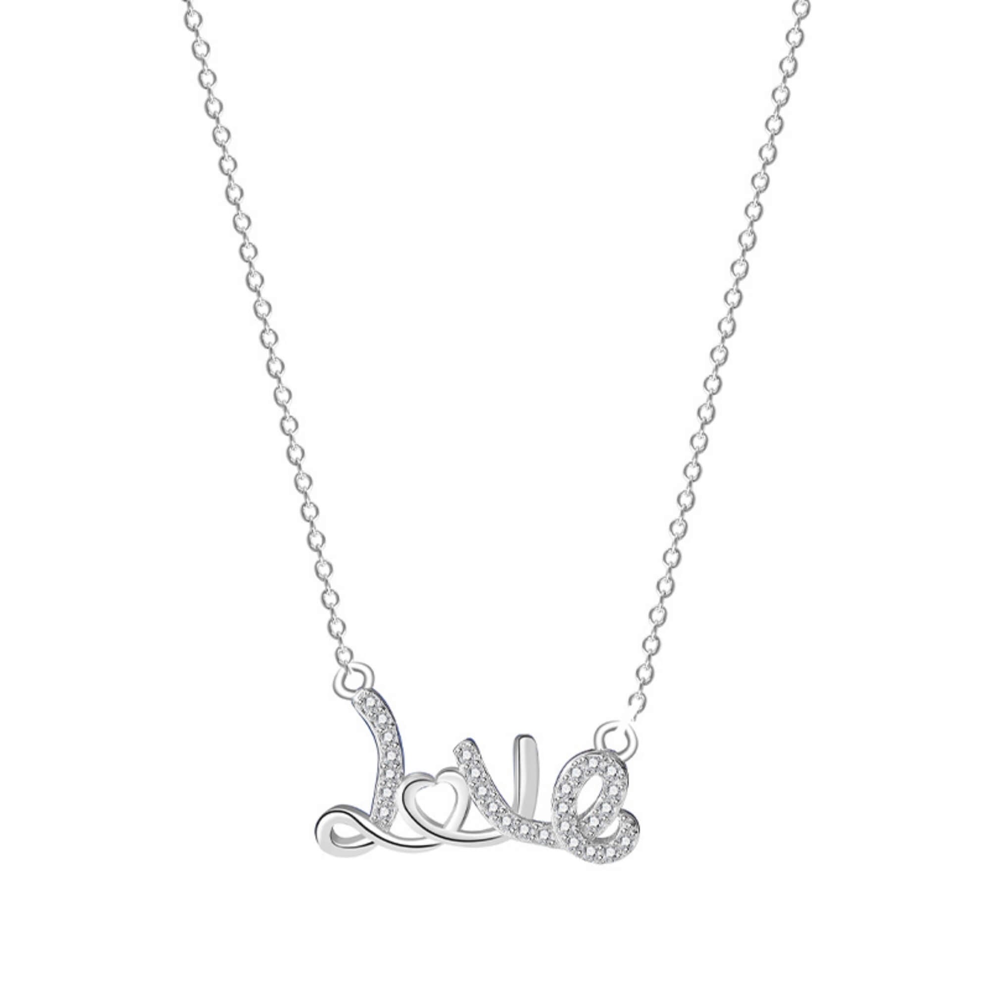 Omarm de essentie van romantiek met deze delicate zilveren ketting, voorzien van een elegante 'Love'-inscriptie. Verrijkt met fonkelende zirkoniastenen, straalt het een schittering uit die het een nog bijzonderere manier maakt om genegenheid voor dierbaren te uiten. Deze ketting is een charmant bewijs van liefde, perfect om cadeau te geven of als persoonlijk aandenken.
