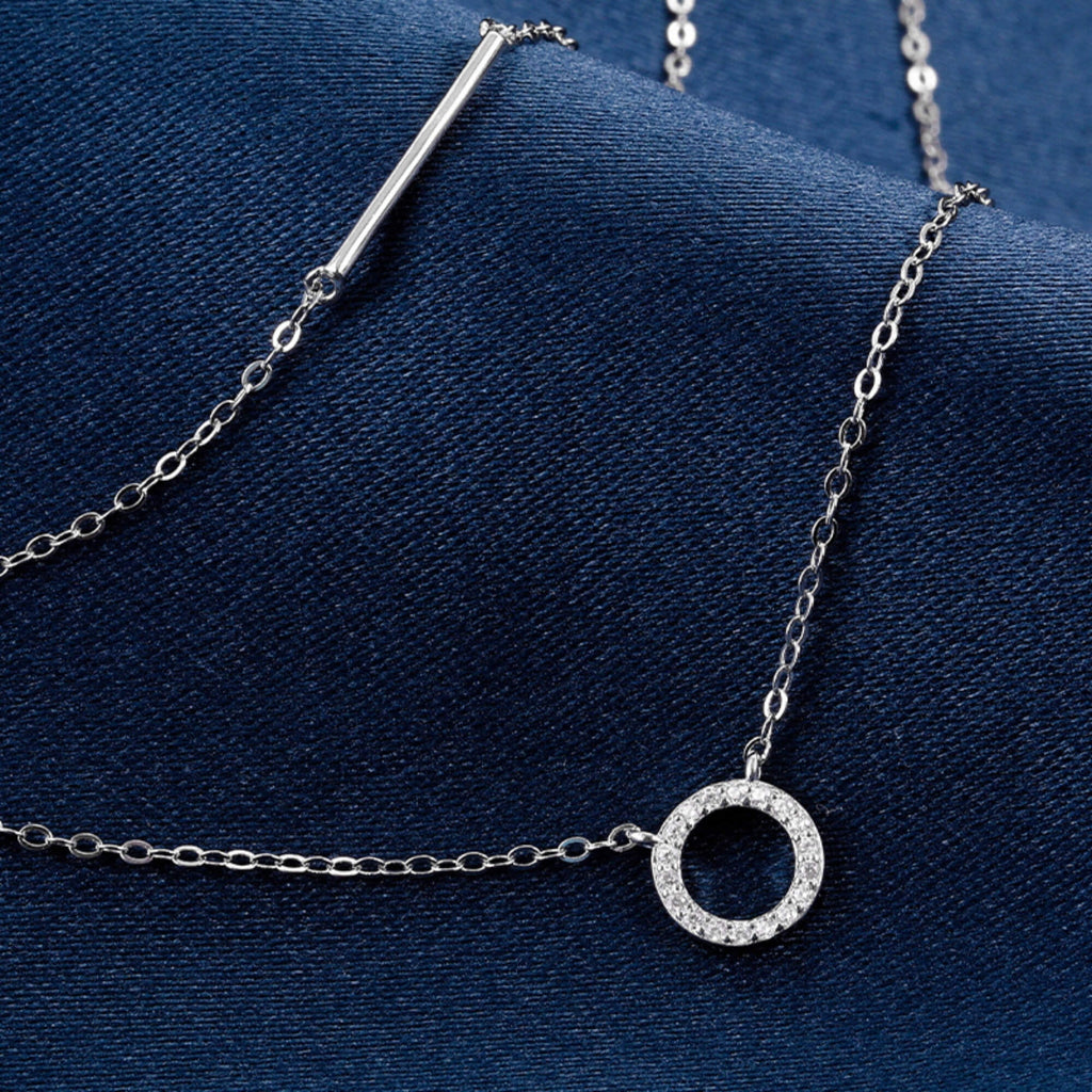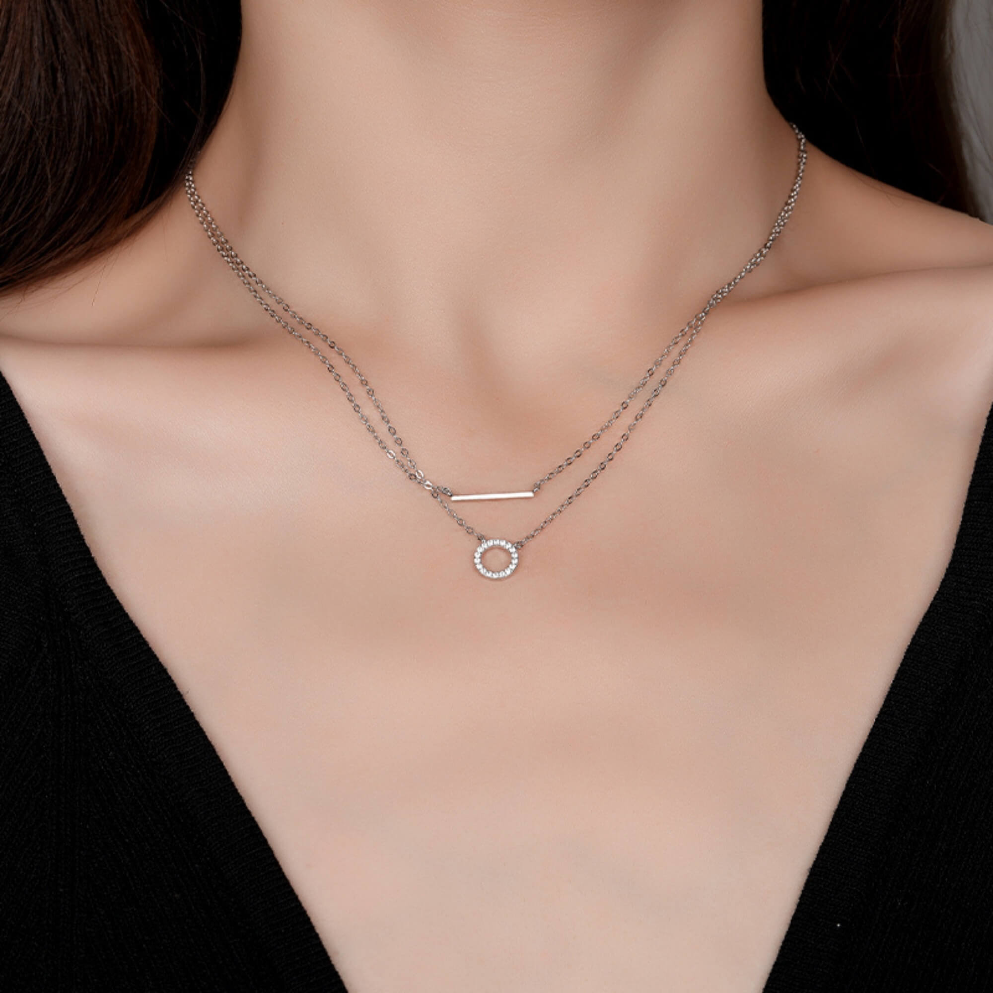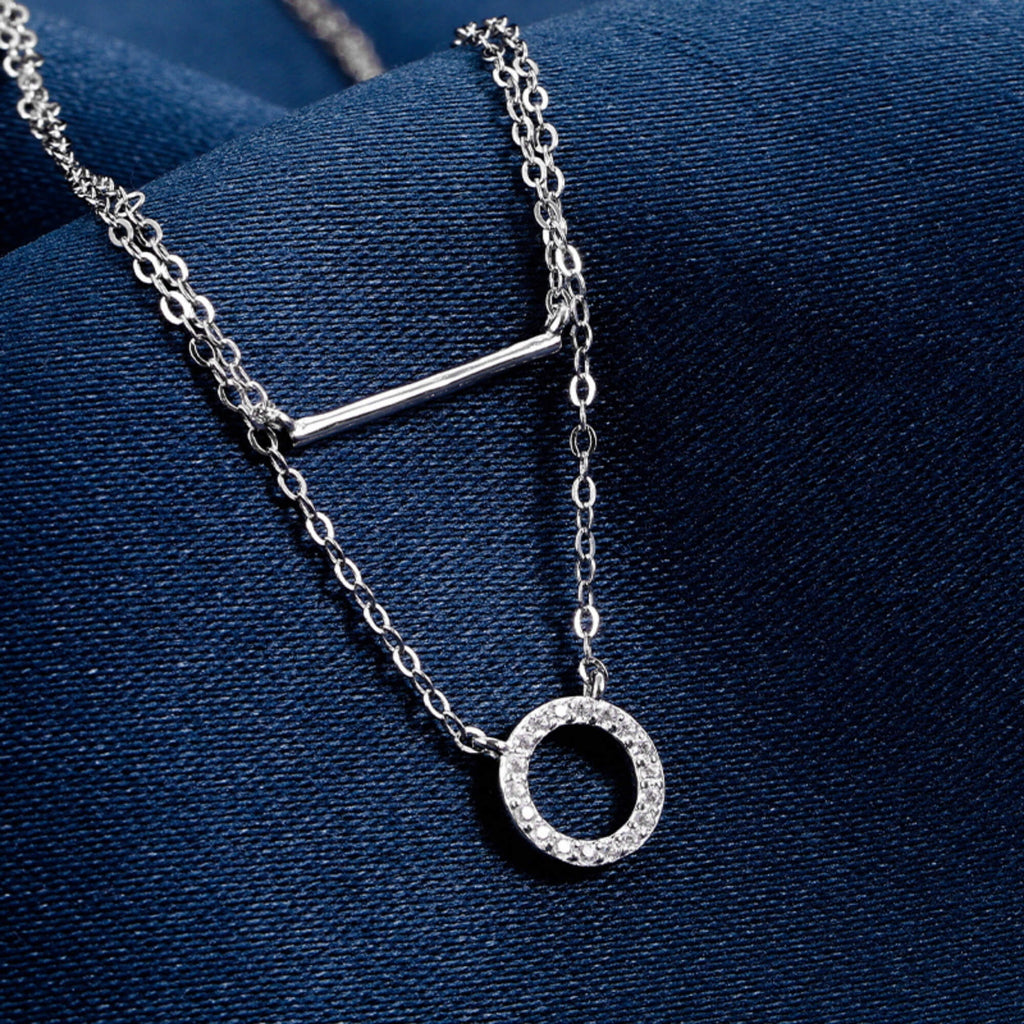 Verbeter je stijl moeiteloos met deze delicate zilveren ketting. Het ontwerp omvat twee harmonieus geplaatste elementen, die een verfijnde aanvulling vormen op uw look en u tijd besparen bij uw dagelijkse schoonheidsroutine.