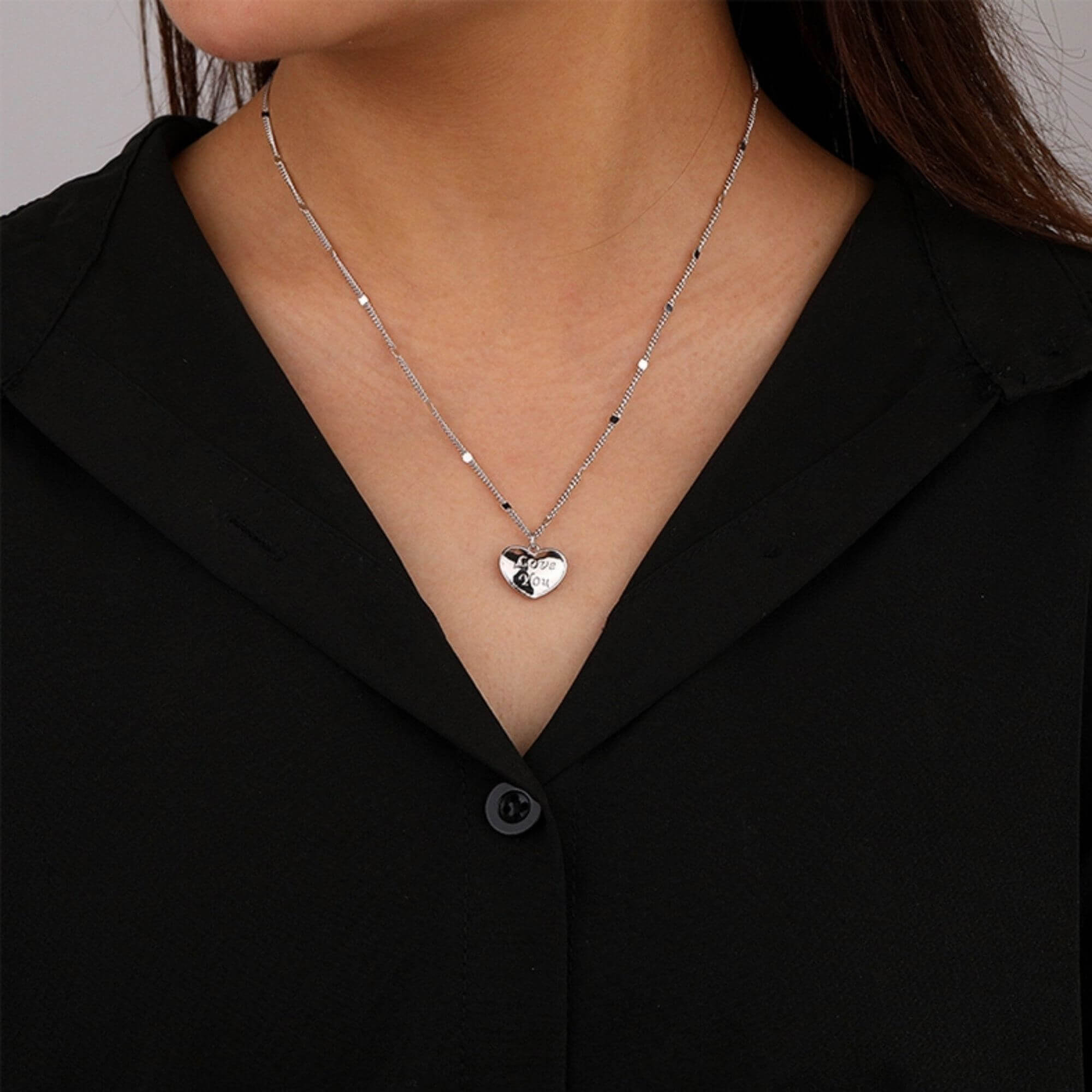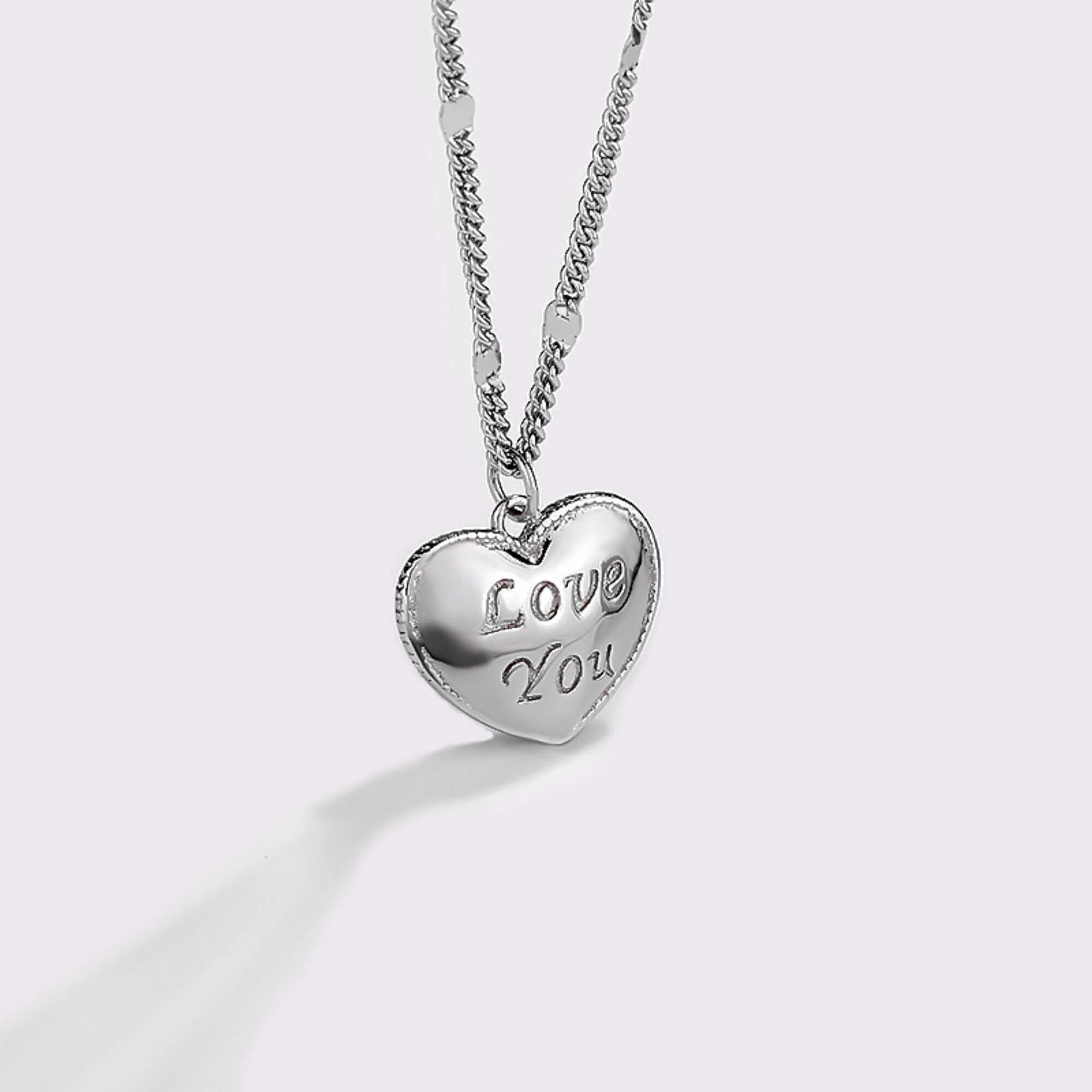 Toon je genegenheid op een subtiele maar diepgaande manier met deze sterlingzilveren ketting. Gecentreerd rond een charmante harthanger, subtiel gegraveerd met 'Love You', is het een eenvoudige maar krachtige uitdrukking van je gevoelens. Het intrigerende vlechtwerk voegt een extra laagje elegantie toe aan het stuk. Deze ketting is meer dan alleen een accessoire: hij is een stijlvolle herinnering aan jullie blijvende liefde, perfect voor het overbrengen van oprechte emoties met gratie en verfijning.