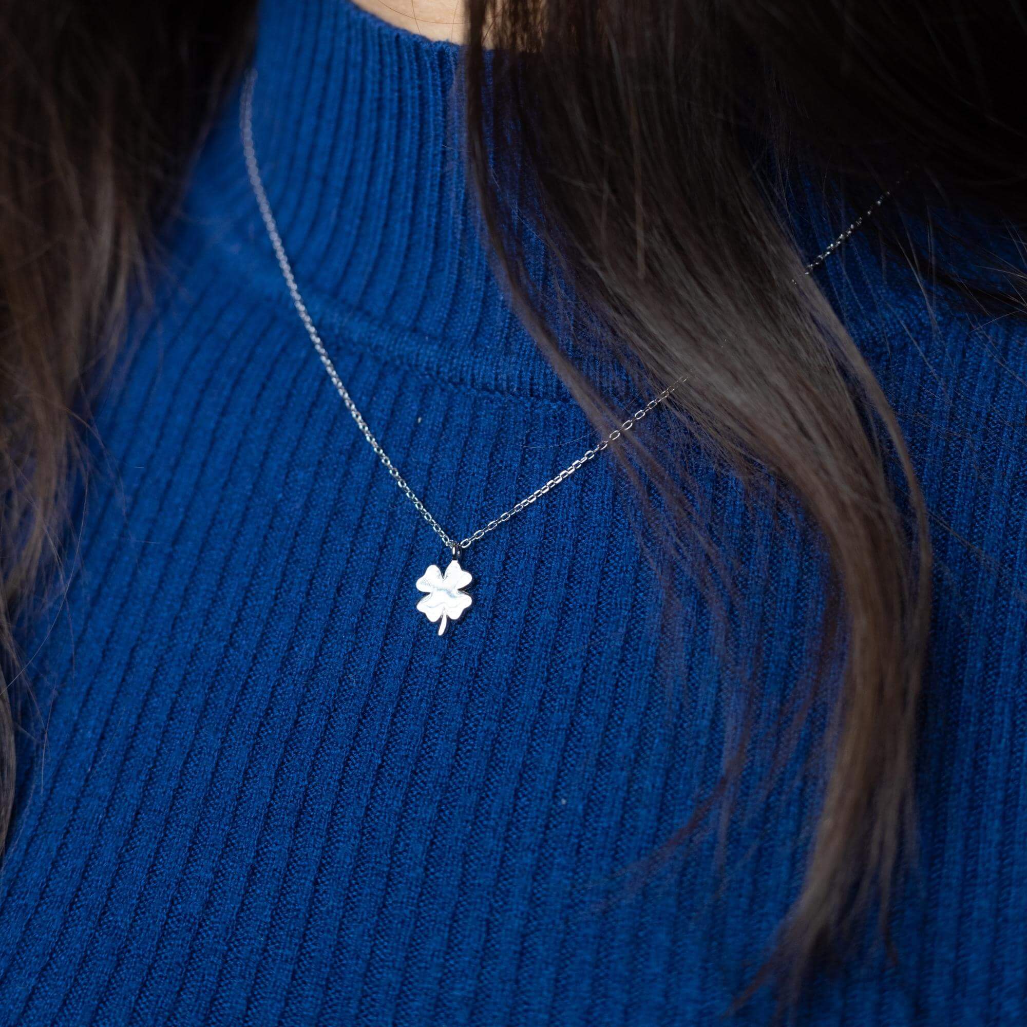 Deze delicate zilveren ketting heeft een klassieke ketting en een charmante hanger in de vorm van een klavertje vier, waarbij geluk en schoonheid samensmelten in je dagelijkse kleding. Het is een ideaal geschenk, of je nu jezelf trakteert of een dierbare, en voegt een vleugje charme en geluk toe aan elke outfit.