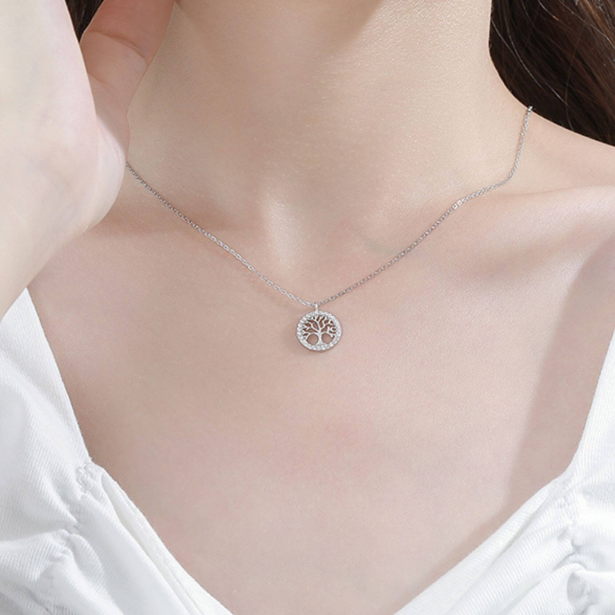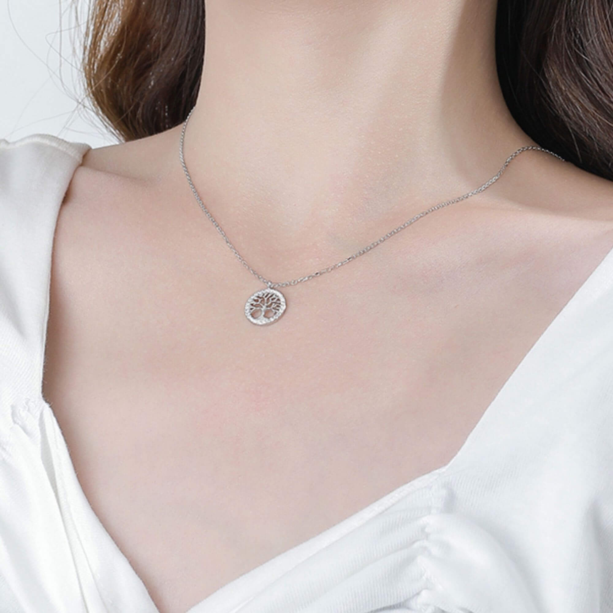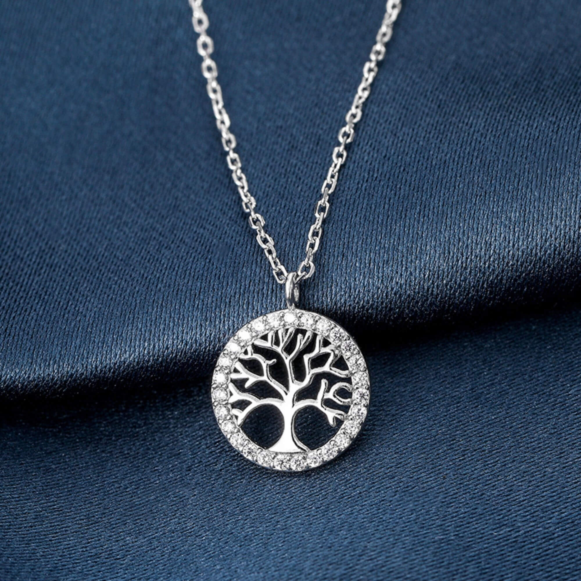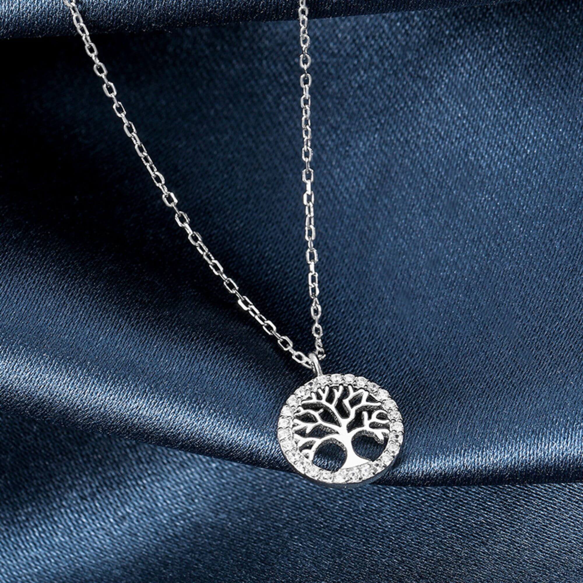 Verbind je met de diepe betekenis van de Boom des Levens via deze prachtige zilveren ketting. Deze ketting symboliseert de eeuwige levenscyclus en de verbinding tussen het aardse en goddelijke en is voorzien van een ingewikkelde boomhanger. De fijne takken en wortels vertegenwoordigen kracht en voeding, waardoor het een stuk is met een diepe betekenis en tijdloze schoonheid.
