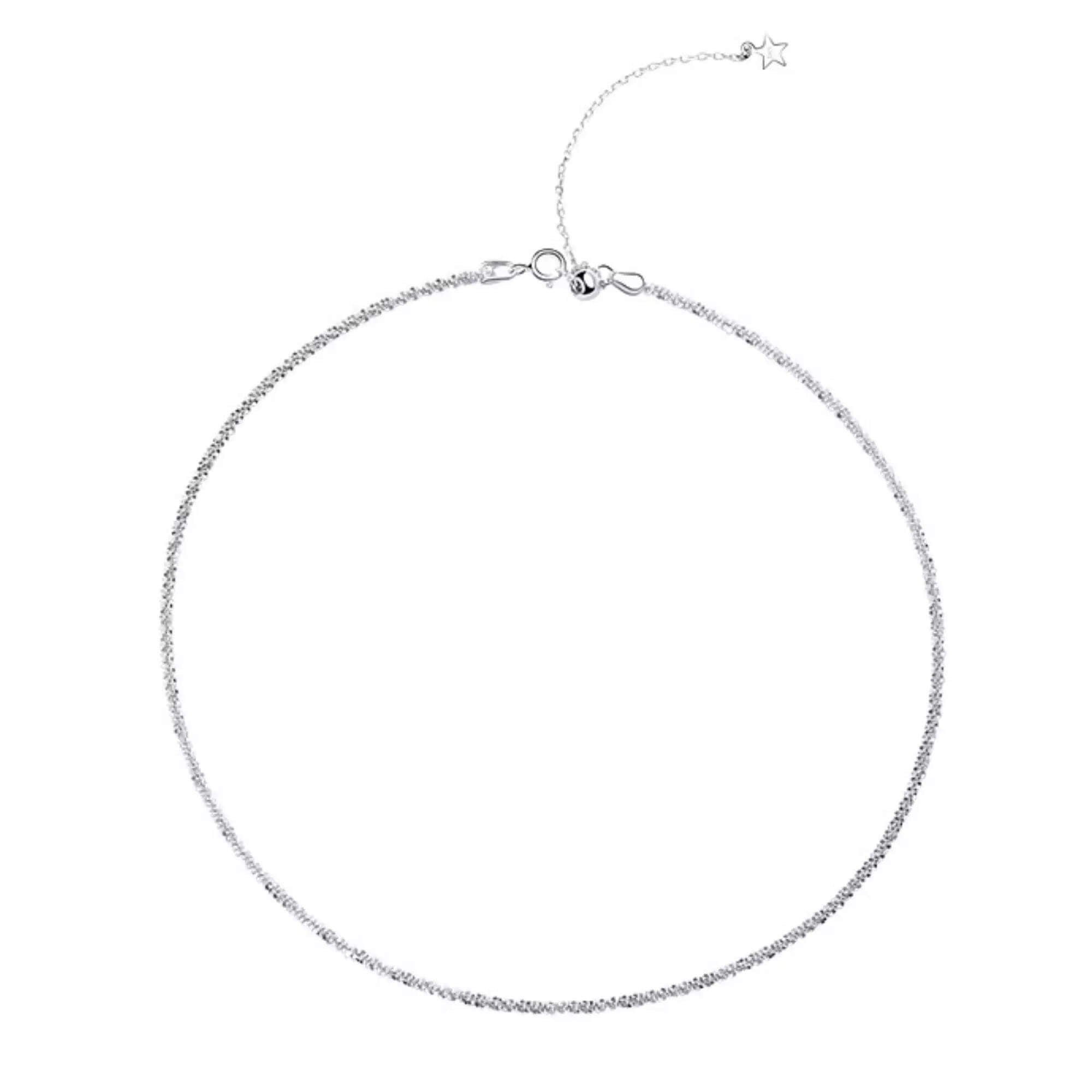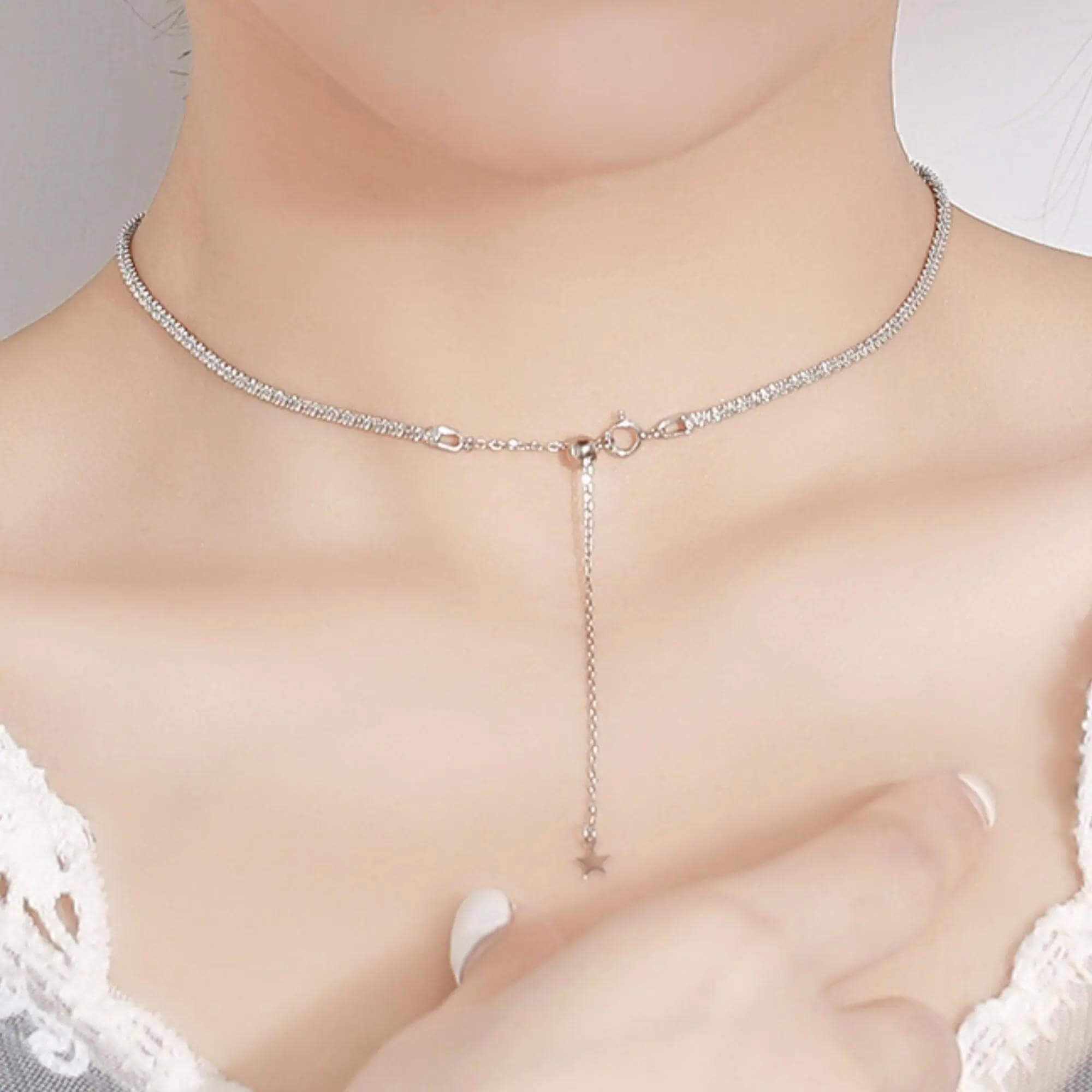 Trek de aandacht met deze oogverblindende zilveren choker. Het opvallende ontwerp, geaccentueerd door een hangend sterelement, geeft een hemels tintje aan je look. Ideaal voor iedereen die houdt van sprankelen en een opvallend fashionstatement wil maken.