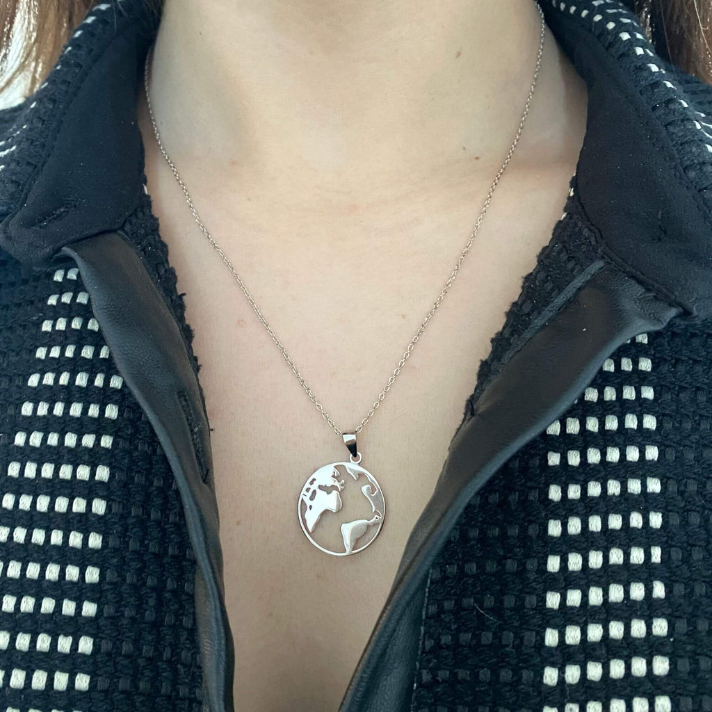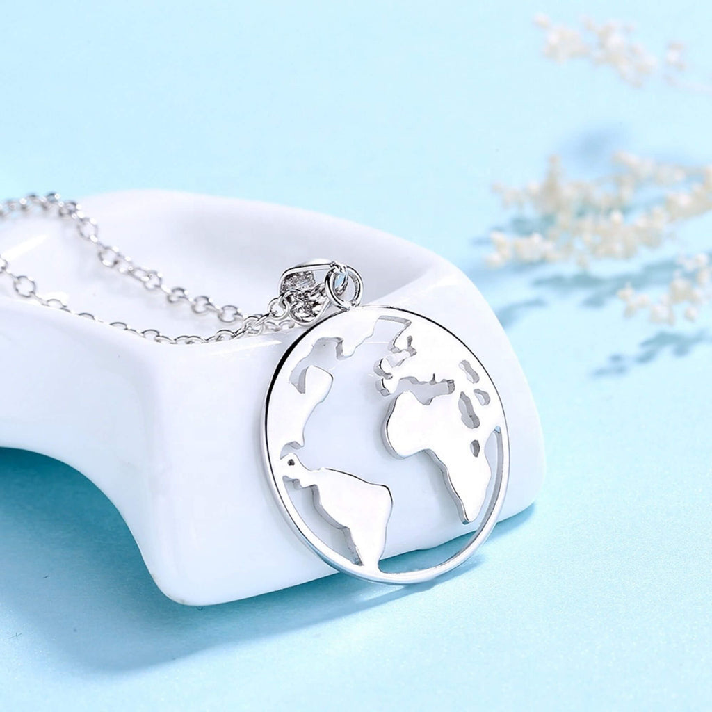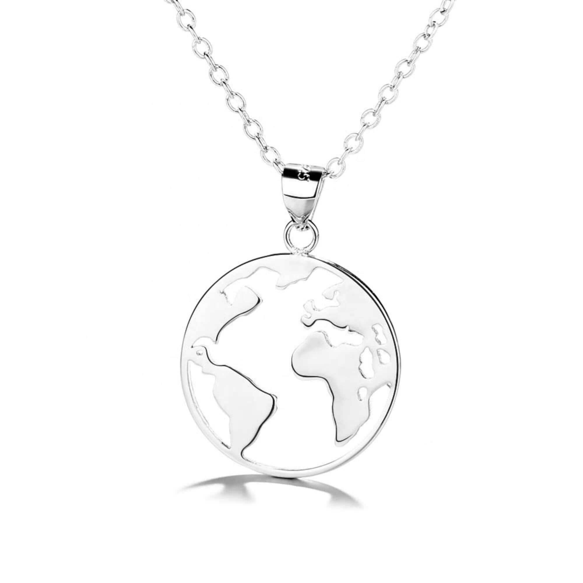 Deze sterlingzilveren ketting heeft een tijdloze klassieke ketting, elegant gecombineerd met een aardevormige hanger. Het eenvoudige maar verbluffende ontwerp maakt het tot een veelzijdig accessoire, geschikt voor elke gelegenheid.