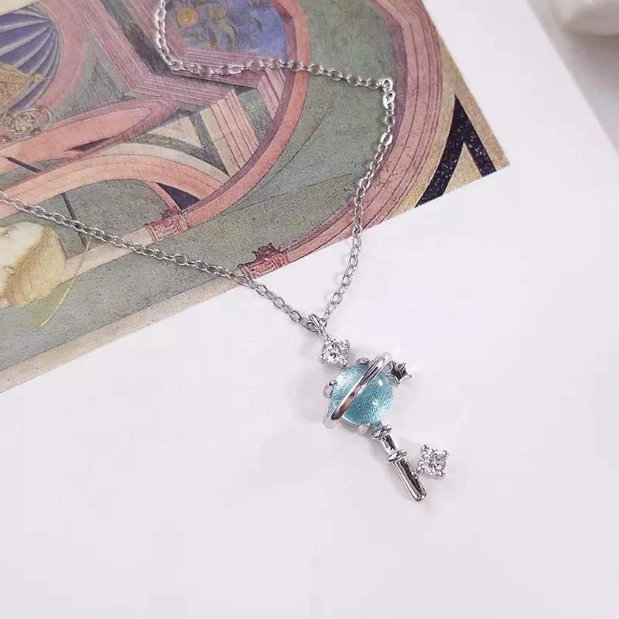 Deze zilveren sleutelketting, met zijn saffierblauwe kristal, symboliseert vertrouwen, loyaliteit en oprechtheid. Het ontwerp, met een zilveren baan rond het kristal, is een uitnodiging om kwetsbaarheid te omarmen en te delen met naaste metgezellen, waardoor het een statement wordt van diepe waarden en verbindingen.
