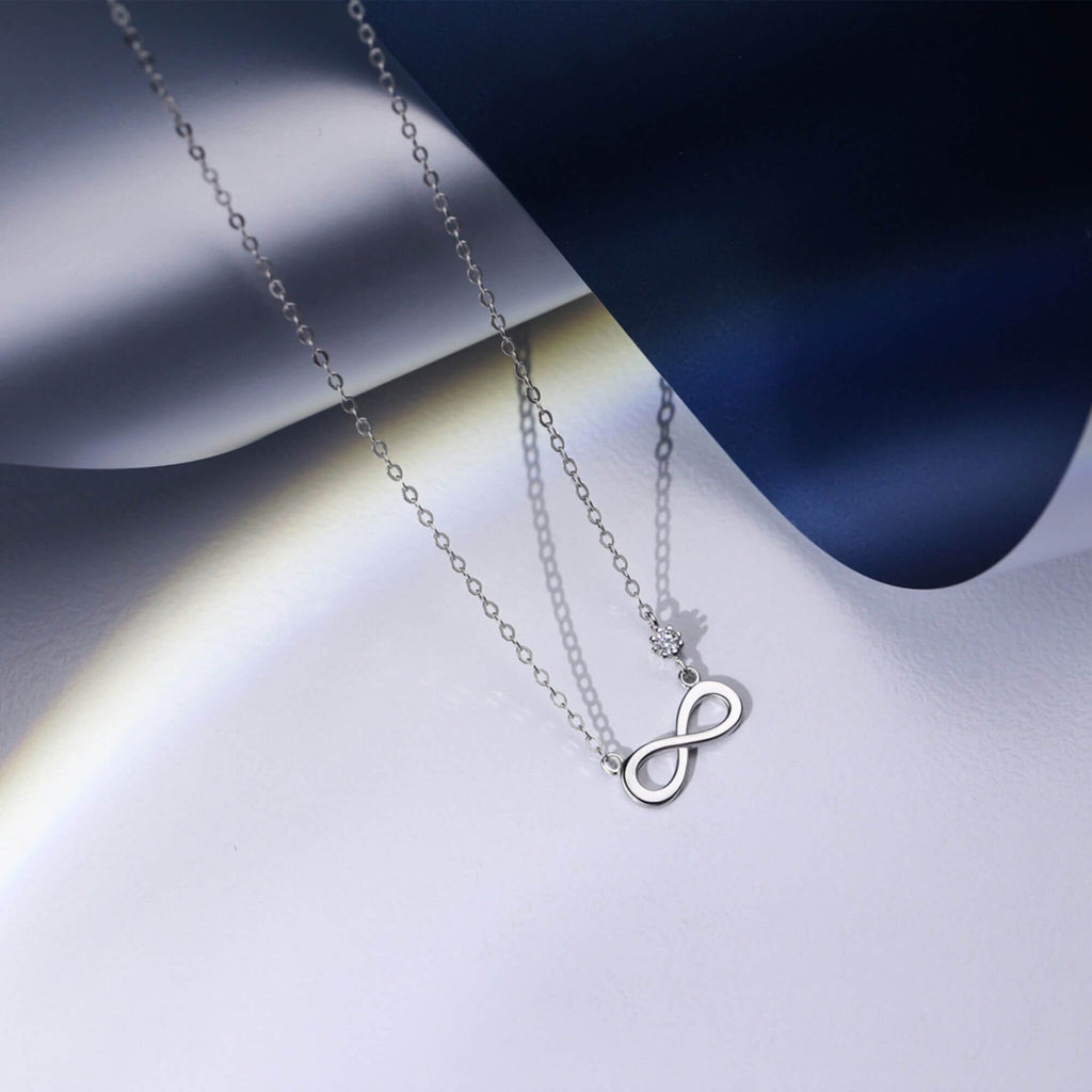 Centraal in onze overtuiging staat het idee dat sieraden meer zijn dan louter versiering; ze dragen diepgaande symboliek met zich mee. In het hart van deze sterling zilveren ketting vind je een van de meest bekende en romantische symbolen - het oneindigheidsteken. Het biedt een betekenisvolle manier om je diepste emoties uit te drukken, waardoor het een gekoesterd aandenken wordt, perfect om een speciale band te vieren.