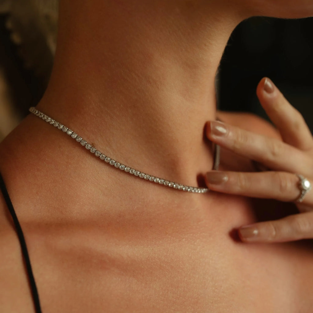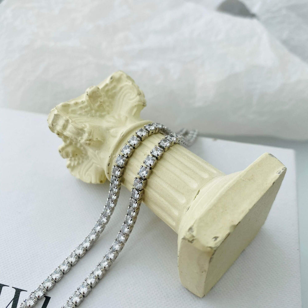 Geniet van de glamour van speciale evenementen met de 'Uniqueness'-ketting, een oogverblindende reeks zirkoniastenen. Dit boeiende stuk is ontworpen om de aandacht te trekken en onvergetelijke momenten te creëren. Hoewel het geen alledaags accessoire is, voelt het elke keer dat je het draagt als een speciale gelegenheid, waardoor je stijl naar een hoger niveau wordt getild en blijvende herinneringen ontstaan.