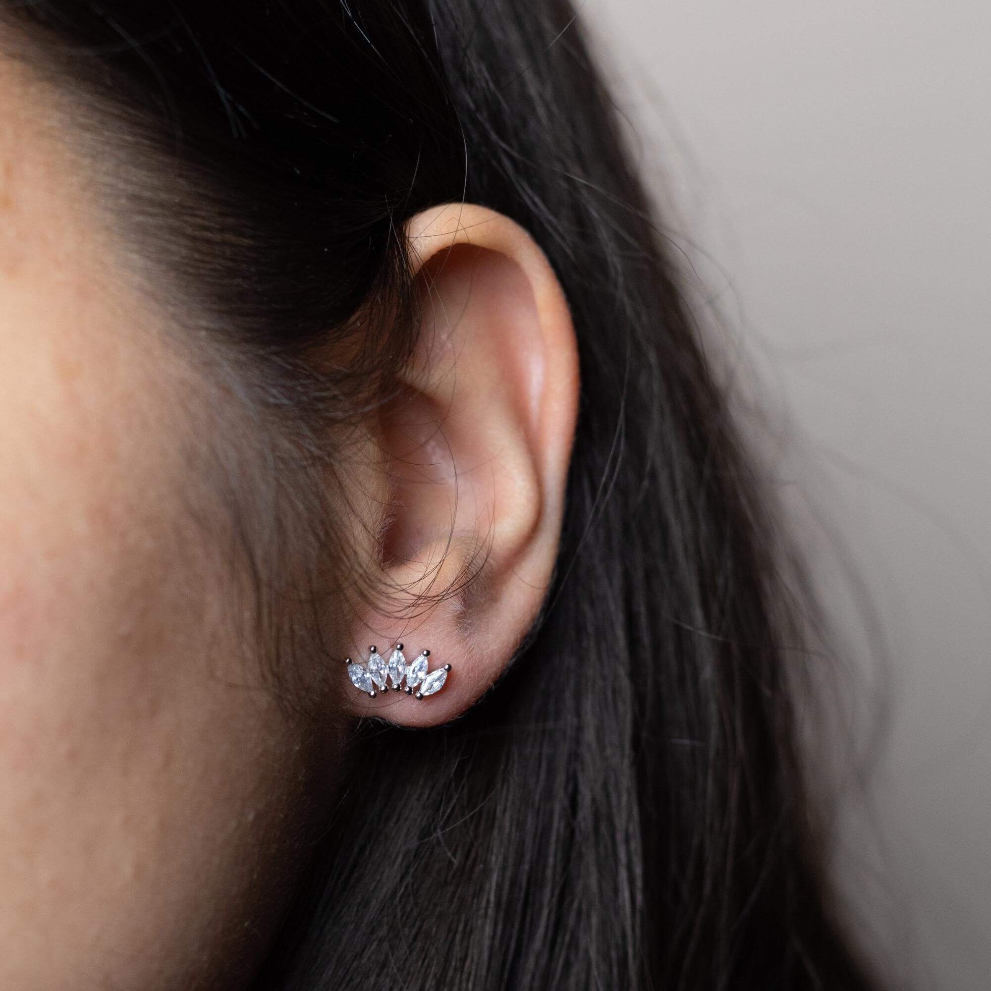 Deze prachtige zilveren oorbellen, vervaardigd in de vorm van een kroon, stralen een onweerstaanbare glans uit die zeker de aandacht zal trekken. Ze bieden de perfecte balans tussen een statement maken en comfortabel zijn om te dragen. Omarm een vleugje royalty met dit elegante accessoire, perfect om een koninklijke flair aan uw stijl toe te voegen.