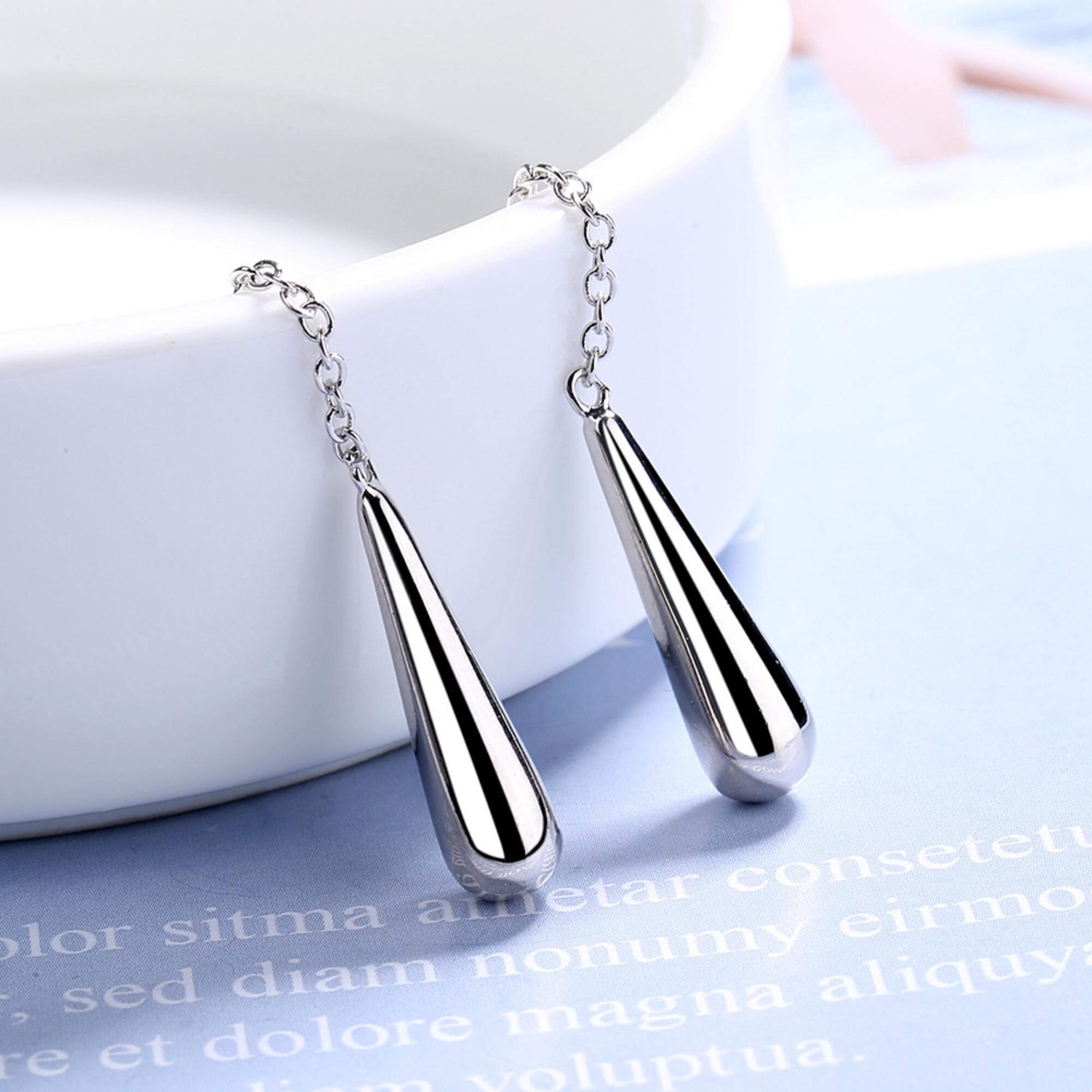Ervaar de allure van eenvoud met onze unieke oorbellen, met een slanke ketting die door een push-back sluiting is geregen en langwerpige zilveren elementen die 6 cm onder het oor bungelen. Dit minimalistische ontwerp straalt een subtiele elegantie uit die boeit. Het samenspel van de zilveren ketting en langwerpige stukken creëert een dynamisch effect en voegt een vleugje verfijning toe dat gracieus met elke stap meebeweegt.