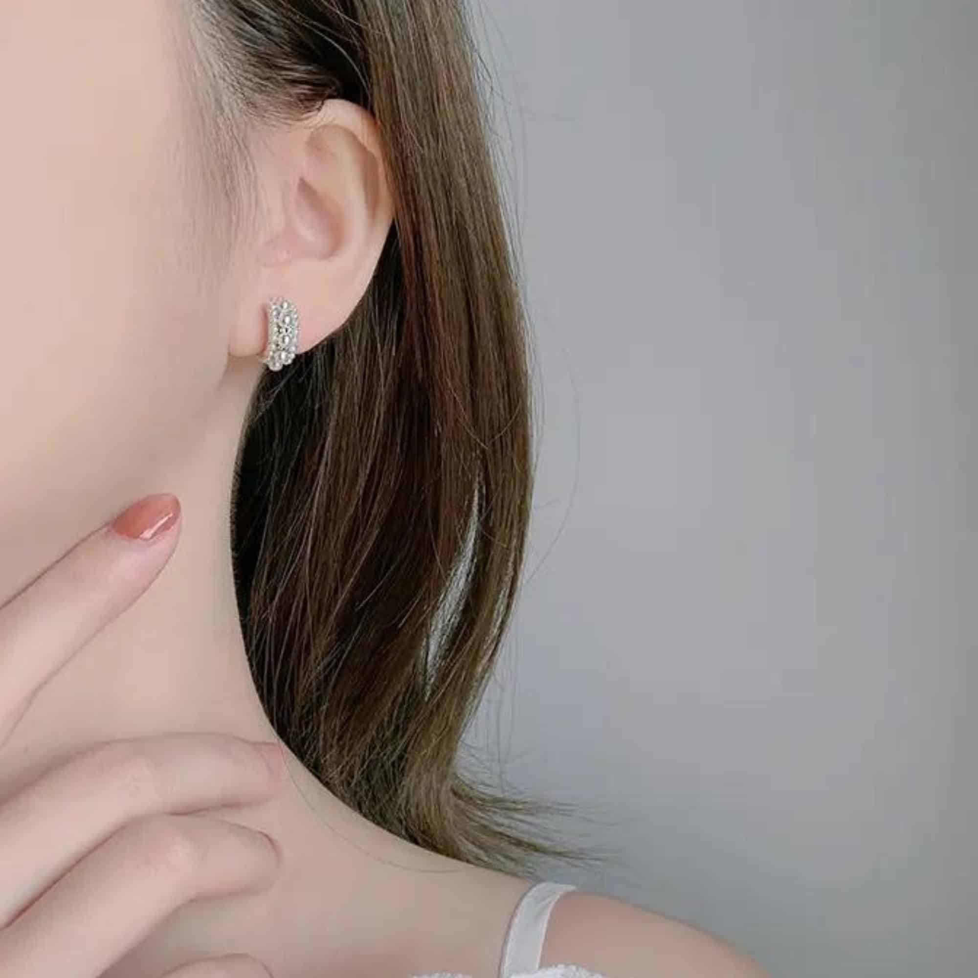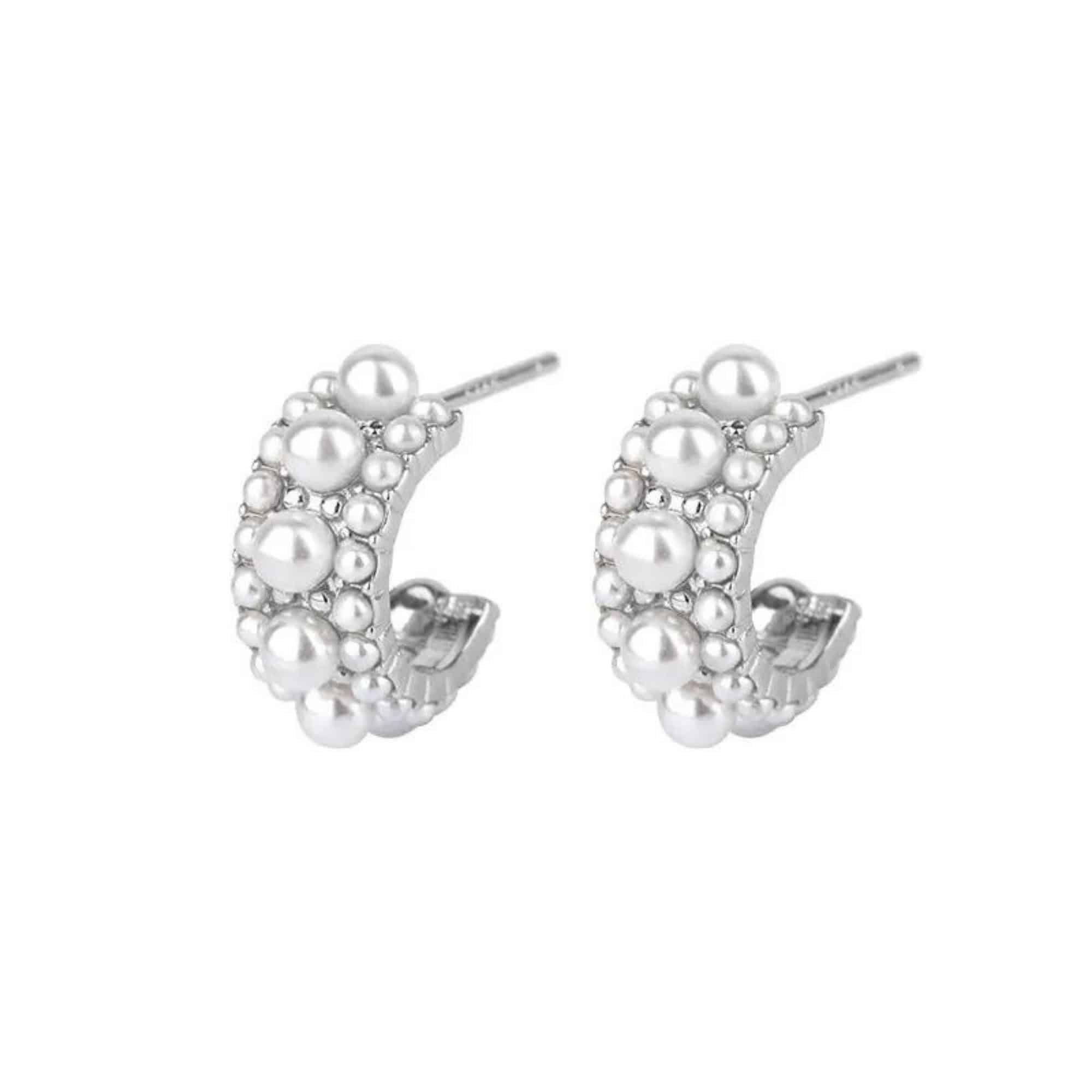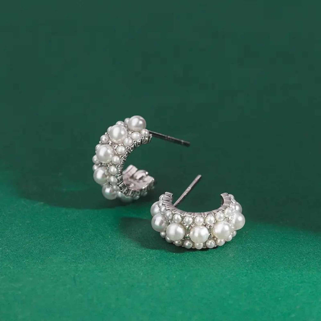Verbeter uw gratie met deze uitzonderlijke zilveren halve oorringen, elegant versierd met prachtige parels. Hoewel parels doorgaans worden geassocieerd met formele gelegenheden, maakt de innovatieve pushback-veilige sluiting deze sierlijke oorbellen perfect voor dagelijks gebruik. Geniet van de harmonieuze mix van comfort en blijvende elegantie in één enkel sieraad!