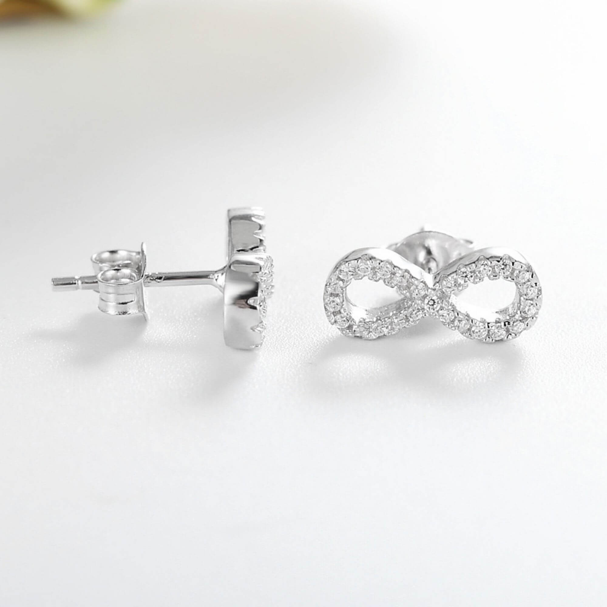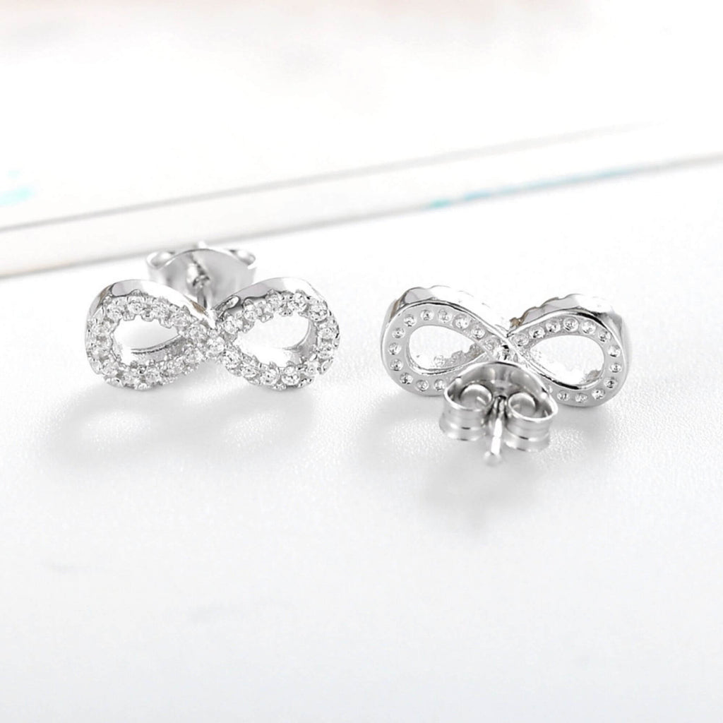 Deze romantische zilveren oorbellen belichamen op prachtige wijze het teken van oneindigheid, waardoor ze een uitzonderlijk model zijn. Naast hun vermogen om tederheid en glans toe te voegen aan elke look, symboliseren ze de blijvende schoonheid van de eeuwigheid.