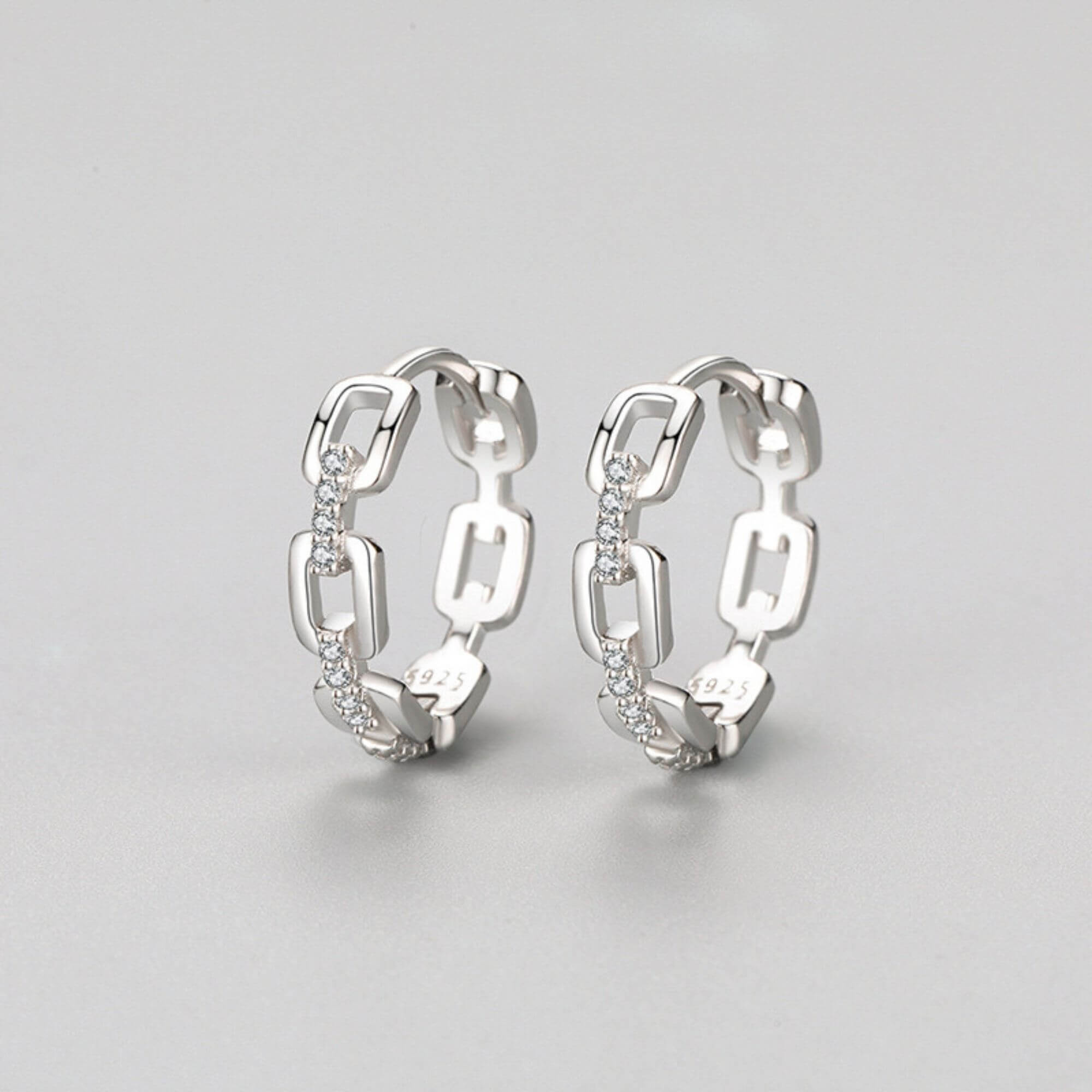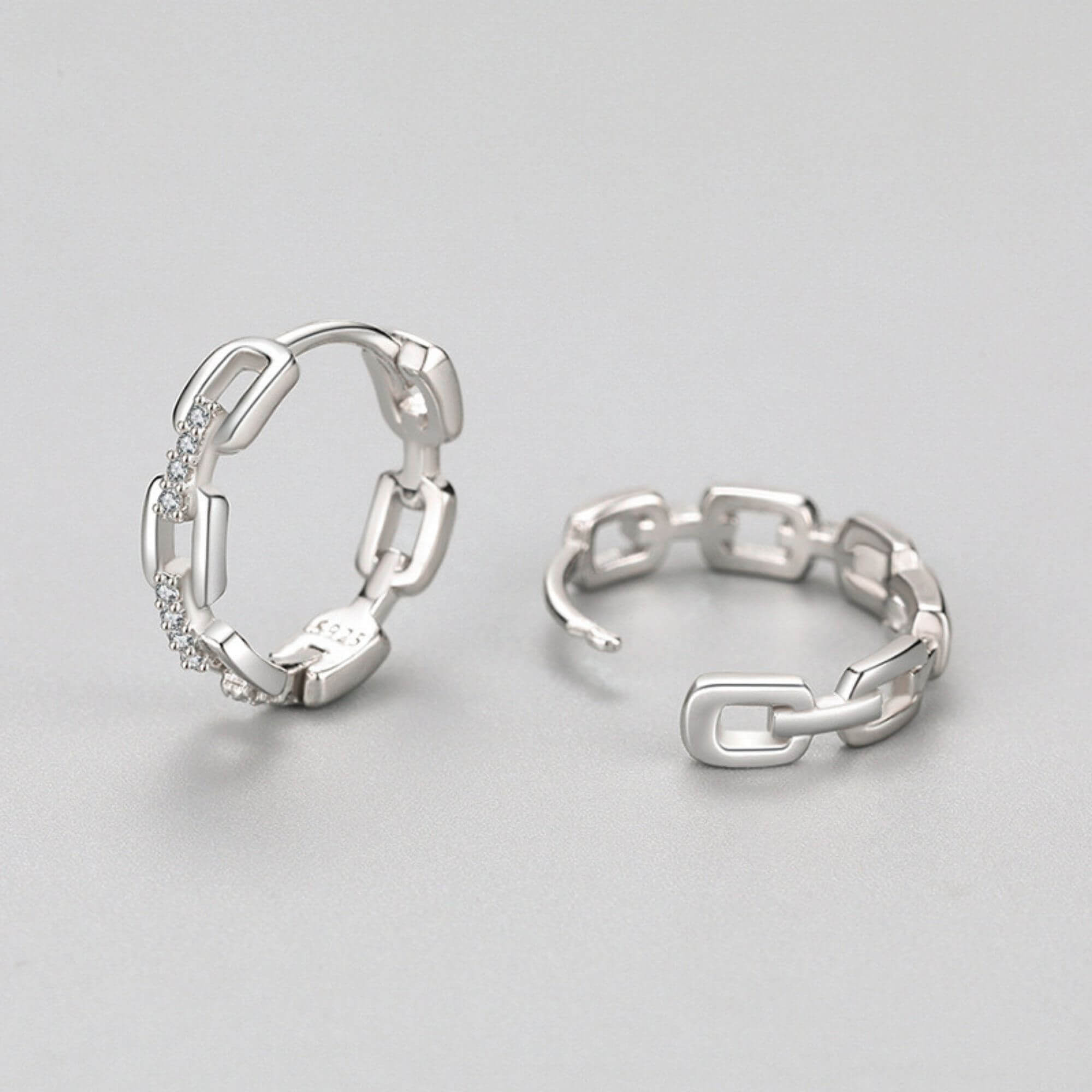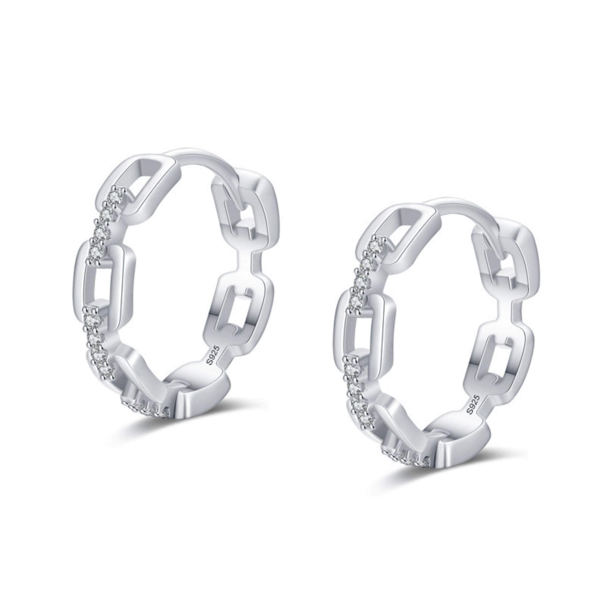 Ontdek de allure van deze fijne zilveren knuffelhoepels met een opvallend, op kettingen geïnspireerd ontwerp. Versierd met complementaire zirkoniastenen, voegen ze de perfecte finishing touch toe aan dit unieke sieraad. Dankzij hun speelse en veelzijdige ontwerp kun je vol vertrouwen zowel elegante als gedurfde stijlen omarmen.