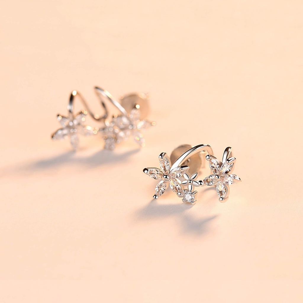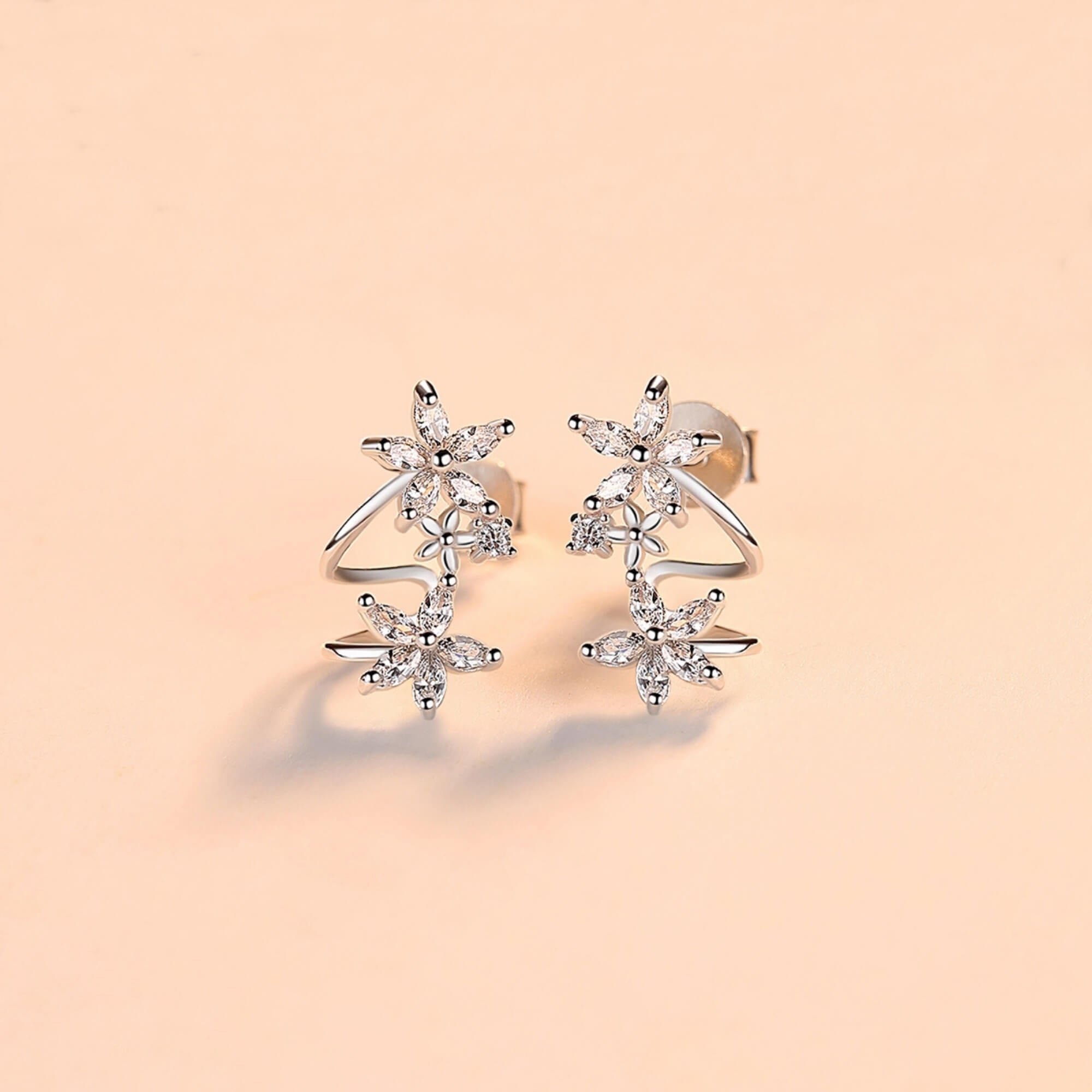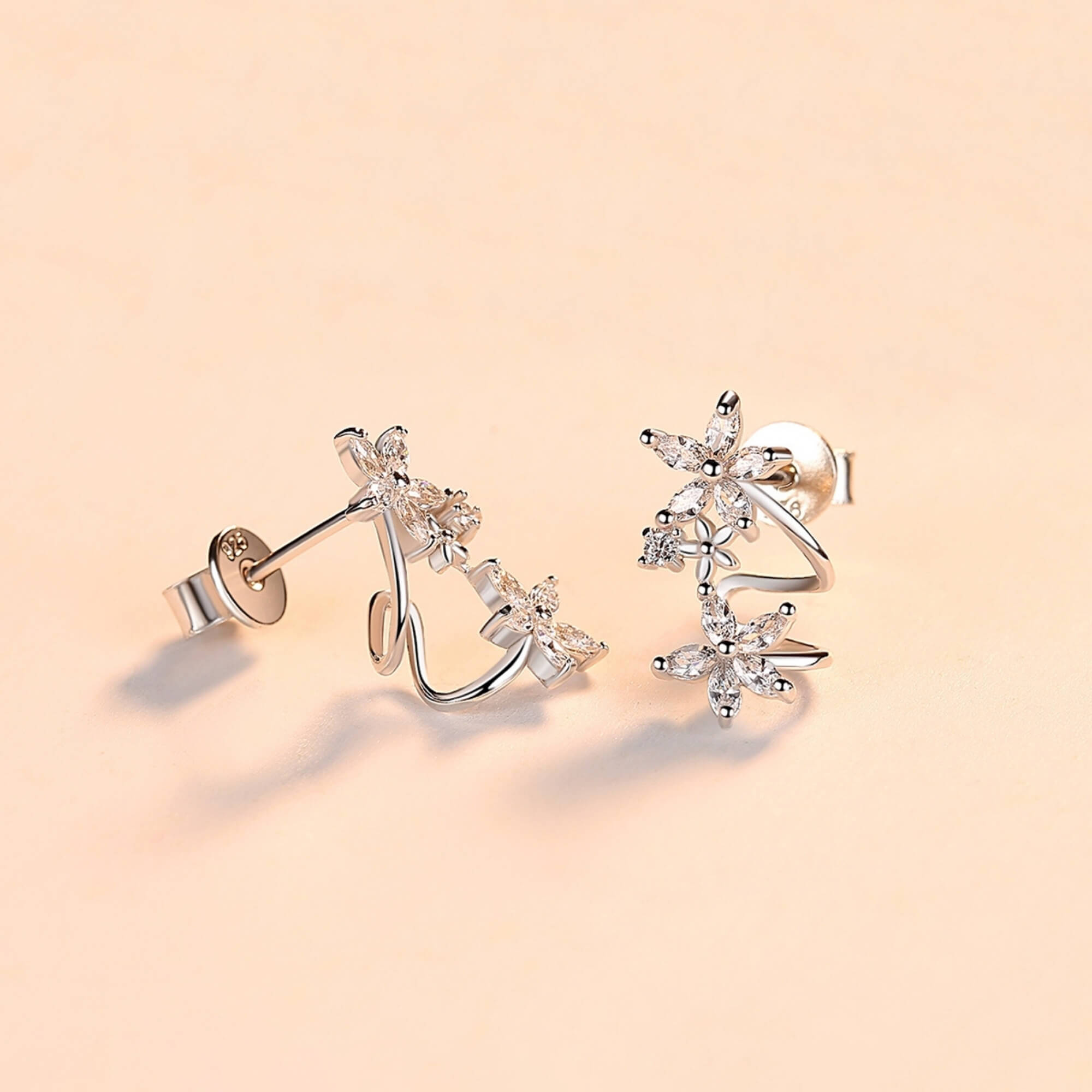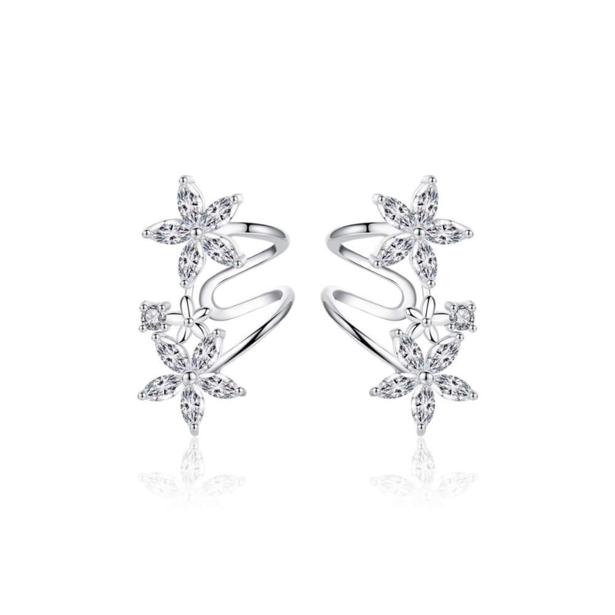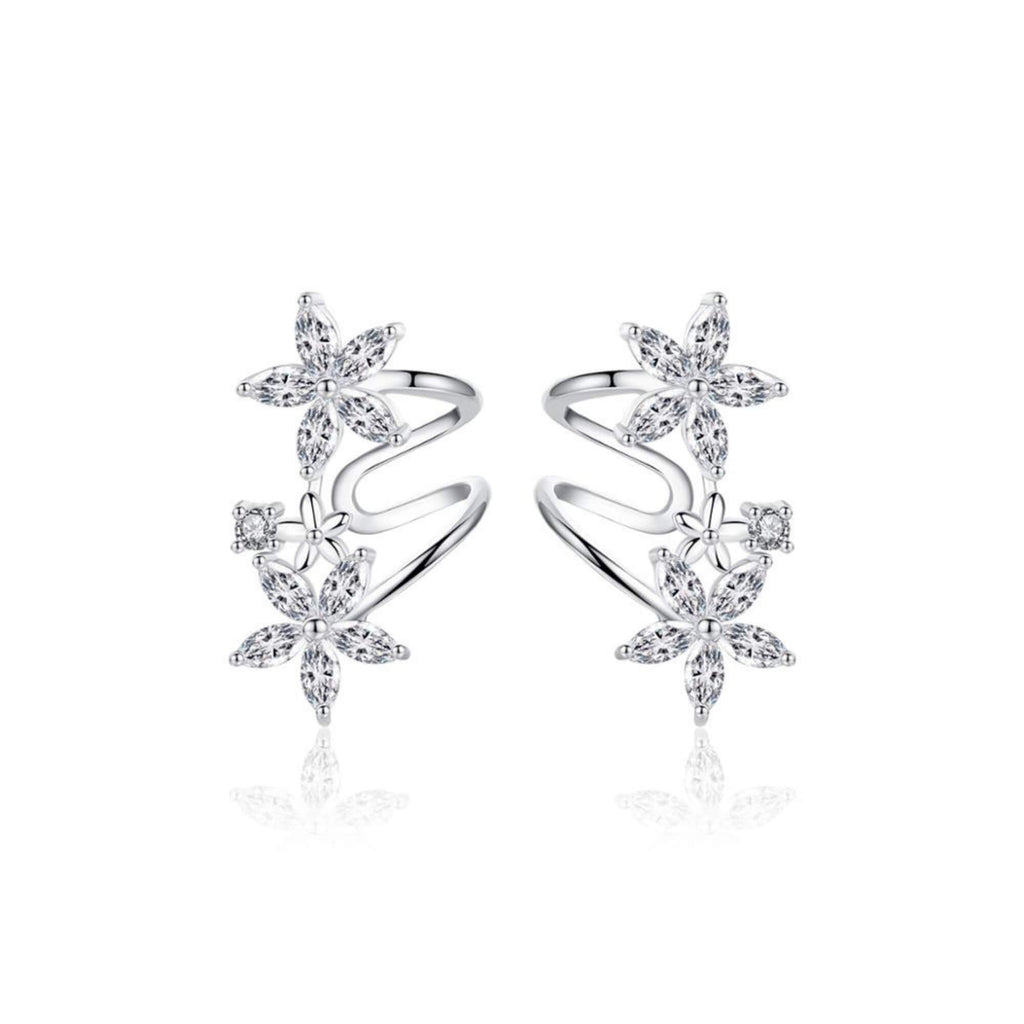 Exquise zilveren oorbellen met een bloemmotief met een gedraaid ontwerp en glinsterende edelstenen die een boeiende en unieke uitstraling creëren. Het ingewikkelde vakmanschap en de aandacht voor detail maken deze oorbellen echt speciaal. Of je je nu verkleedt voor een speciale gelegenheid of een vleugje elegantie toevoegt aan je dagelijkse look, deze oorbellen zijn het perfecte accessoire om je look op te frissen en een statement te maken.