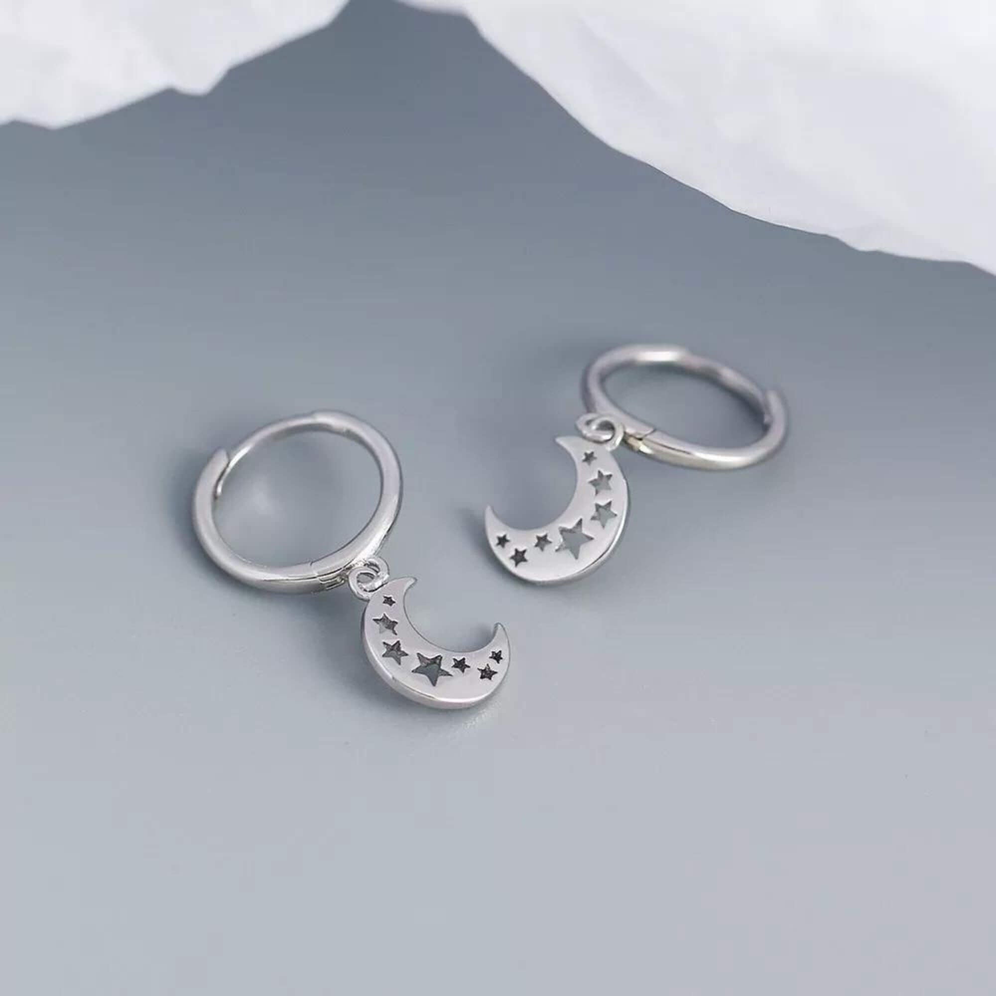 Ontdek de elegantie van onze zilveren oorbellen, geïnspireerd door de tijdloze schoonheid van de maan, de hemelse metgezel van de aarde. Hun ontwerp is zowel eenvoudig als gedetailleerd en weerspiegelt de mystiek en allure van de maan. Deze oorbellen zijn zorgvuldig vervaardigd om elk subtiel detail te benadrukken en vormen een bewijs van voortreffelijk sieradenontwerp. Draag ze om de betovering van de maan te omarmen en een vleugje hemelse elegantie toe te voegen aan je stijl.