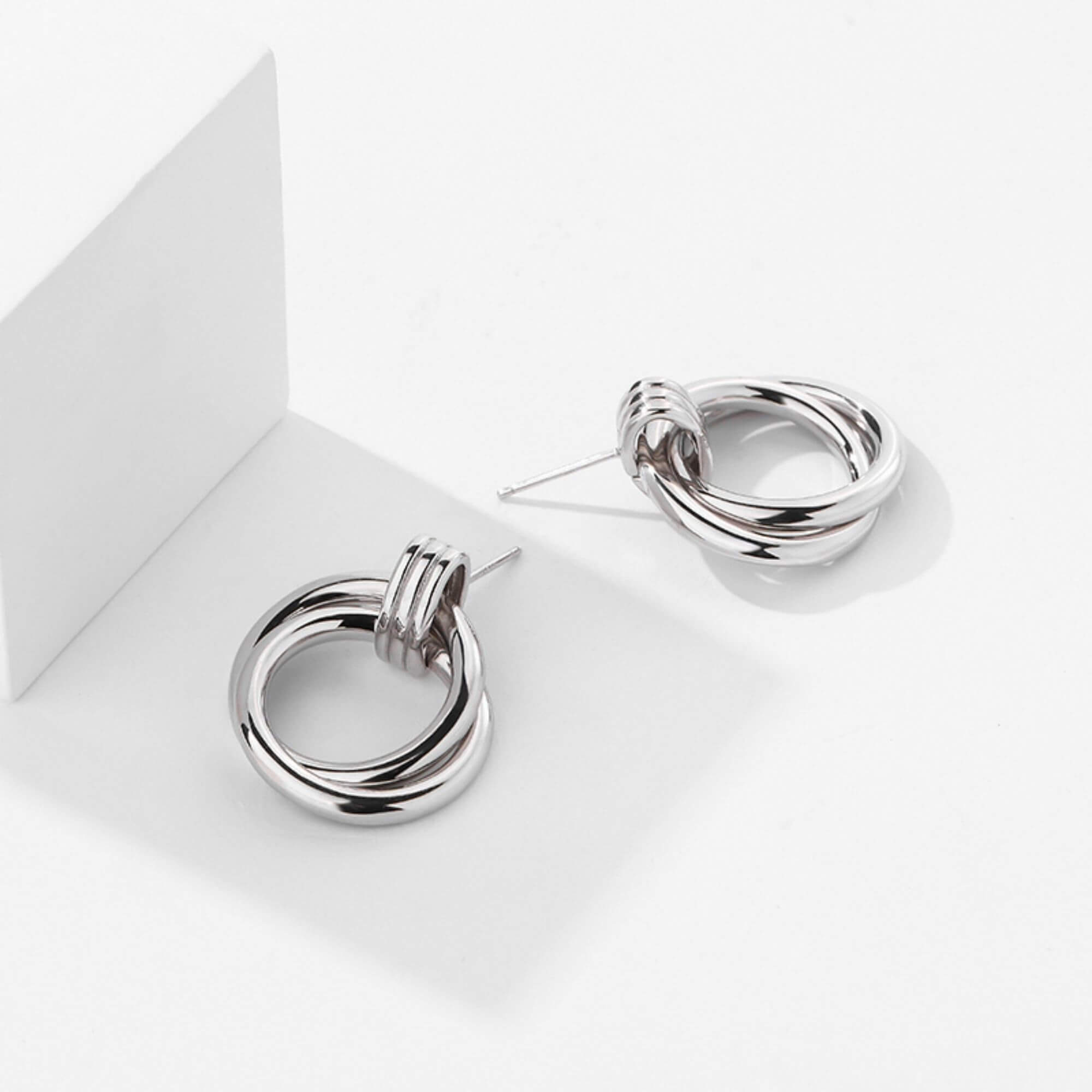 Maak een onverschrokken statement met deze oversized zilveren oorringen, met een complex verweven ontwerp. Hun opvallende minimalistische esthetiek onderscheidt ze van het gewone. Deze oorringen stralen zelfvertrouwen uit en zijn de beste keuze voor gedurfde fashionista's die waarde hechten aan aparte en chique versieringen.