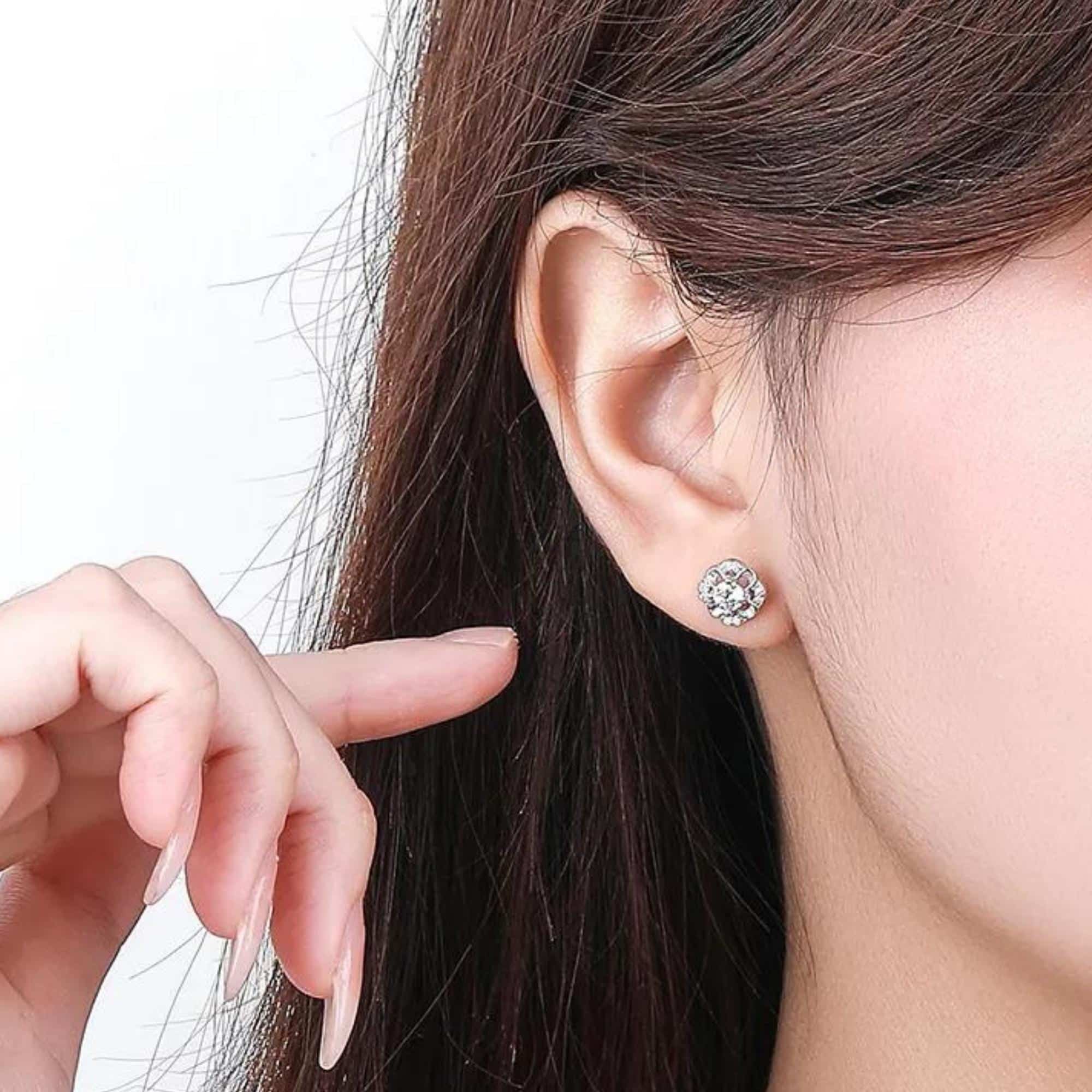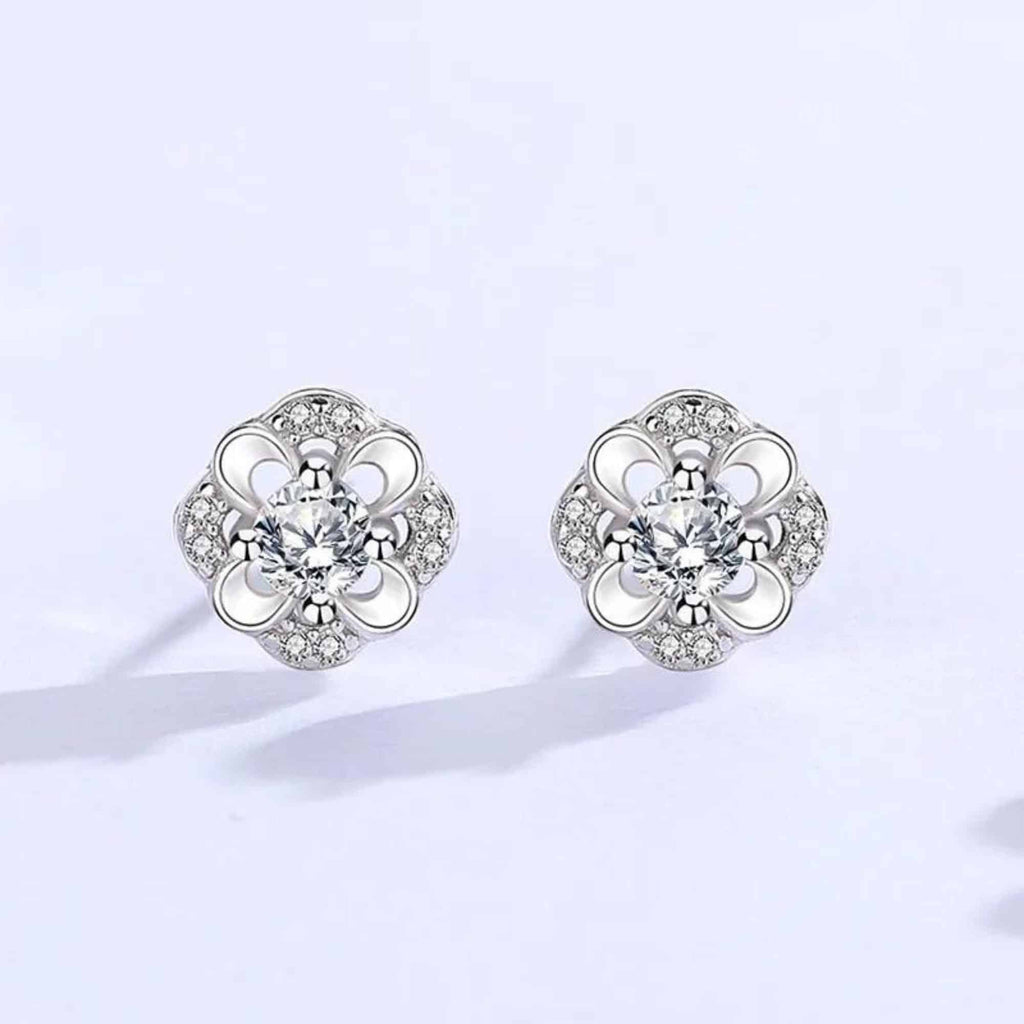 Verhoog je elegantie met deze prachtige zilveren oorbellen met zirkonia's in de vorm van een prachtige bloem. Het stud-ontwerp laat niet alleen hun verbluffende schoonheid zien, maar biedt ook een comfortabele pushback-sluiting, waardoor ze uitzonderlijk comfortabel zijn om te dragen. Laat deze onberispelijke oorbellen je stijl voorzien van sfeer en opwindende emoties, waardoor ze de perfecte aanvulling zijn op je sieradencollectie.