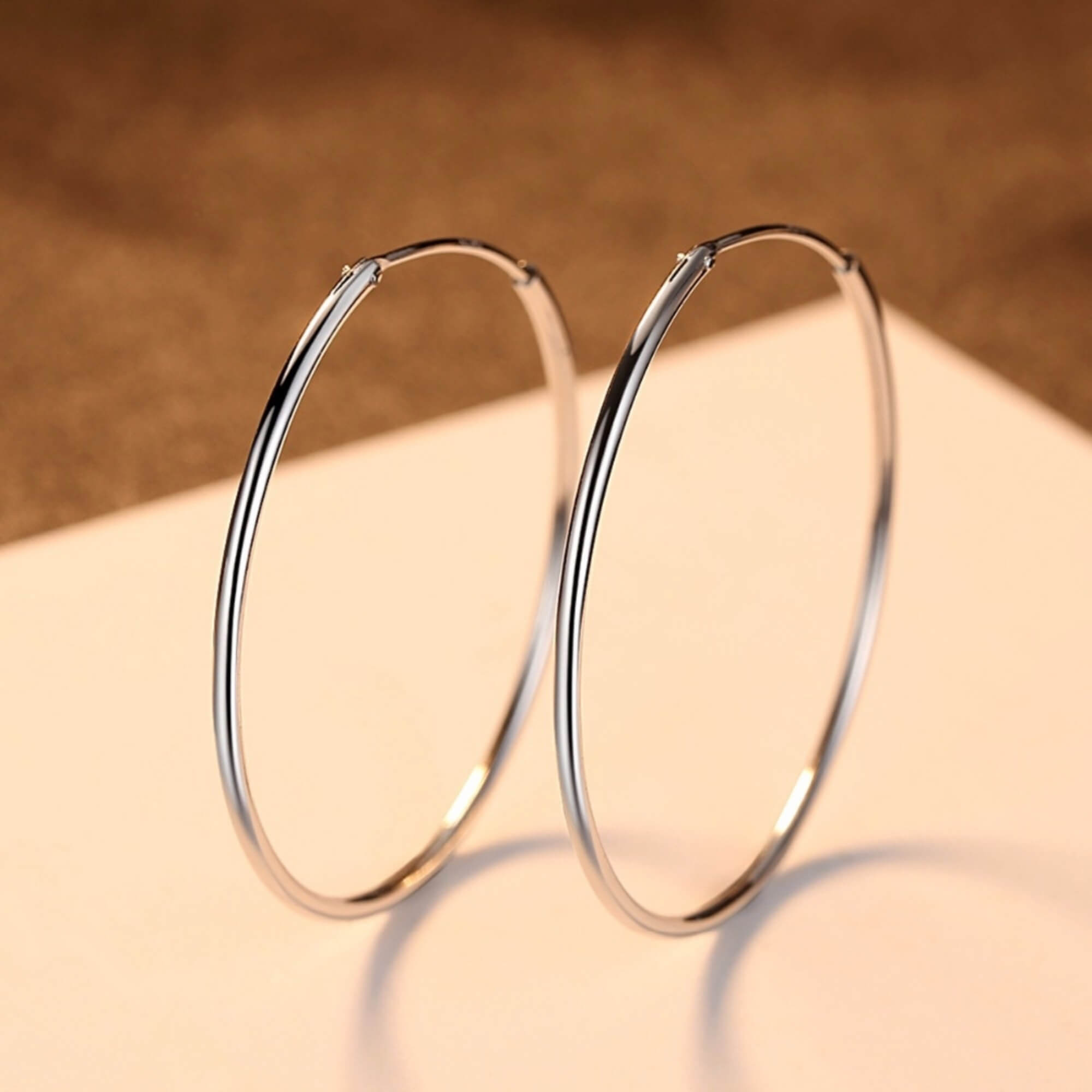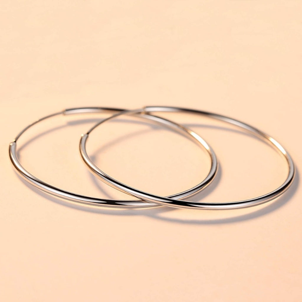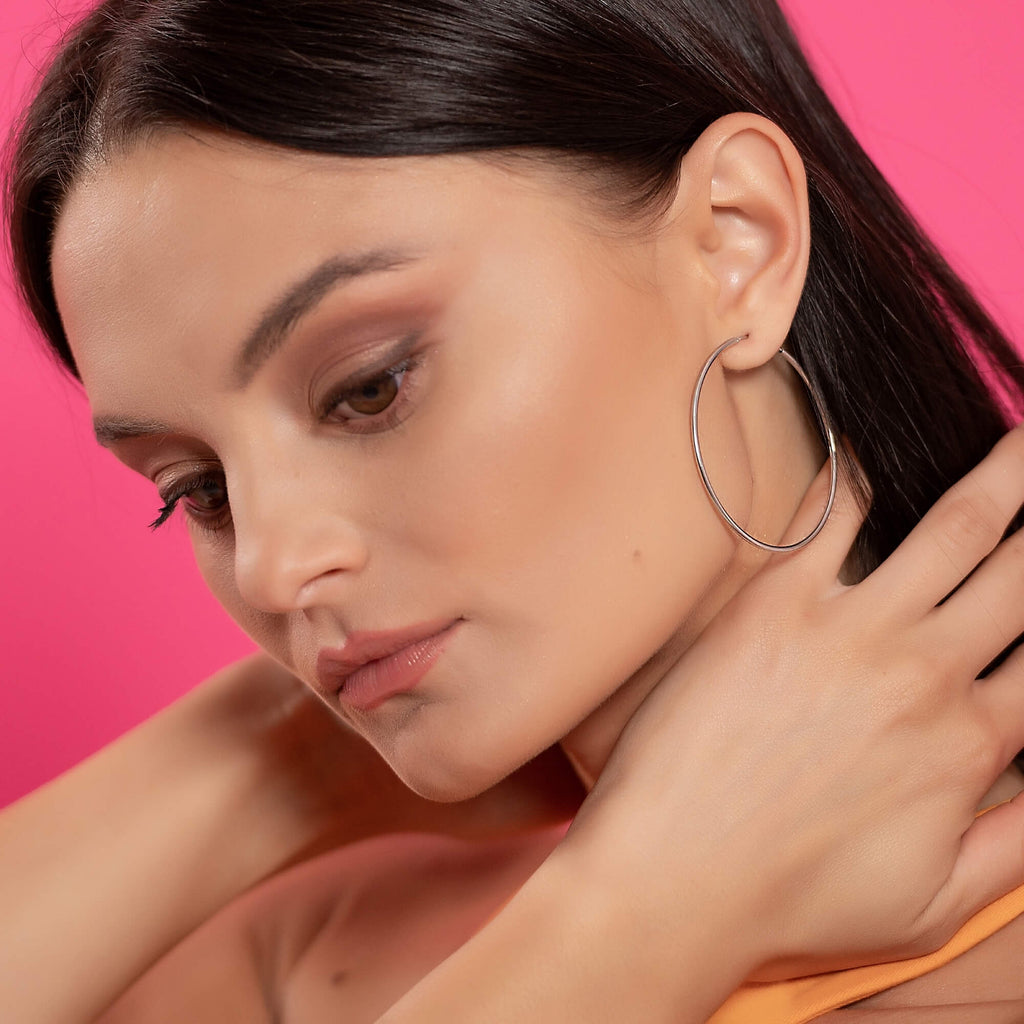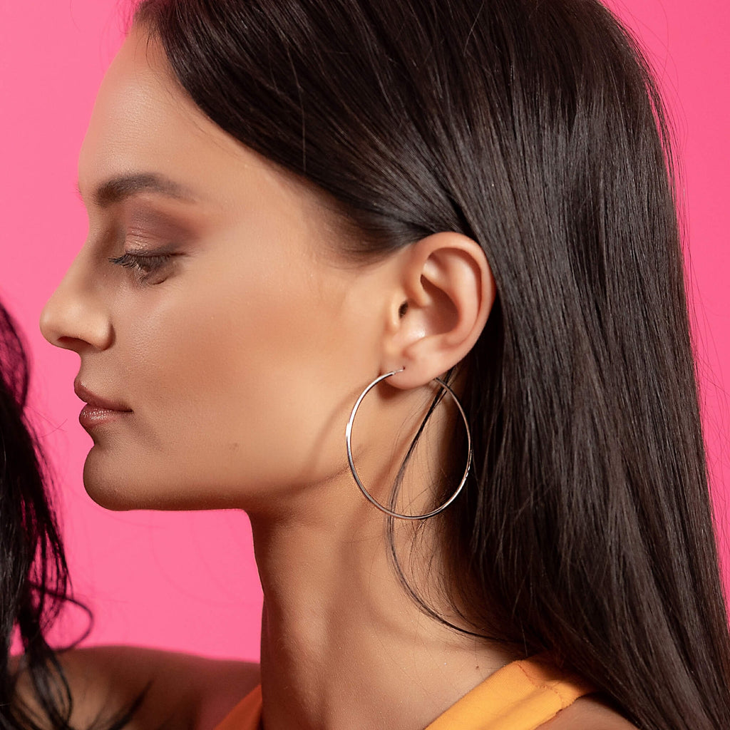 Verrijk je collectie met deze tijdloze zilveren oorringen. Met een diameter van 5 centimeter stralen ze klassieke elegantie en stijl uit, terwijl ze door hun strakke en minimalistische ontwerp veelzijdig en geschikt zijn voor elke gelegenheid.
