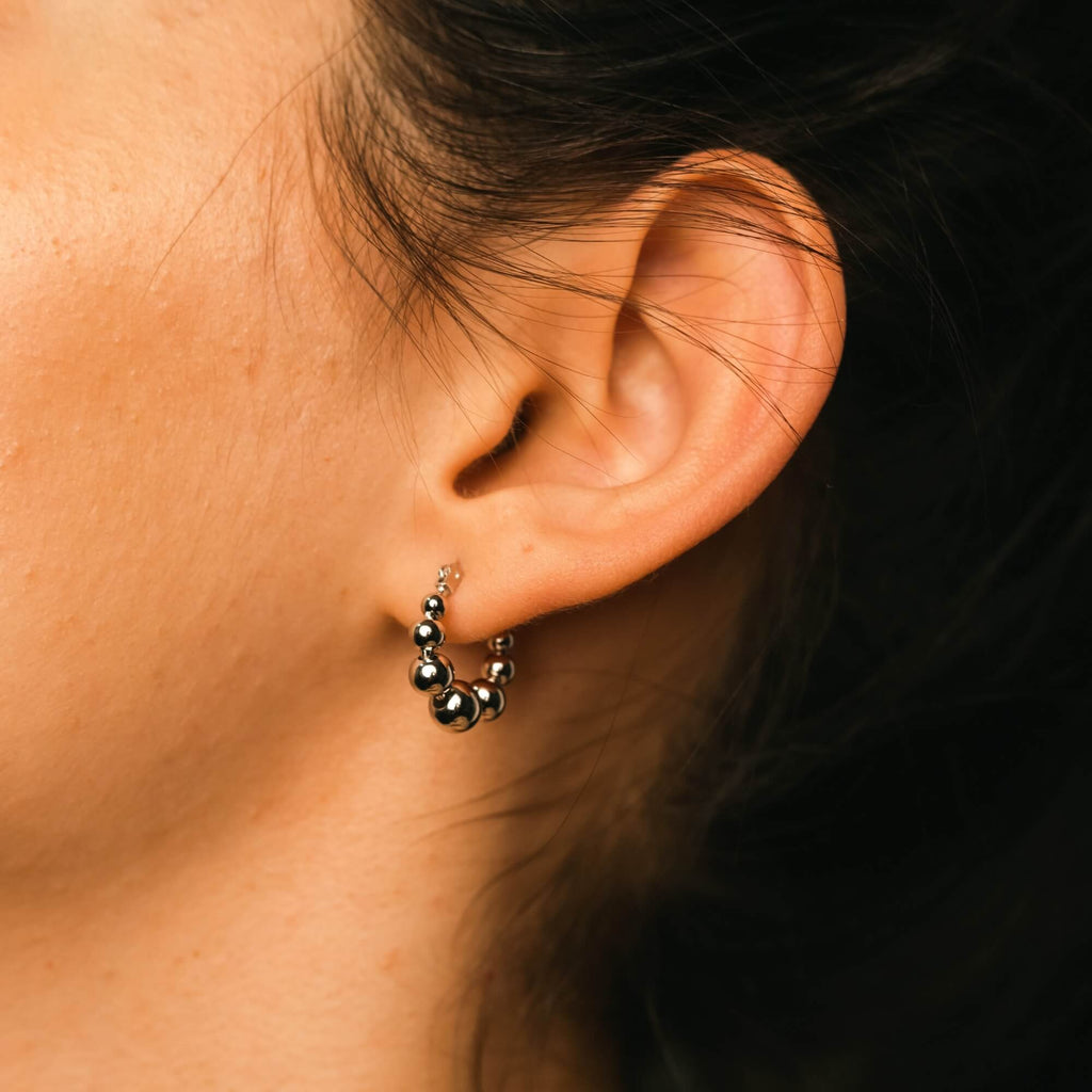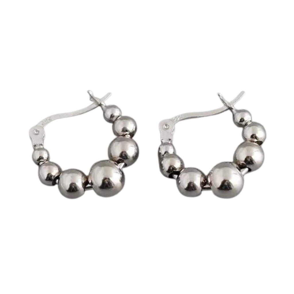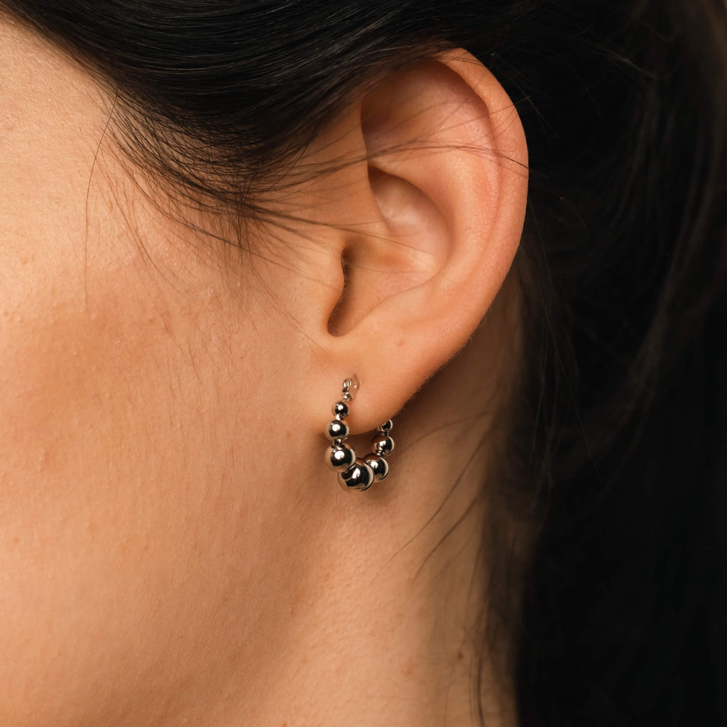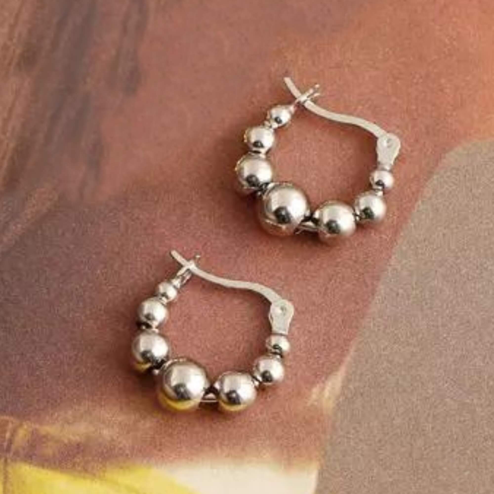 Voorstelling van onze prachtige zilveren oorbellen, elk versierd met zeven kralen in een harmonieus, symmetrisch ontwerp. Deze oorbellen zijn een waar eerbetoon aan balans en elegantie, gemaakt voor de vrouw met een verfijnde smaak en waardering voor sierlijke esthetiek. Terwijl je beweegt, laat je de perfect uitgelijnde opstelling van kralen elegant zwaaien en de aandacht en bewondering trekken. Voeg een vleugje artistieke verfijning toe aan je stijl met dit prachtig ontworpen paar, een bewijs van elegantie in eenvoud.