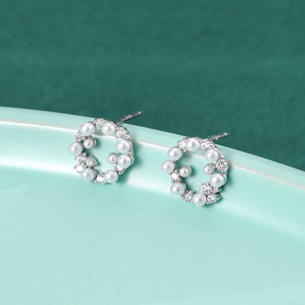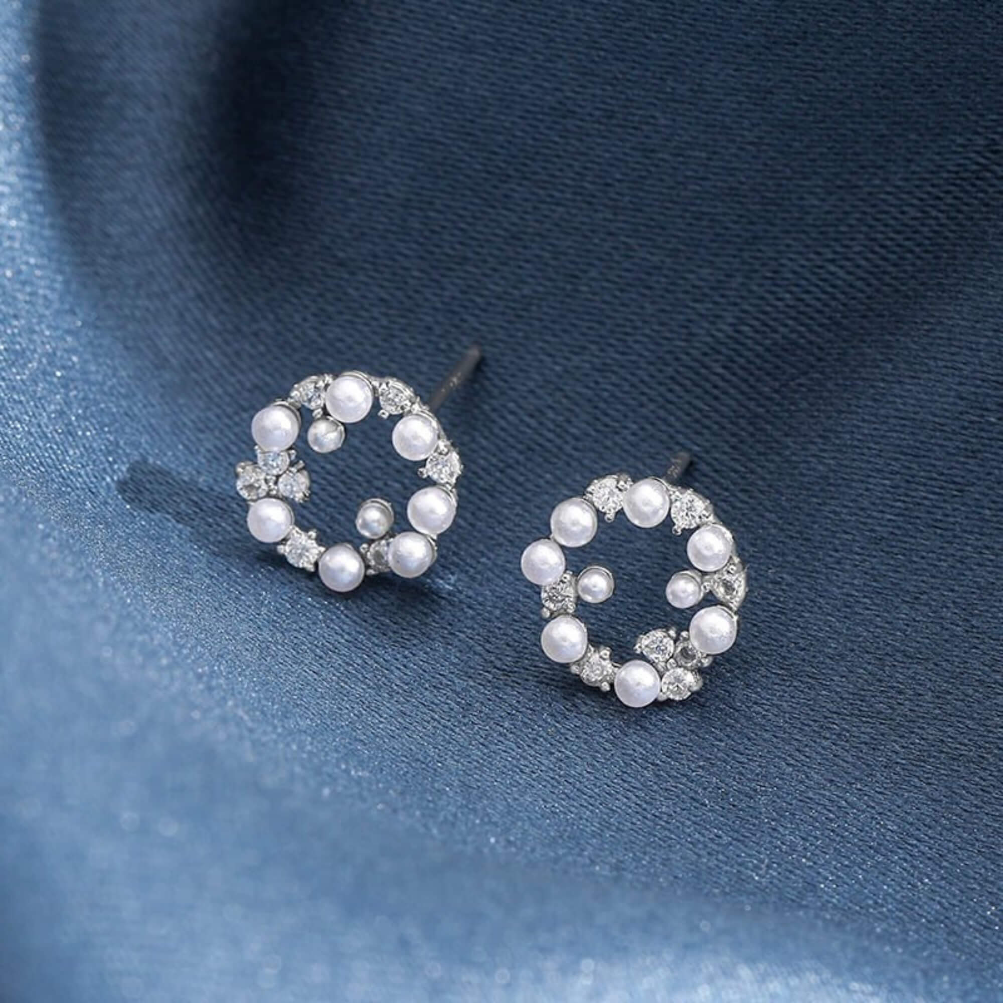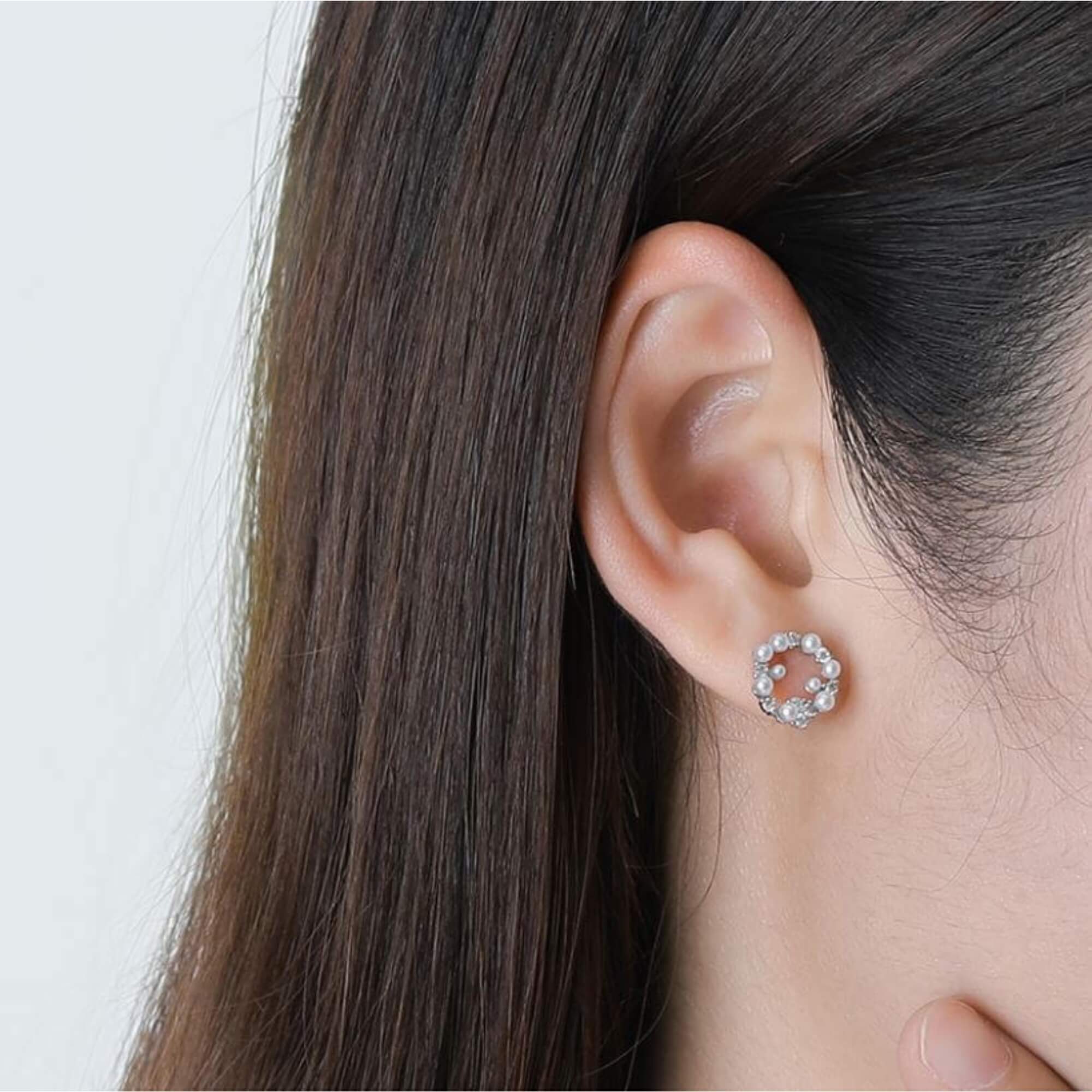 Deze delicate zilveren oorbellen tonen een prachtige reeks van negen glanzende parels, elk omlijst door sprankelende zirkoniastenen. Hun tijdloze elegantie maakt ze tot een veelzijdige keuze, perfect voor het verbeteren van uw look op zowel informele bijeenkomsten als formele evenementen. Het verfijnde ontwerp van deze oorbellen voegt een vleugje verfijning toe aan elke outfit en tilt moeiteloos je stijl naar een hoger niveau.