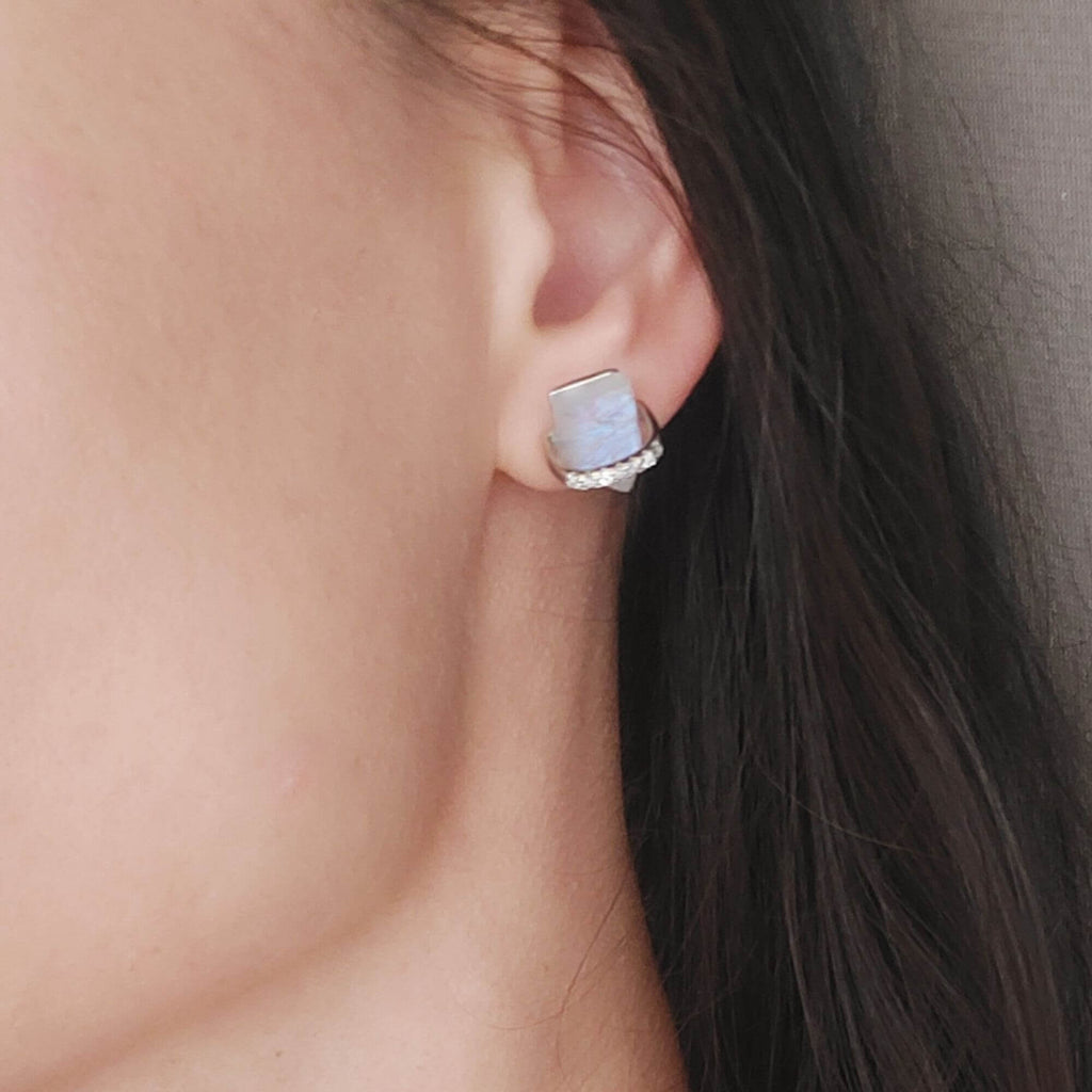 Deze sterlingzilveren oorbellen zijn een verbluffende combinatie van design en uitstraling. In hun hart ligt een natuurlijke maansteen, sierlijk omlijst door een halve hoepel bezaaid met zeven prachtige natuurlijke topaasstenen. Deze oorbellen bieden de perfecte balans tussen schoonheid en schittering en zullen zeker boeien en een betoverende toets toevoegen aan elk ensemble.