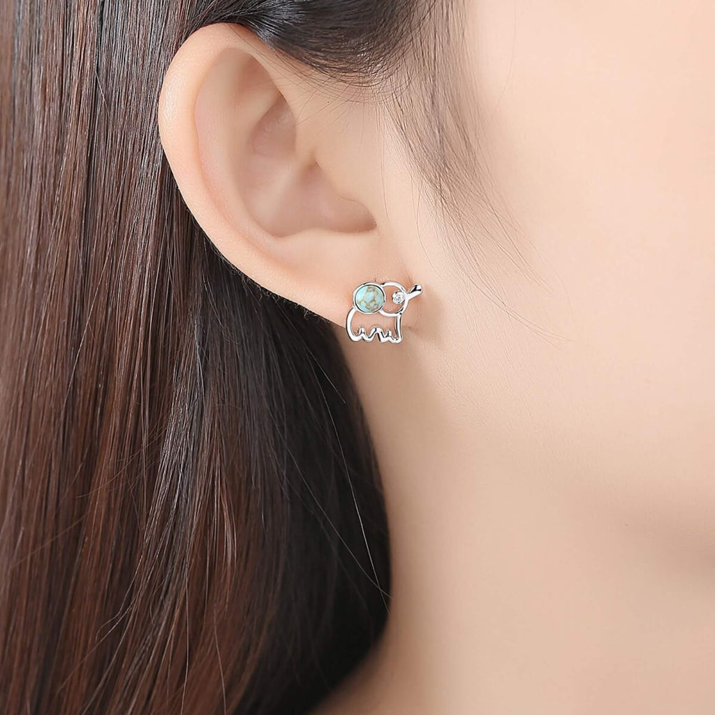 Omarm de symboliek van olifanten met een paar stijlvolle en comfortabele zilveren oorbellen, waarmee je de tijdloze charme van deze prachtige wezens in je outfit kunt verwerken. De zachte tinten van het turkoois zorgen voor levendigheid en helpen je de positieve energie met je mee te dragen die olifanten met zich meedragen, waar je ook heen gaat.